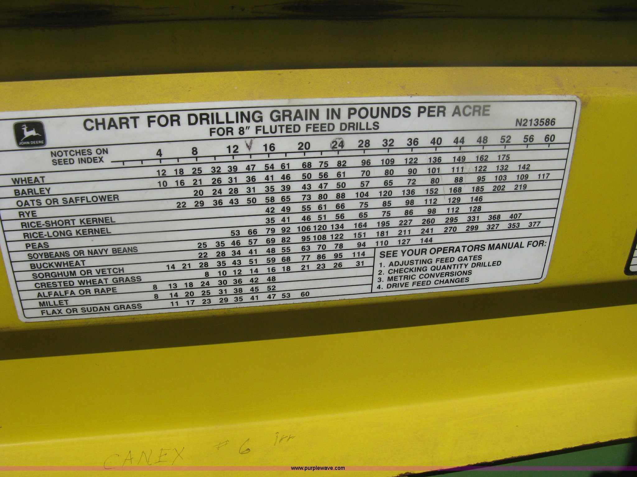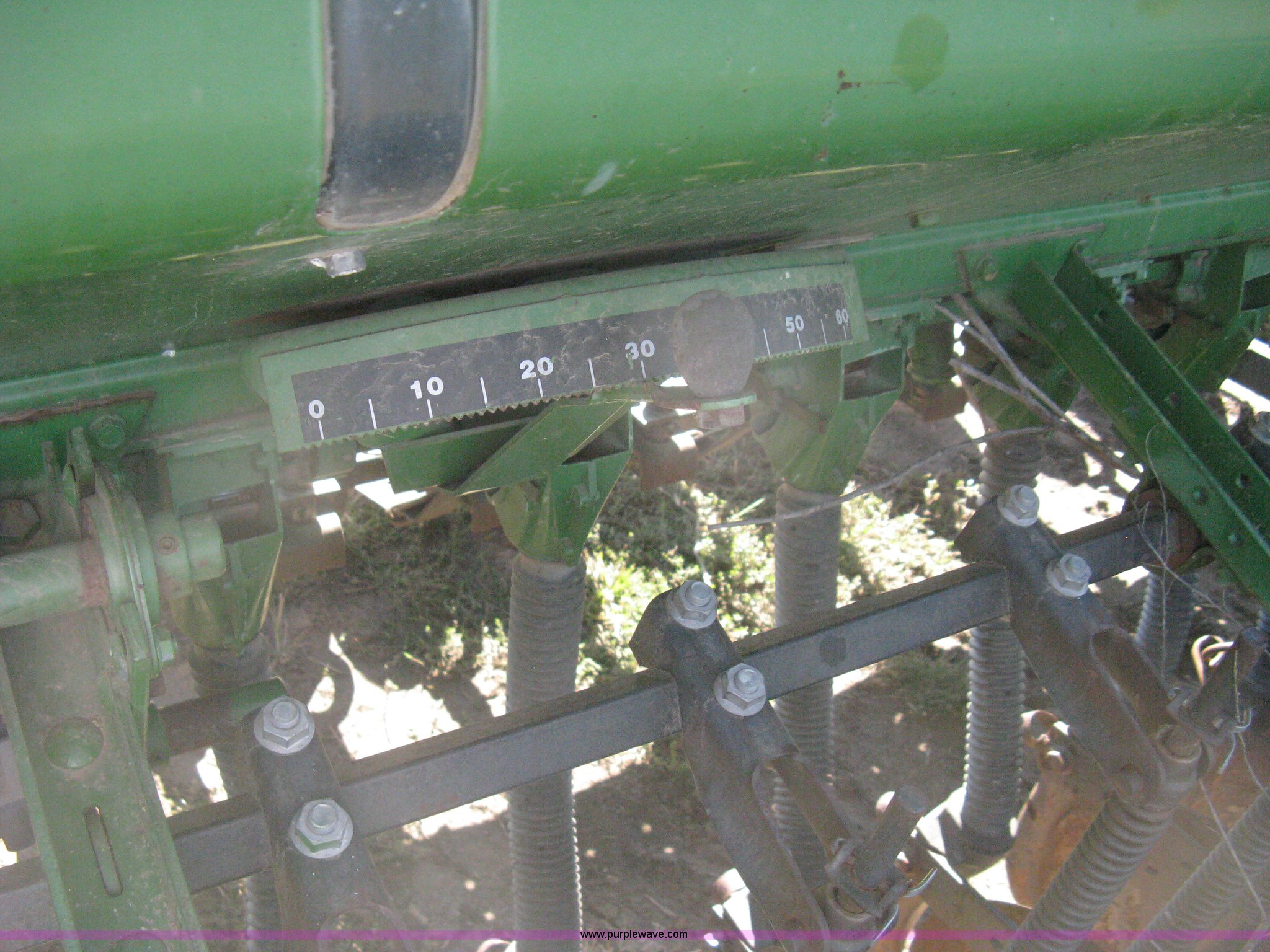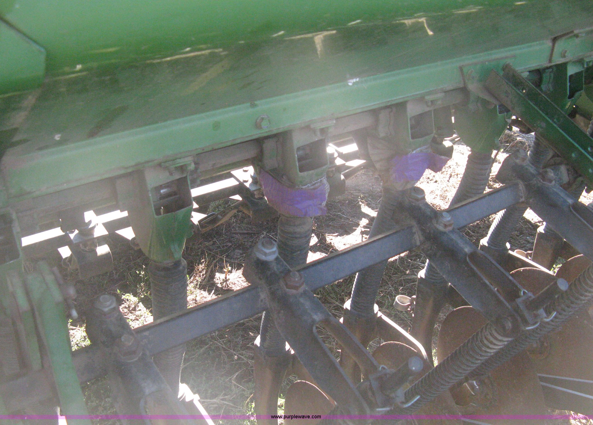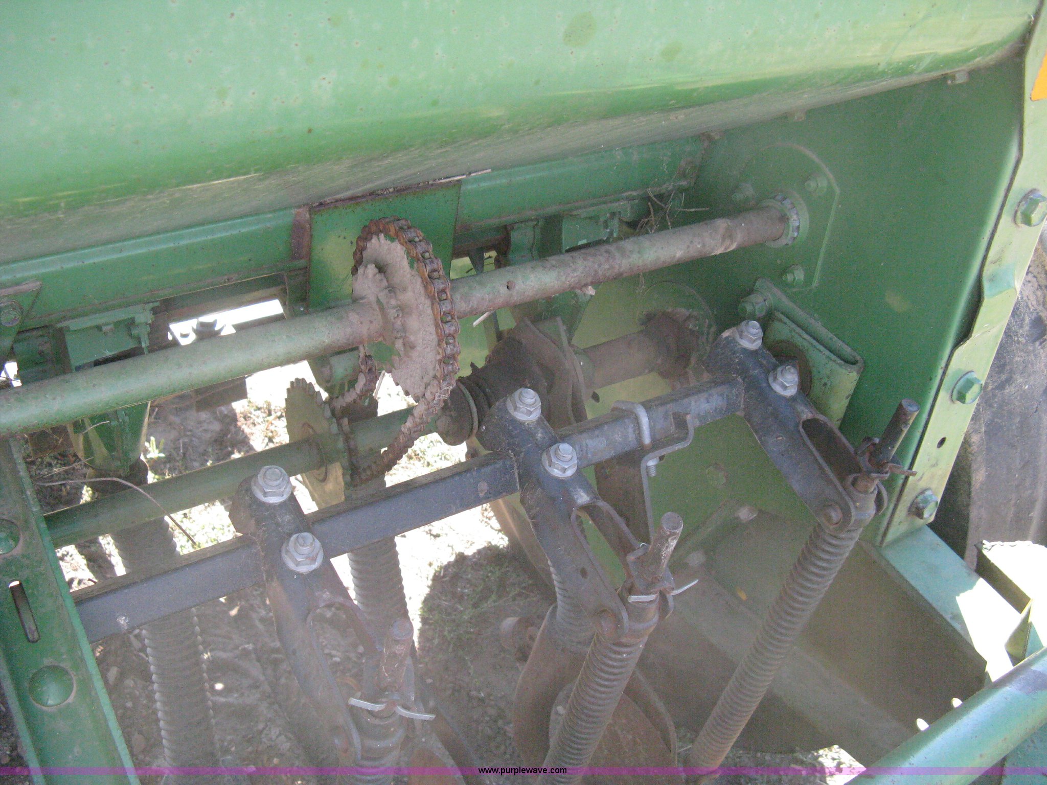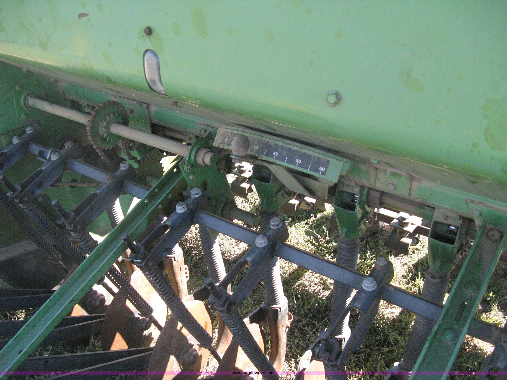 Purple Wave is selling a used Grain Drill or Seeder in Kansas. This item is a (2) John Deere 8350 grain drills with the following: 13' work width, 20 drops, 8" spacing, Seed and fertilizer boxes, Hydraulic lift, Single disk coulters, Six lug wheels, 7.50-20 tires, Baker 2200 tandem drill hitch, Hydraulic fold out, Serial 28849, Serial N08000X058943,