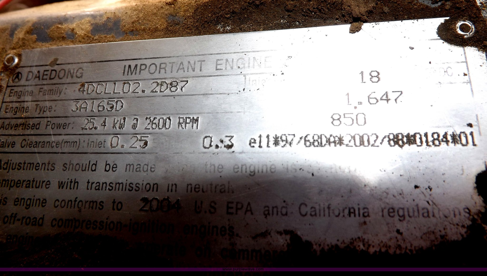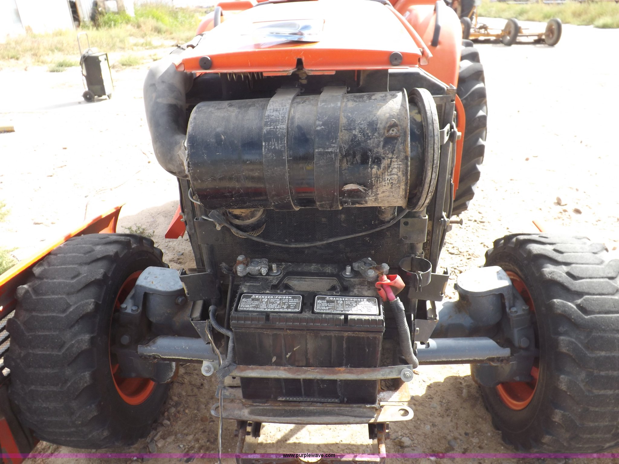 Purple Wave is selling a used Tractor in Kansas. This item is a Kioti DK35 MFWD tractor with the following: 981 hours on meter, Daedong 1.647L three cylinder diesel engine, Manual transmission, 8F-8R gears, Differential lock, Three point, Draw bar, Auxiliary outlet, 540 PTO, 63" wheelbase, 27x10.5-15 front tires, 43x6-20 rear tires, Will not start, Seat torn, Air breather damaged, Lights broken, Serial E61400197