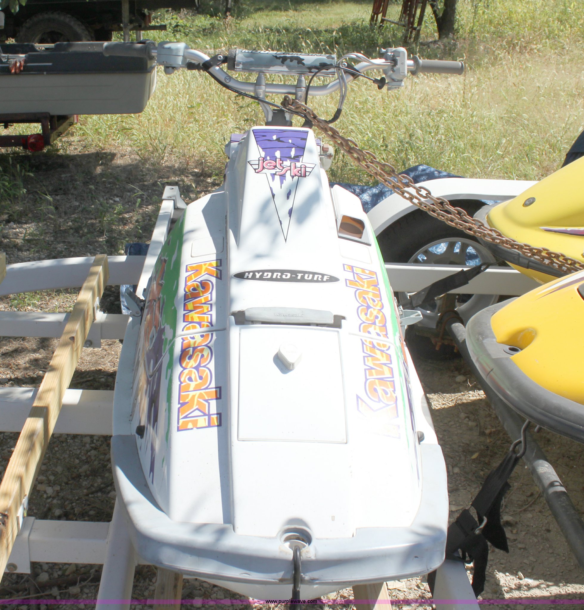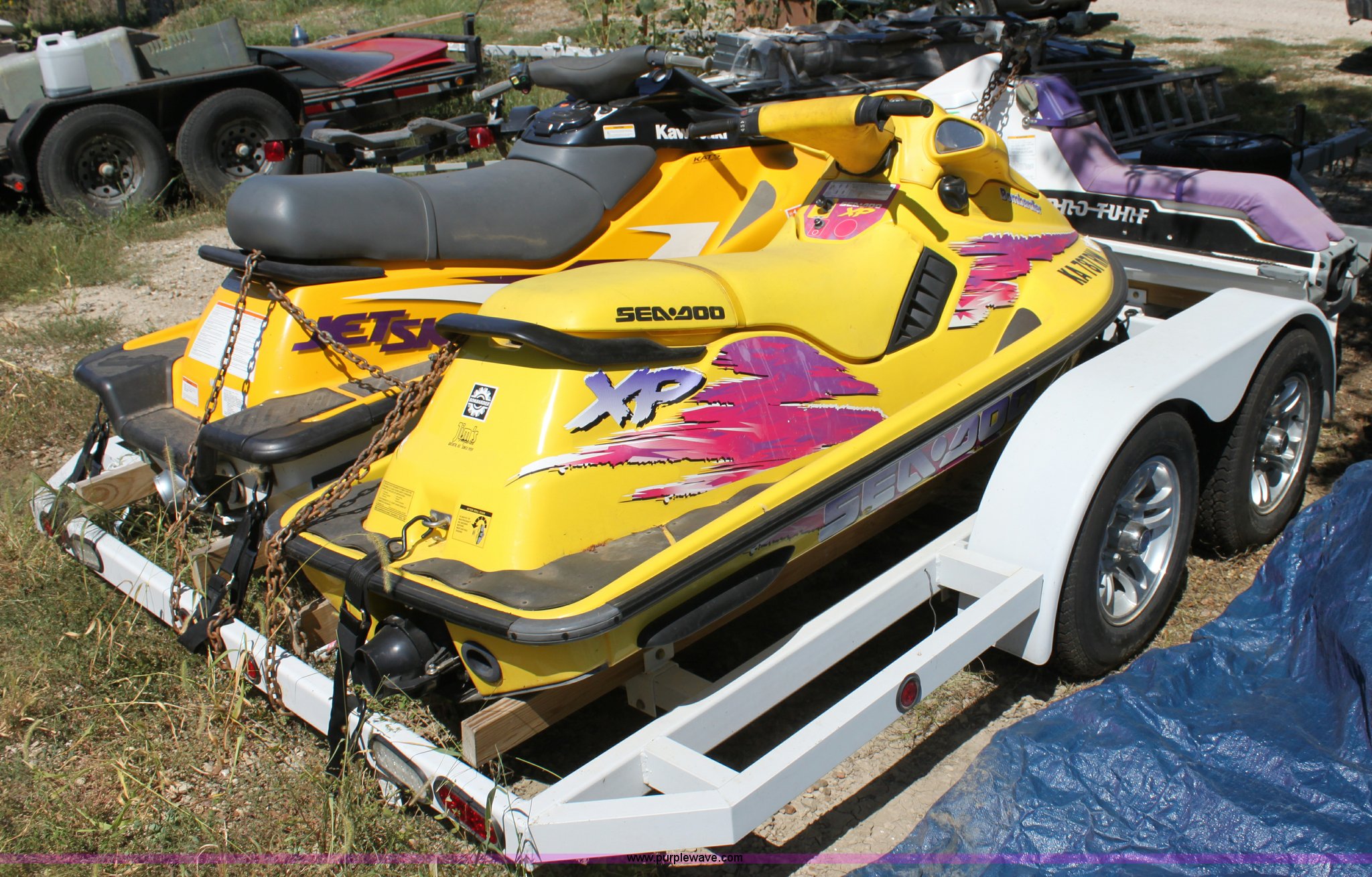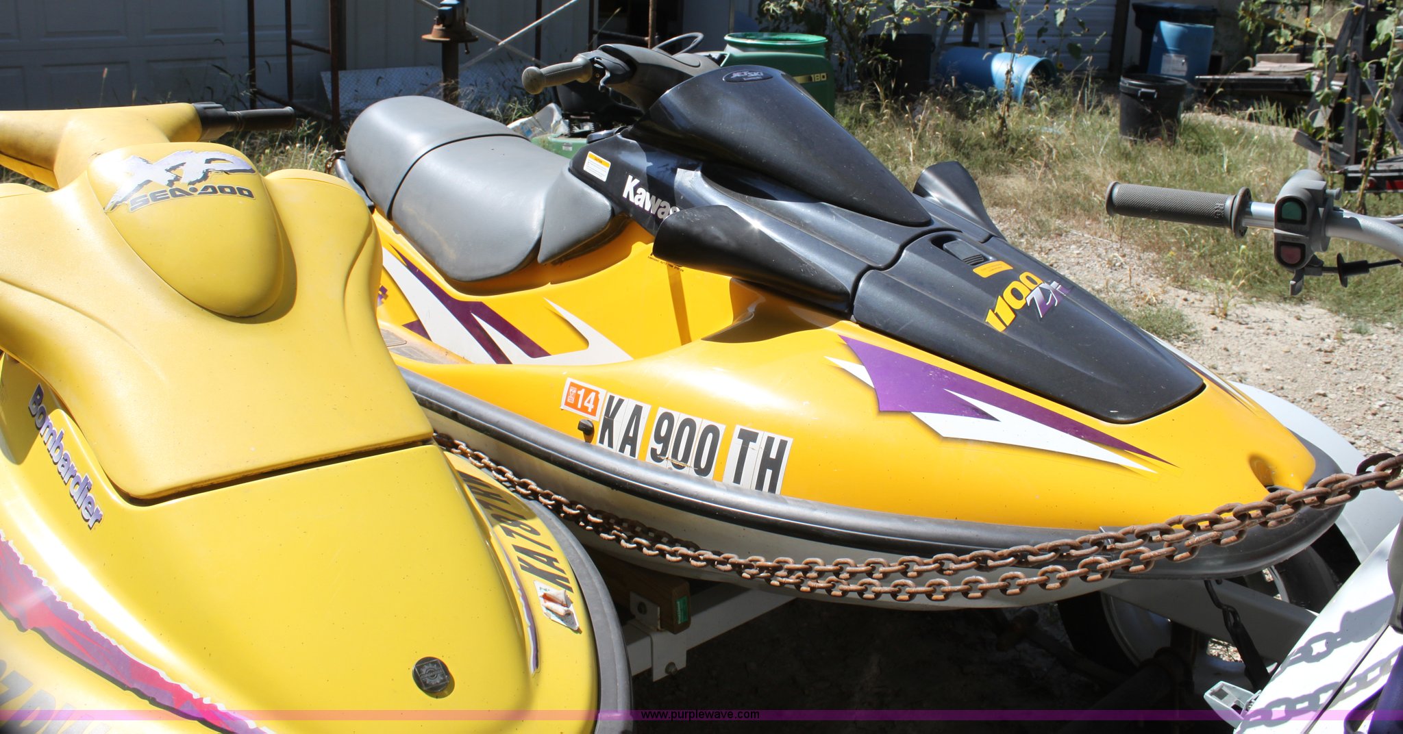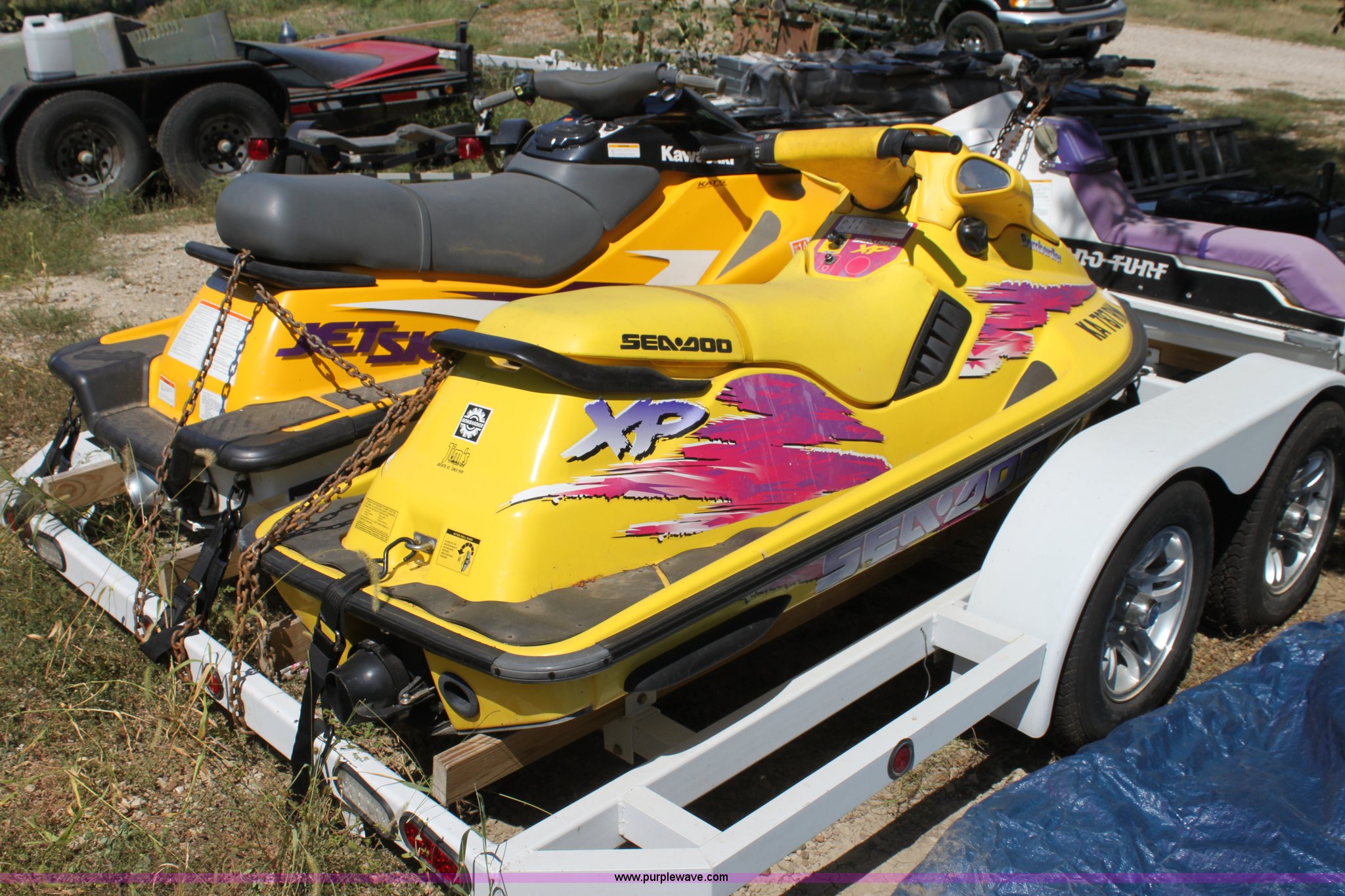 Purple Wave is selling a used Boat in Kansas. This item is a (3) personal watercrafts with the following: Kawasaki X2, 650cc gas engine, Hull ID KAW260011278, Kawasaki 1100 ZXI, 1100cc gas engine, Hull ID KAW9704SJ798, Registration KA900TH, Bombardier XP Seadoo, Hull ID ZZN82791B696, Custom tandem axle trailer, (4) watercraft capacity, 205/75R15 tires