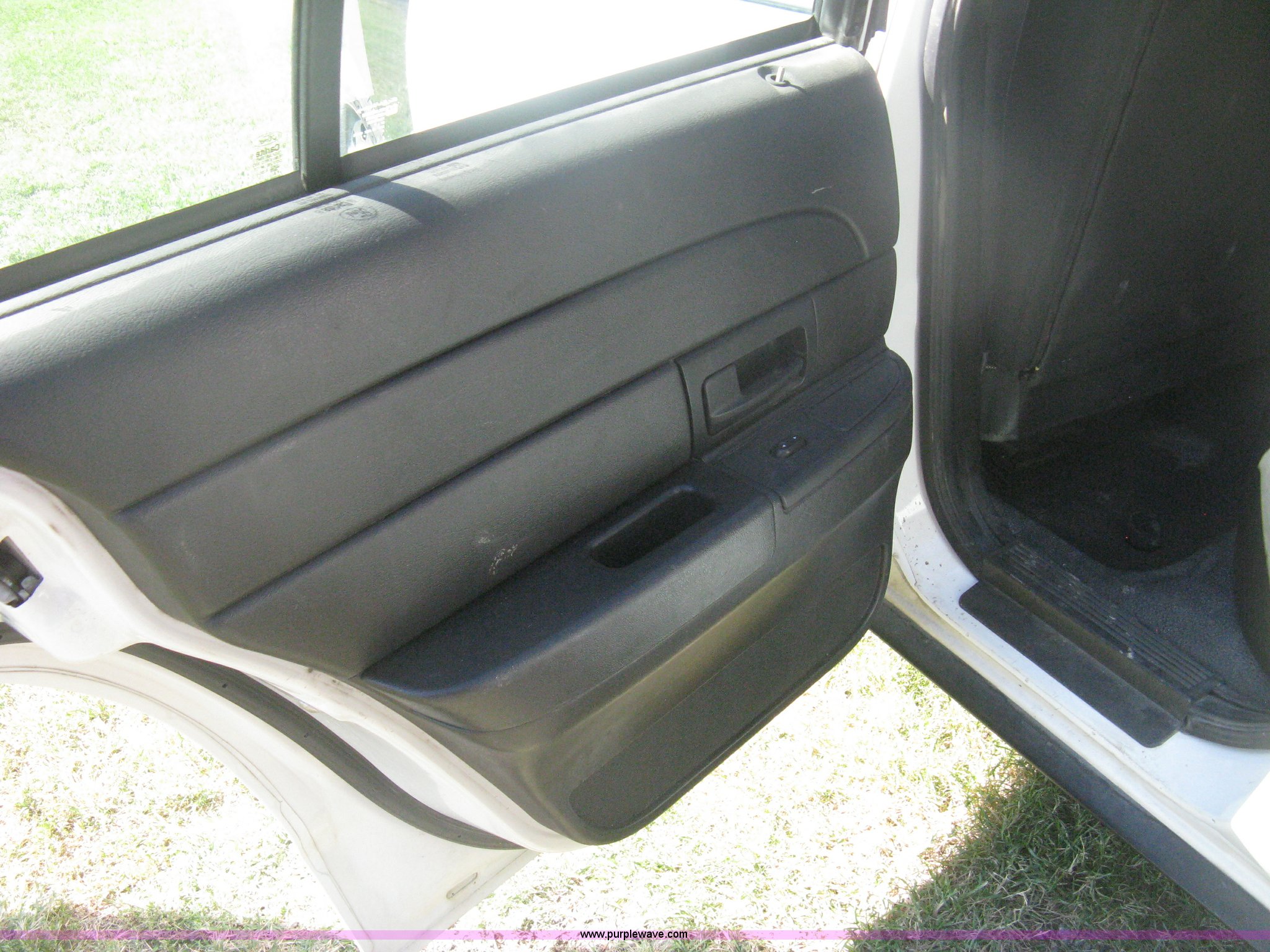 Purple Wave is selling a used Passenger Vehicle in Kansas. This item is a 2008 Ford Crown Victoria Police Interceptor with the following: Approx. 115,000 miles, Odometer will not illuminate, 4.6L V8 SOHC 16V FFV gas engine, Automatic transmission, AC and heat, Tilt, Cruise, AM/FM/CD, Power windows, locks, mirrors, and seats, Cloth front interior, Vinyl rear interior, Spotlight, P235/55R17 tires, Scratches and dents, Paint peeling, Hail damage, Exterior port holes
