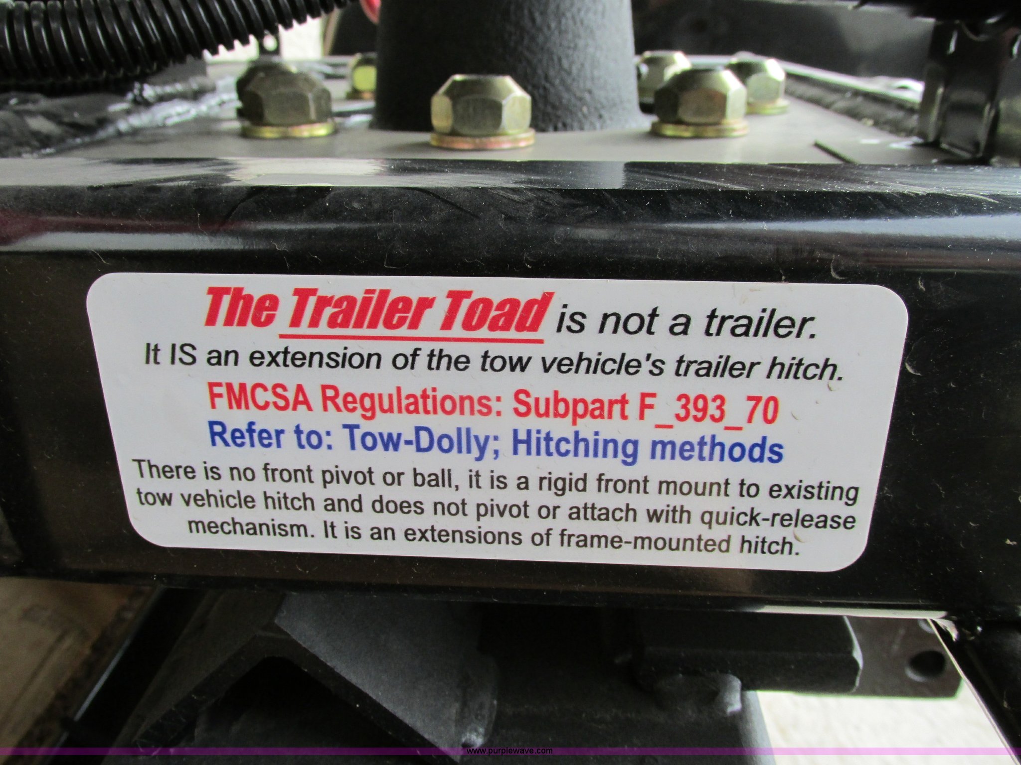 Purple Wave is selling a used Trailer Other in Missouri. This item is a Trailer Toad trailer hitch with the following: Pivots, Trailer wiring, Full fenders, Tortion suspension, 225/75R15 tires, Designed for use on back of motorhomes or campers, Used to carry heavy tongue weight trailers, Unused
