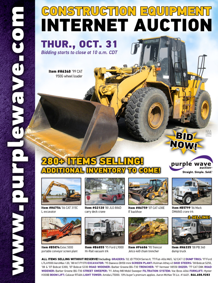 Terms, conditions, explanations and information in addition to those listed on this page are found in the Terms and Conditions section of this site and on the individual listing pages for all assets included in this auction. All terms, conditions, explanations and information are intended to be supplemental and complimentary to each other. They are incorporated by reference into this page, and collectively they govern this auction. In the event of a conflict or inconsistency among terms, conditions, explanations or information in the Terms and Conditions section, the individual listing pages for assets and/or this page, the individual listing pages shall control this page and the Terms and Conditions section, and this page shall control the Terms and Conditions section. By registering to bid live and/or on the Internet, you agree to abide by all terms and conditions and you acknowledge receipt of all explanations and information made available by Purple Wave.