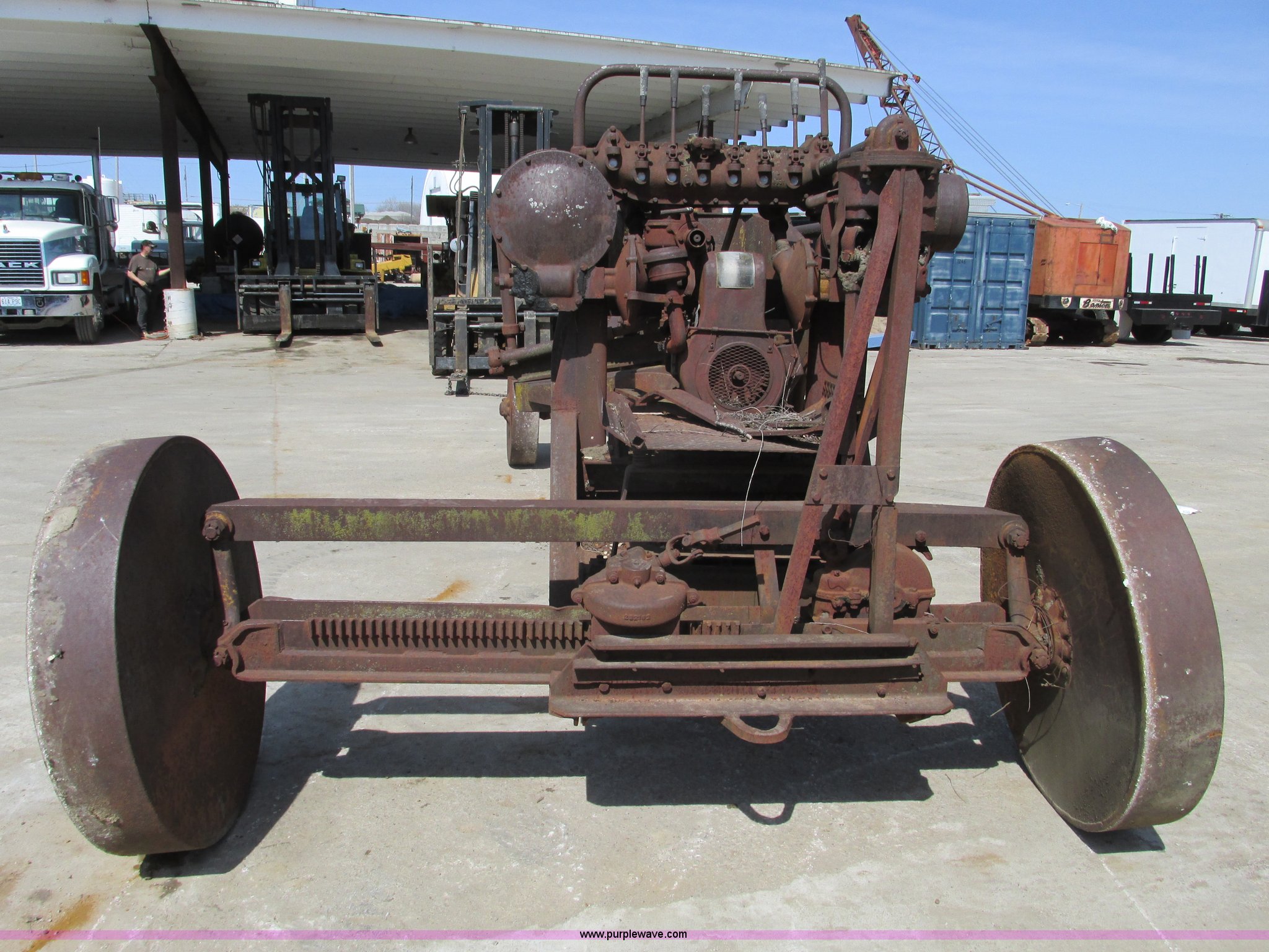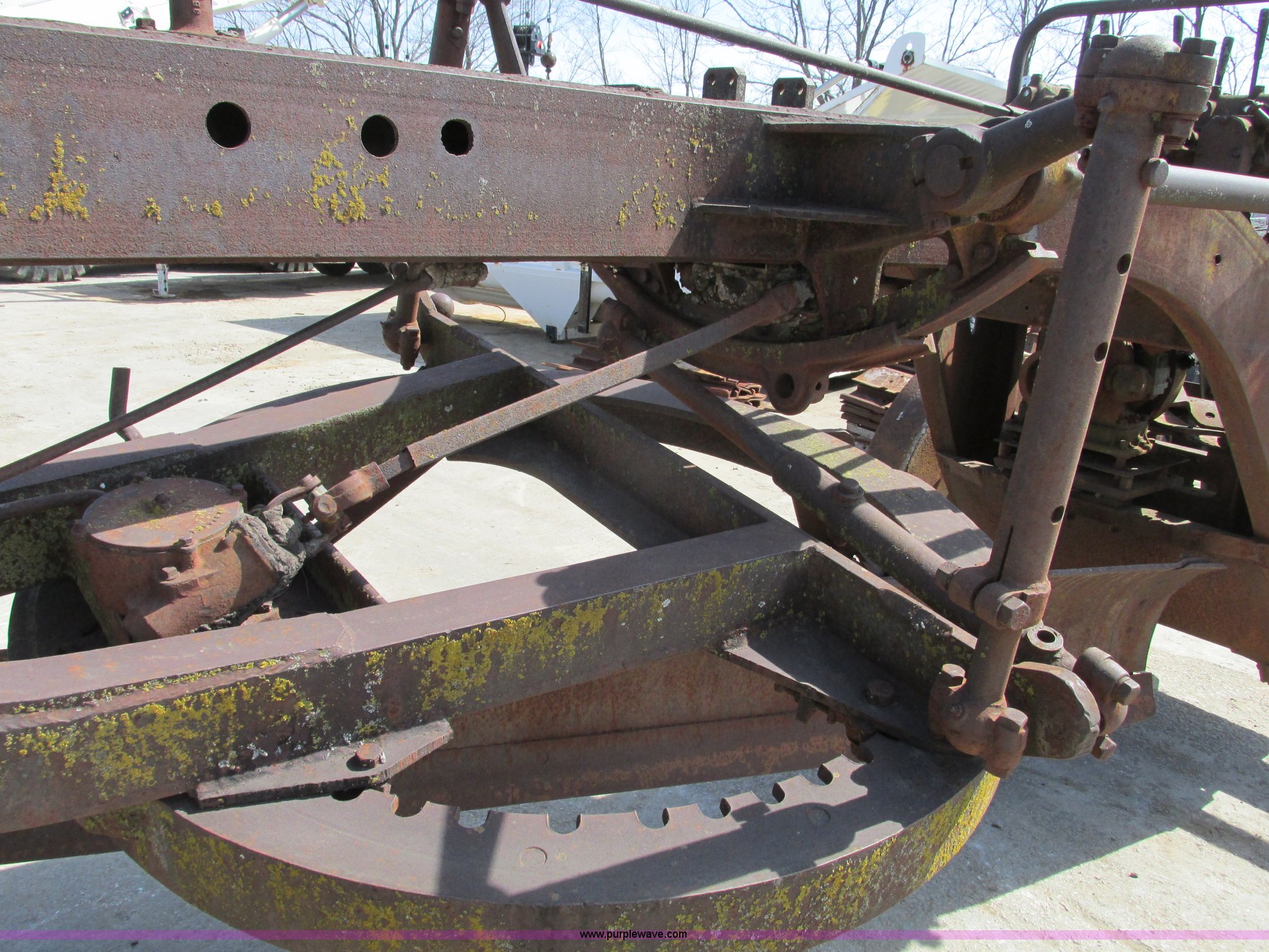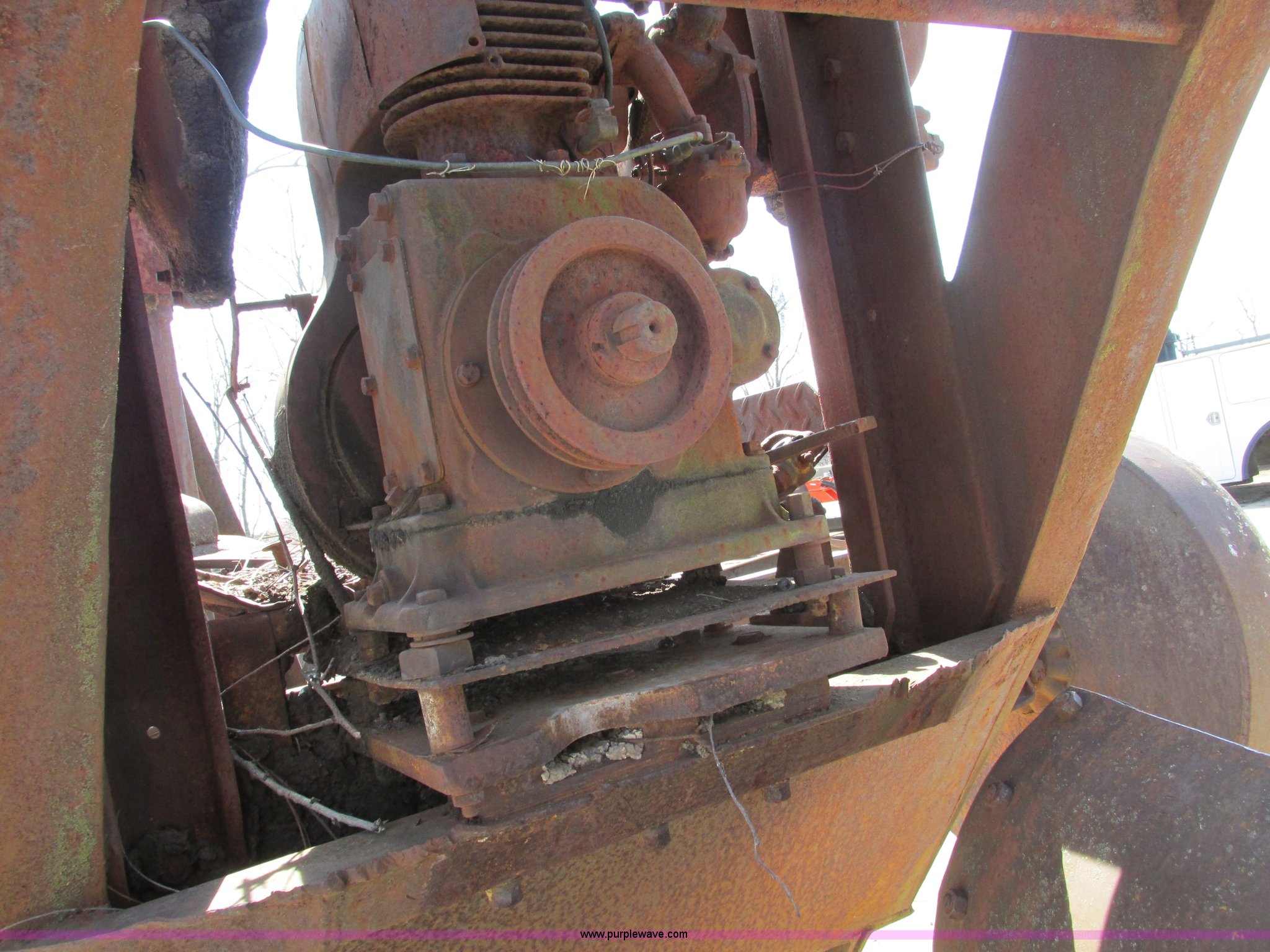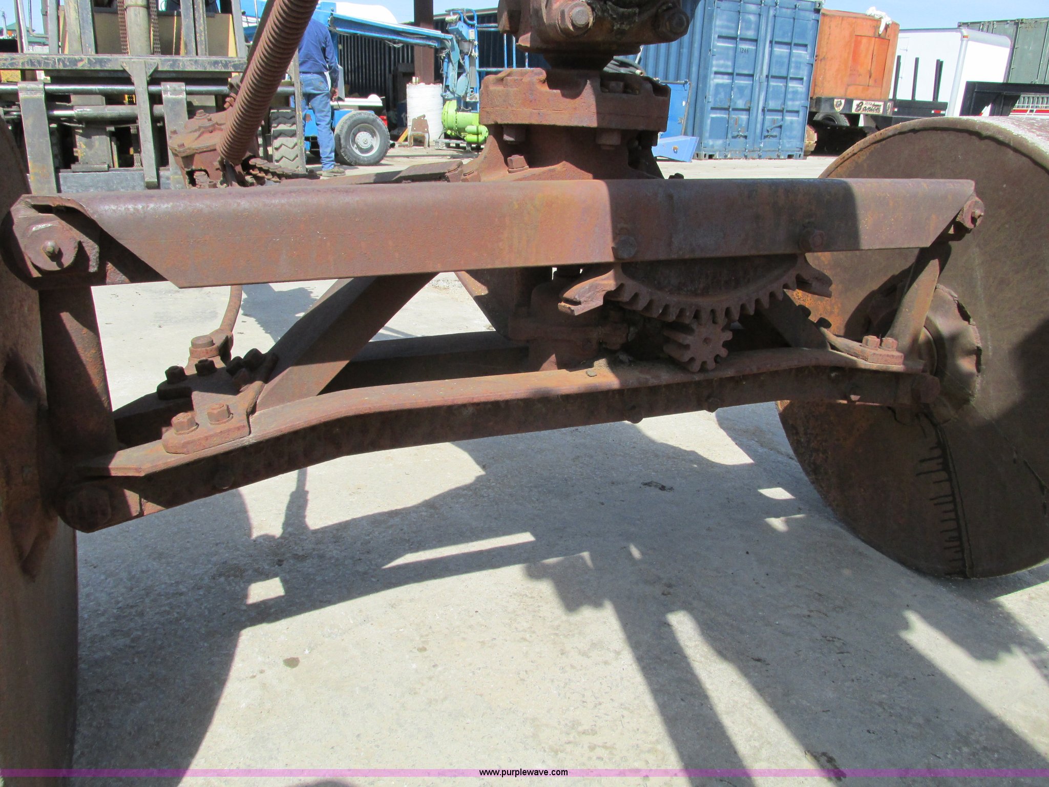 Caterpillar 66 pull behind grader. Wards single cylinder gas engine Model WMOAMH22372, Serial 746664, Article# 872943, Control box, Steel wheels, 12'W blade Smooth bolt-on cutting edge, Serial &H203. Damon Pursell Construction. 300 N Church Rd. Liberty, MO 64068