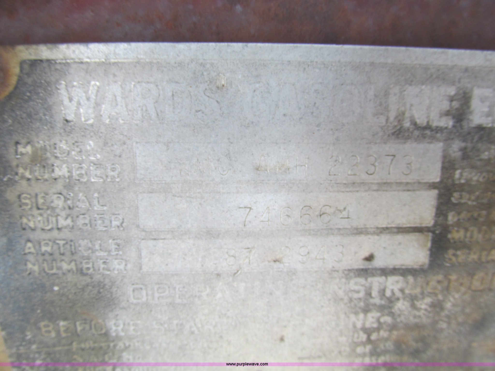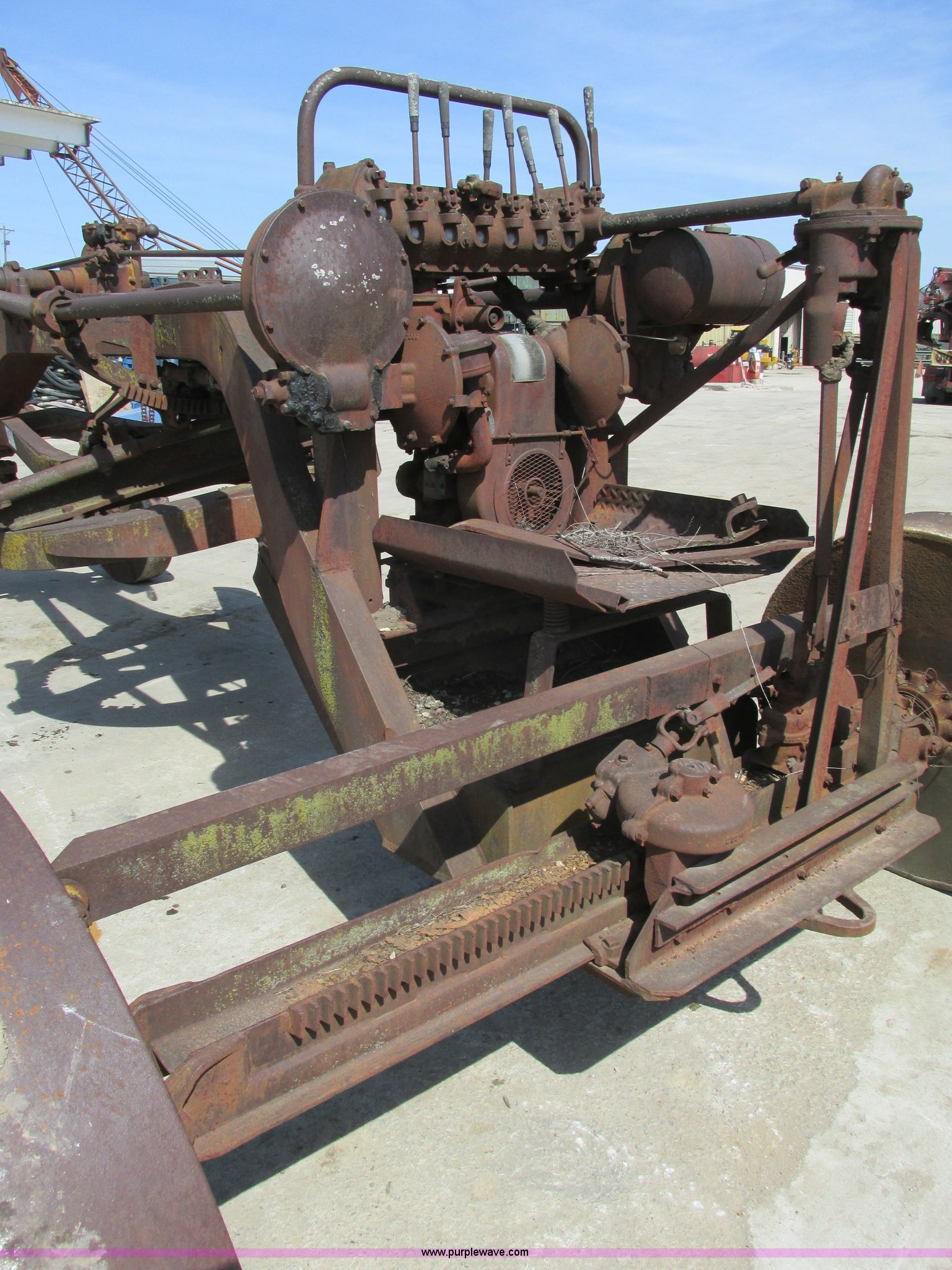 Purple Wave is selling a used Pull Type Scraper in Missouri. This item is a Caterpillar 66 pull behind grader with the following: Wards single cylinder gas engine, Model WMOAMH22372, Serial 746664, Article# 872943, Control box, Steel wheels, 12'W blade, Smooth bolt-on cutting edge, Serial &H203