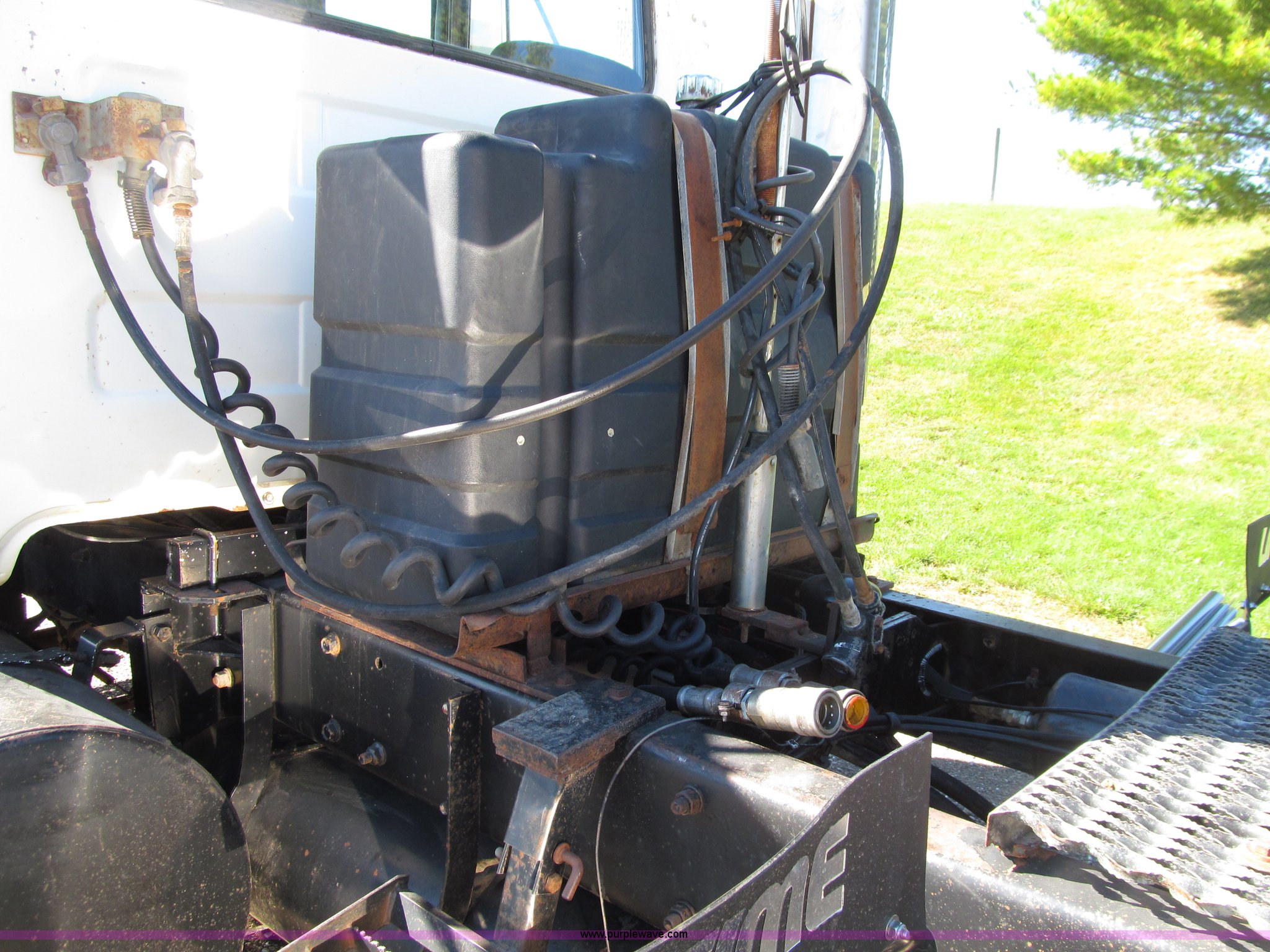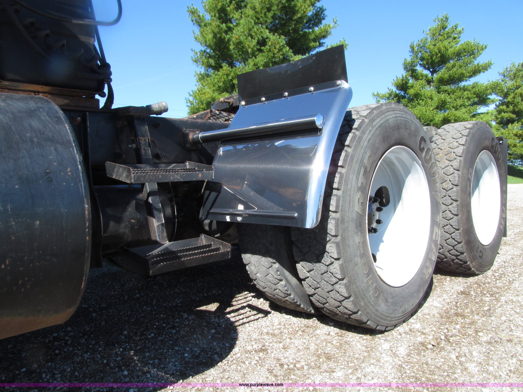 Purple Wave is selling a used Truck Tractor in Iowa. This item is a 1988 Mack R690ST semi truck with the following: 42,756 miles on odometer, 7,119 hours on console hour meter, 5,572 hours on dash hour meter, Mack EM6 11.0L L6 diesel engine, 275 HP, Seven speed manual transmission, Twin screw, AC and heat, AM/FM/cassette, Telescoping steering wheel, Air suspension seat, Air ride cab, Exterior visor, Chrome bumper, Block heater, Mud flaps, Stainless steel quarter fenders, Dual 75 gallon fuel tanks, Single rear exhaust stack, Aluminum deck plate, PTO, Wet kit, Camelback suspension, Spring suspension, Air brakes, 169" wheelbase, 285/75R24.5 tires