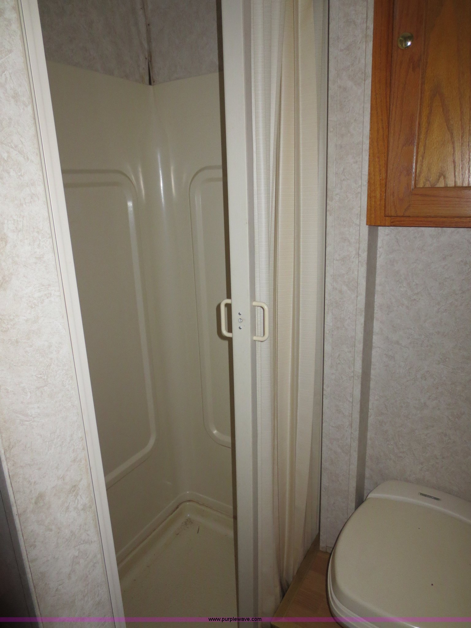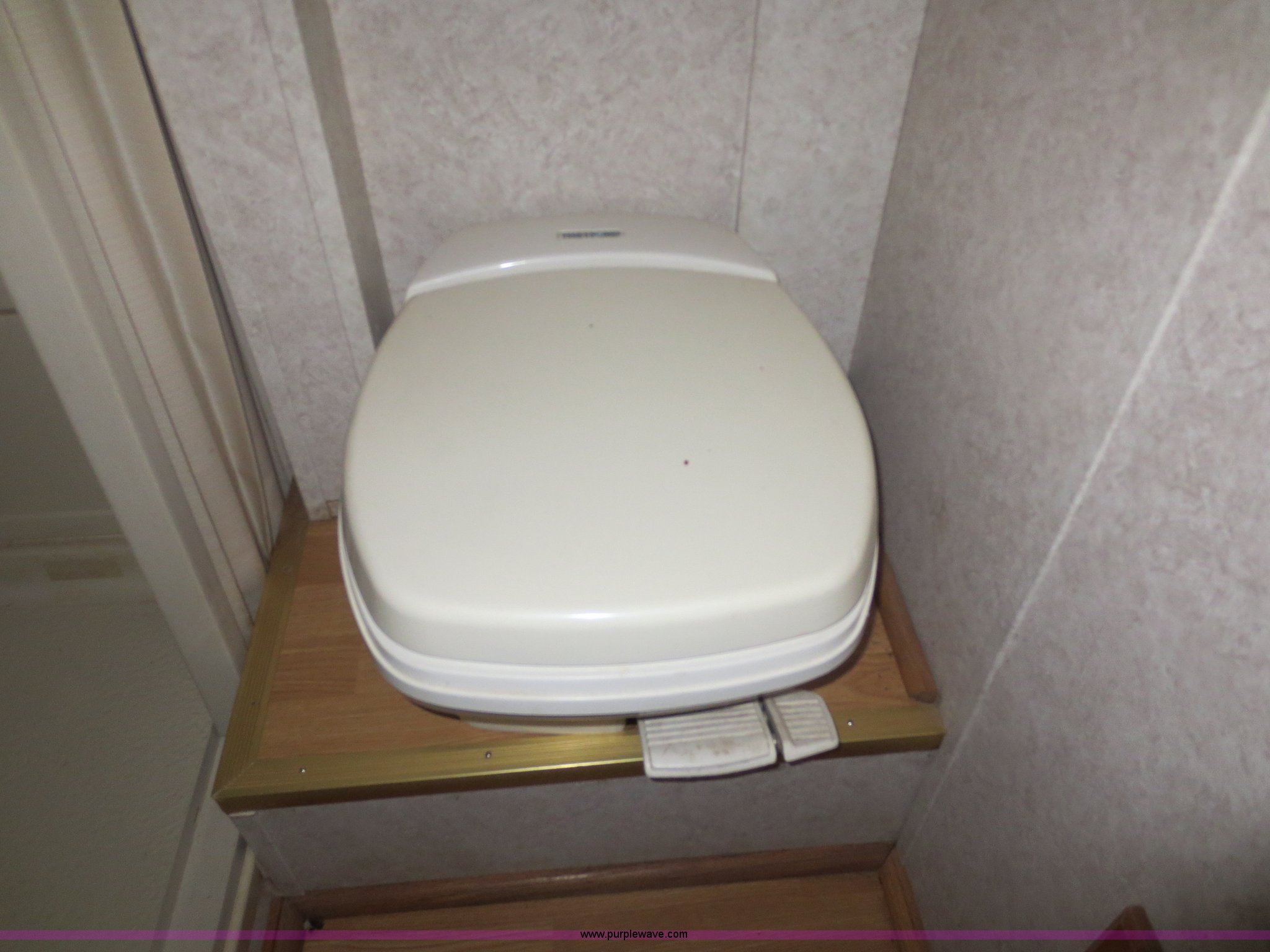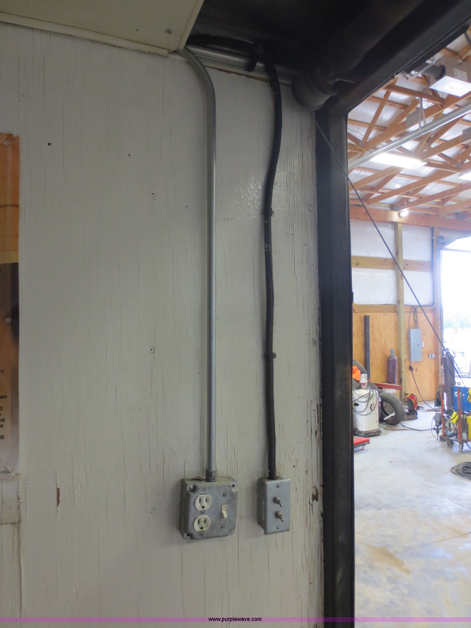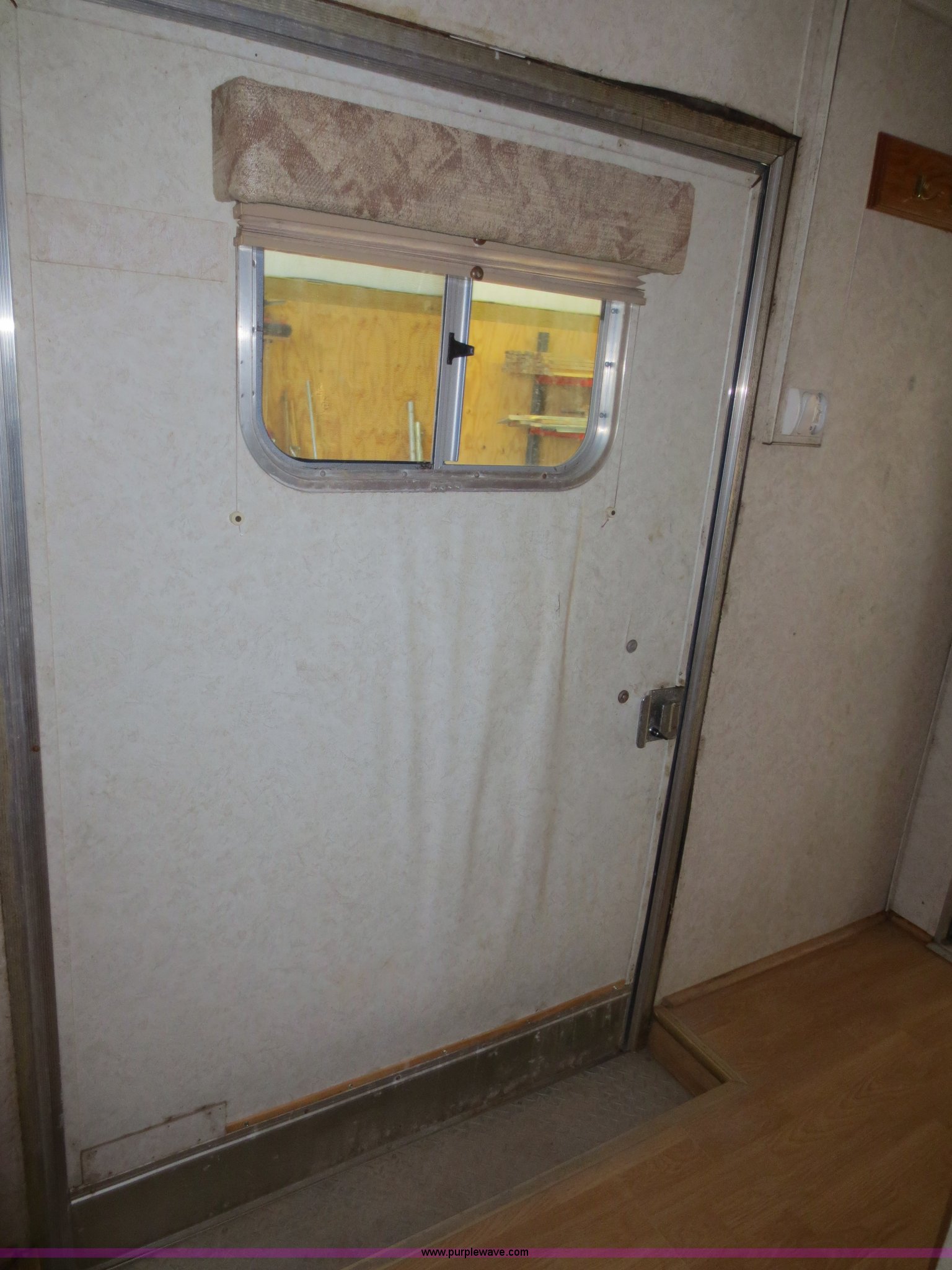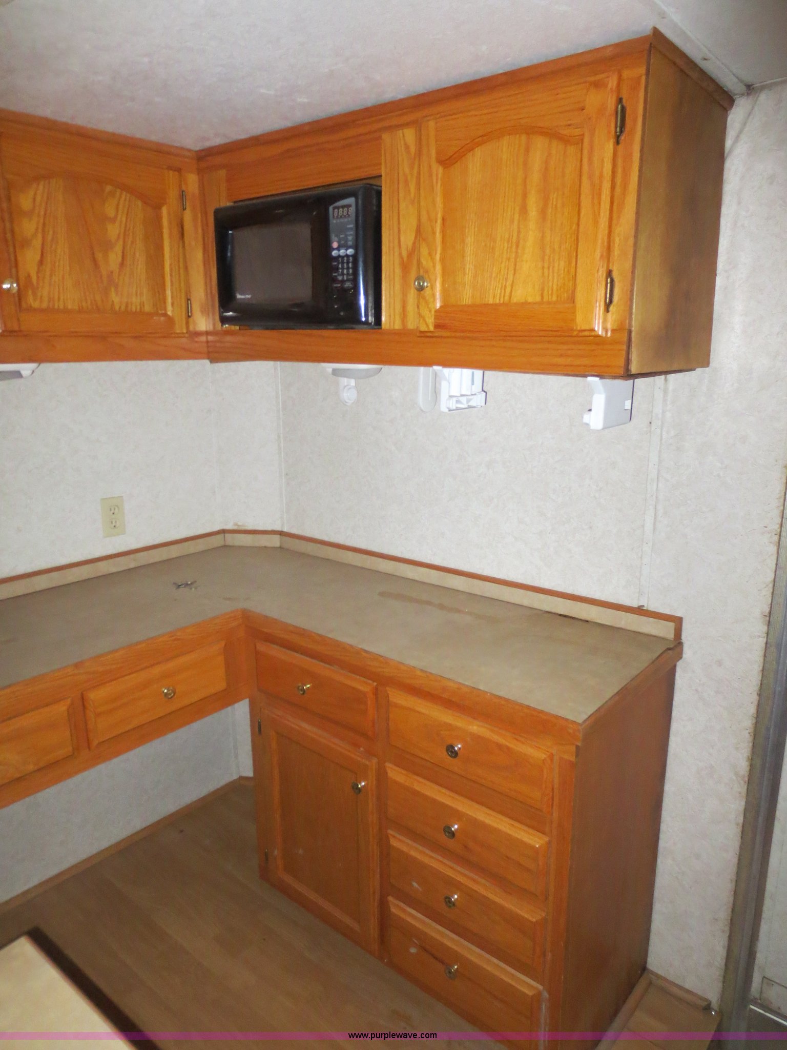 Purple Wave is selling a used Enclosed Cargo Trailer in Oklahoma. This item is a 2002 H&H 28' cargo trailer with living quarters with the following: 98.5"W, 15'9" rear cargo area with fold down rear door/ramp, 120V and 12V lights, Propane heaters, Dry-cell 12V battery, E-track cargo tie downs, D-rings on walls, Full aluminum walk-on roof, Front living quarters with roof mounted AC and heat, Full bath, Stand-up shower, Separate stool and 18 gallon water tank, Vanity mirror and sink, 48 gallon fresh water tank,, Couch folds out into bed, Microwave, Cabinetry/storage, Pintle hitch, Electric brakes, Safety break-away system, Rear LED brake lights and turn signals, Tongue jack and two rear stabilizer jacks, (2) propane bottles mounted on tongue, 30 amp RV electric system with built-in battery charger for 12V electrical system, (2) 5,200 lb axles, 235/85R16 tires, Load Range E