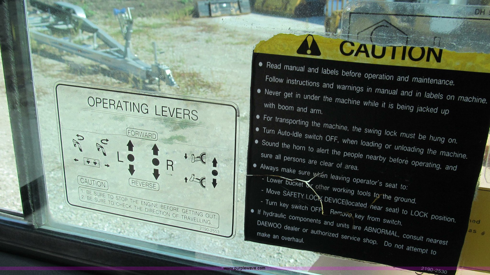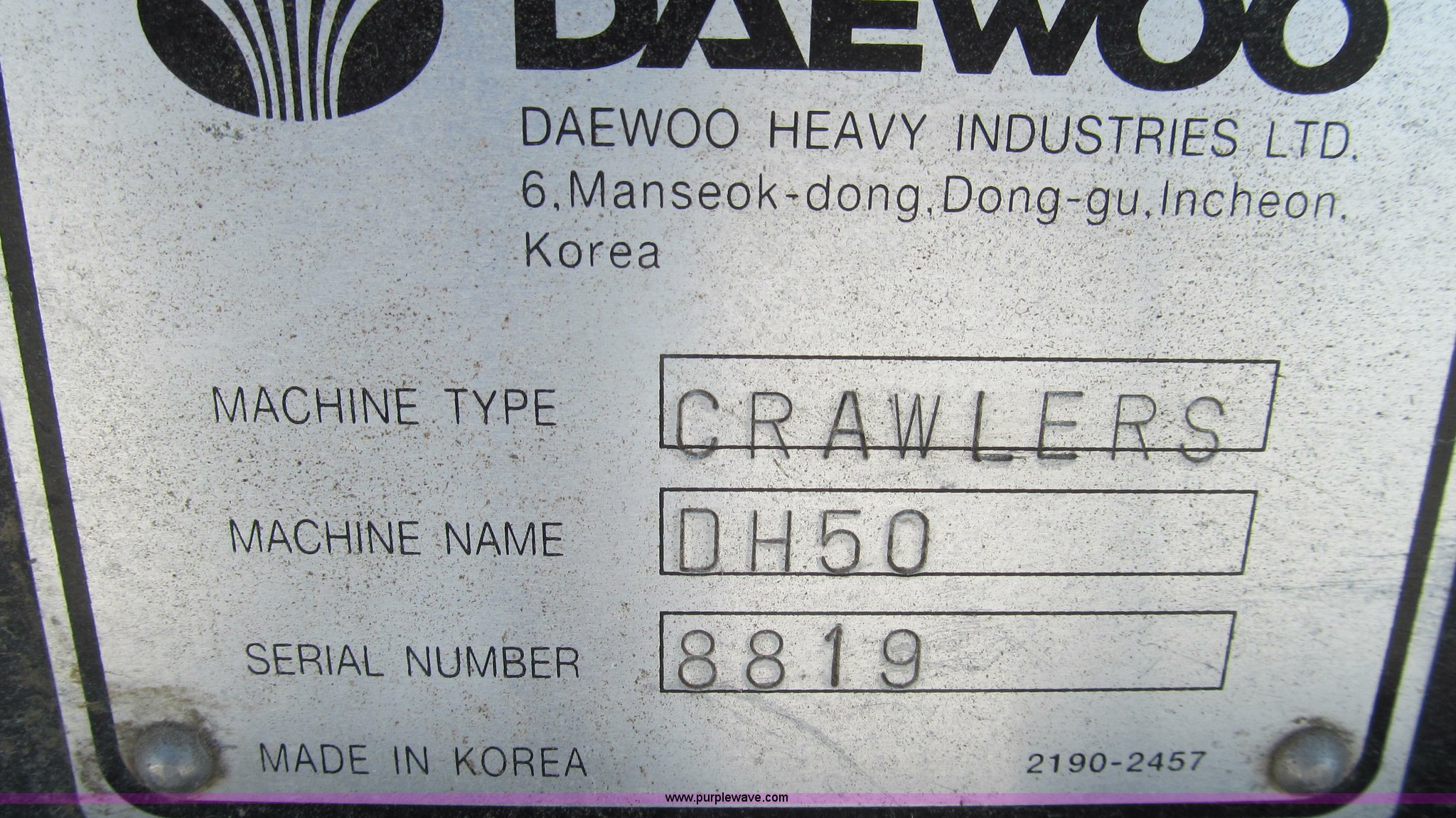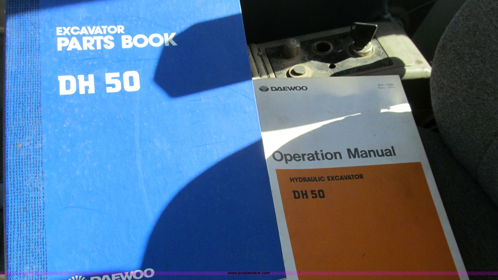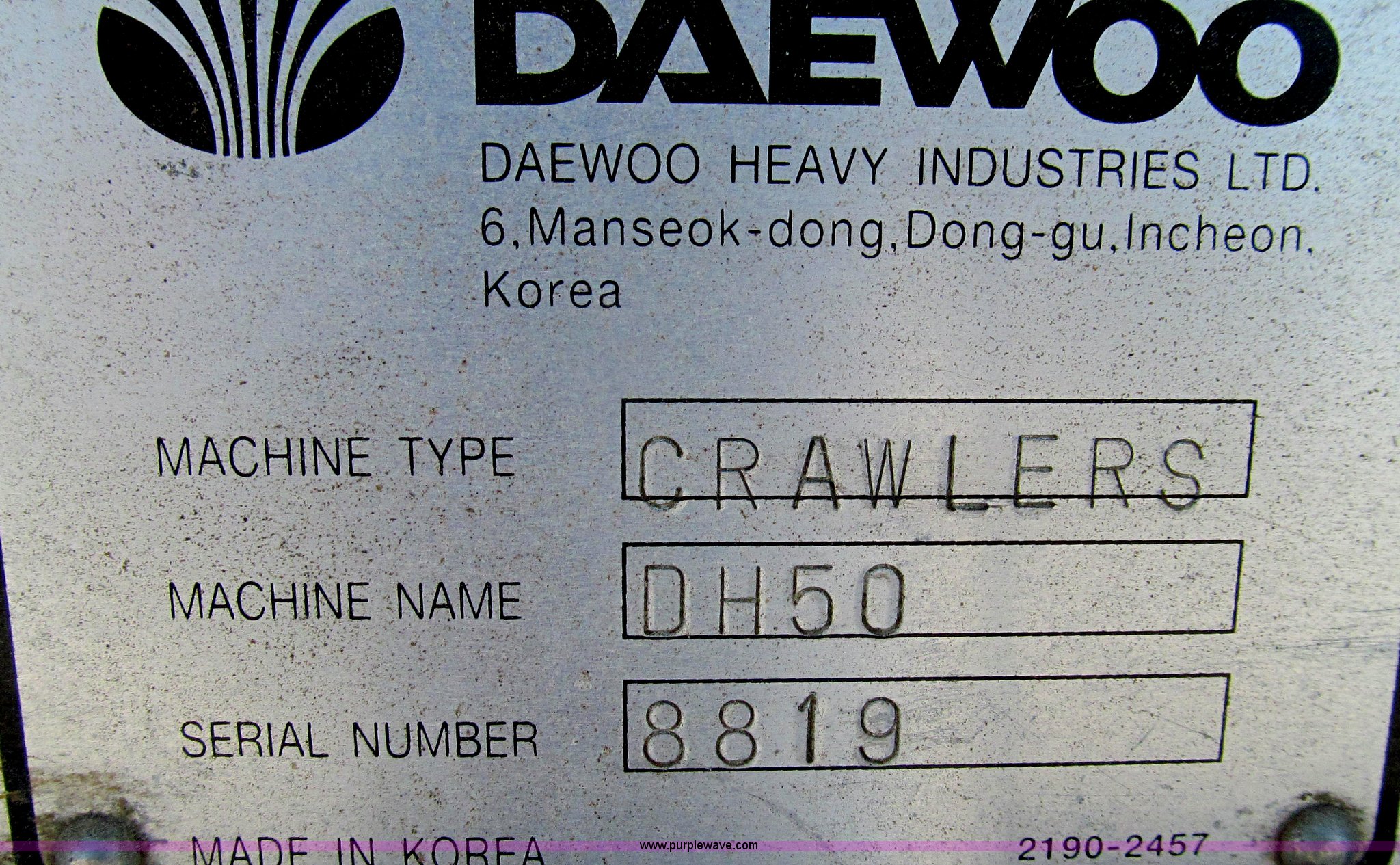 Purple Wave is selling a used Mini Excavator in Missouri. This item is a 1995 Daewoo DH50 mini excavator with the following: 2,301 hours on meter, Daewoo four cylinder diesel engine, 46 HP, Enclosed cab, AC and heat, Unknown operating condition of AC, AM/FM/cassette, Work lights, Auxiliary hydraulics, 74" front blade, 12" three tooth bucket, 26" five tooth bucket, (5) bottom rollers, 16"W tracks, 11,500 lbs. base operating weight, Recently replaced boom swivel pins and bushings, Operator's manual and parts books, Serial 8819