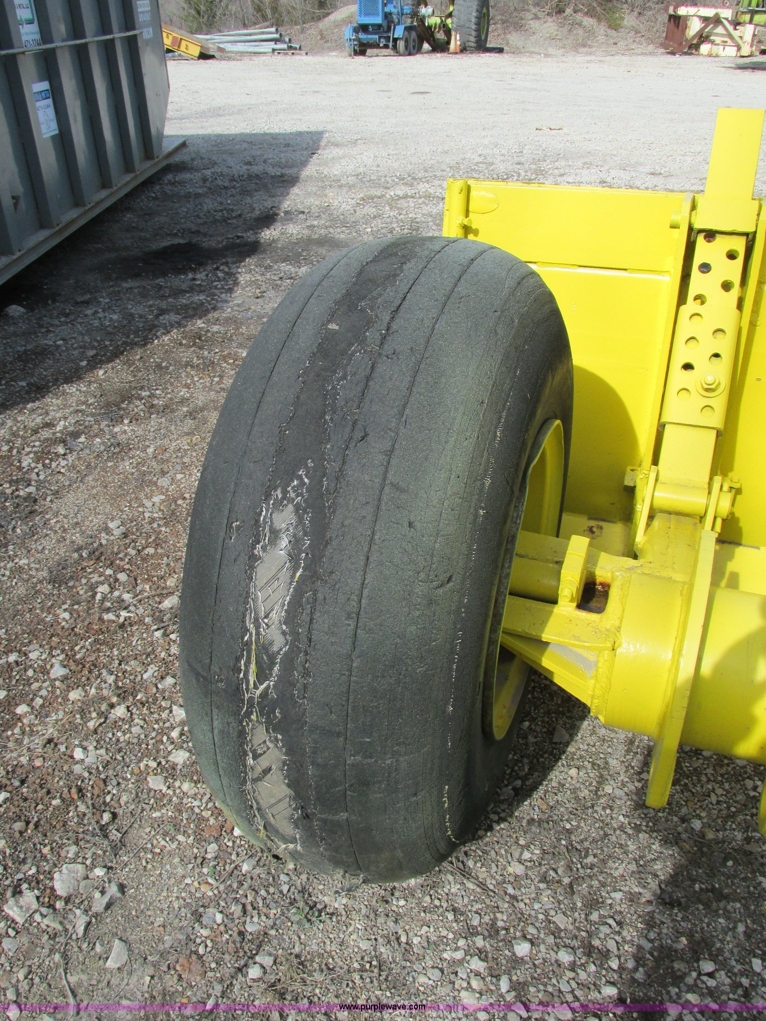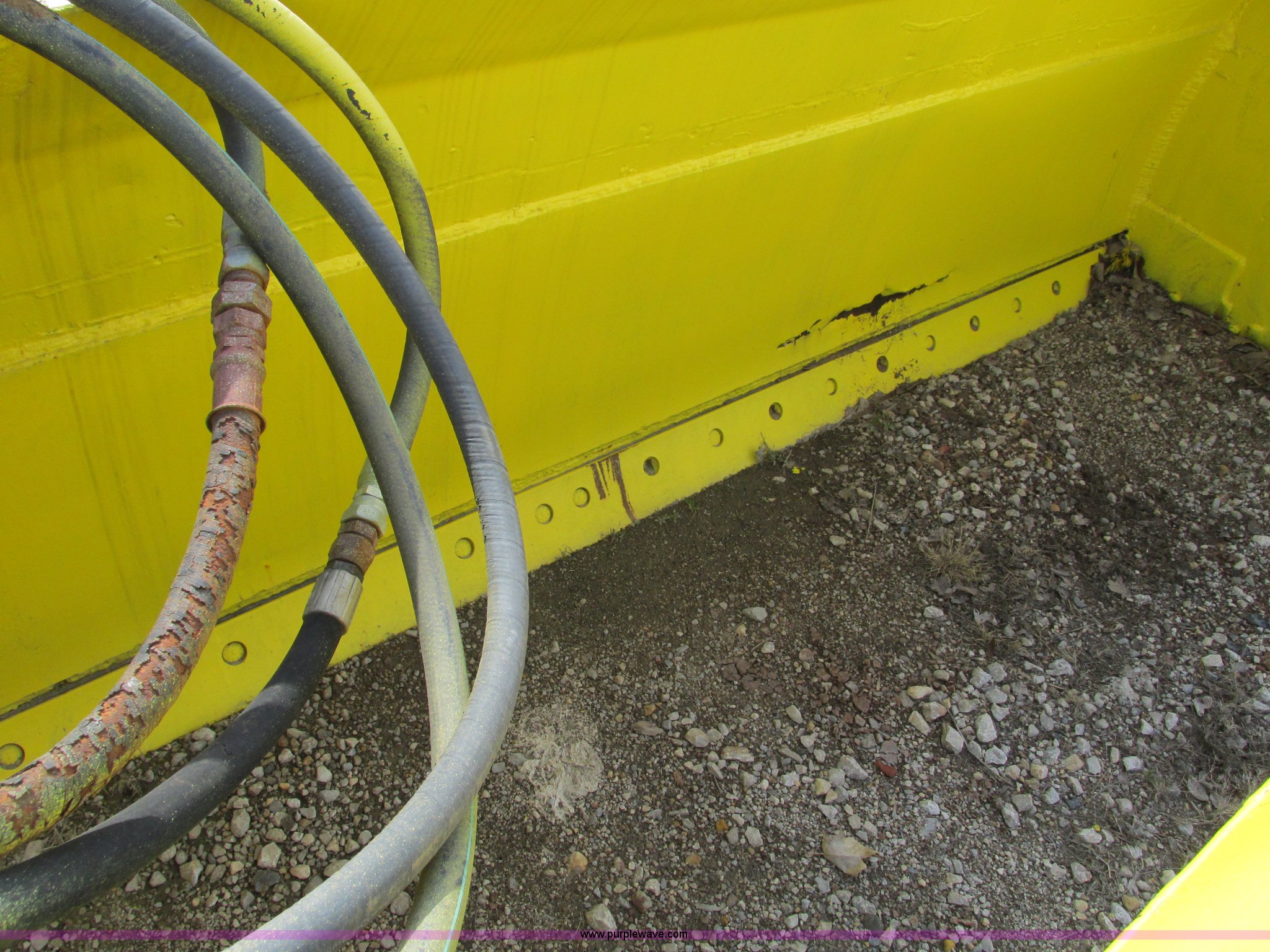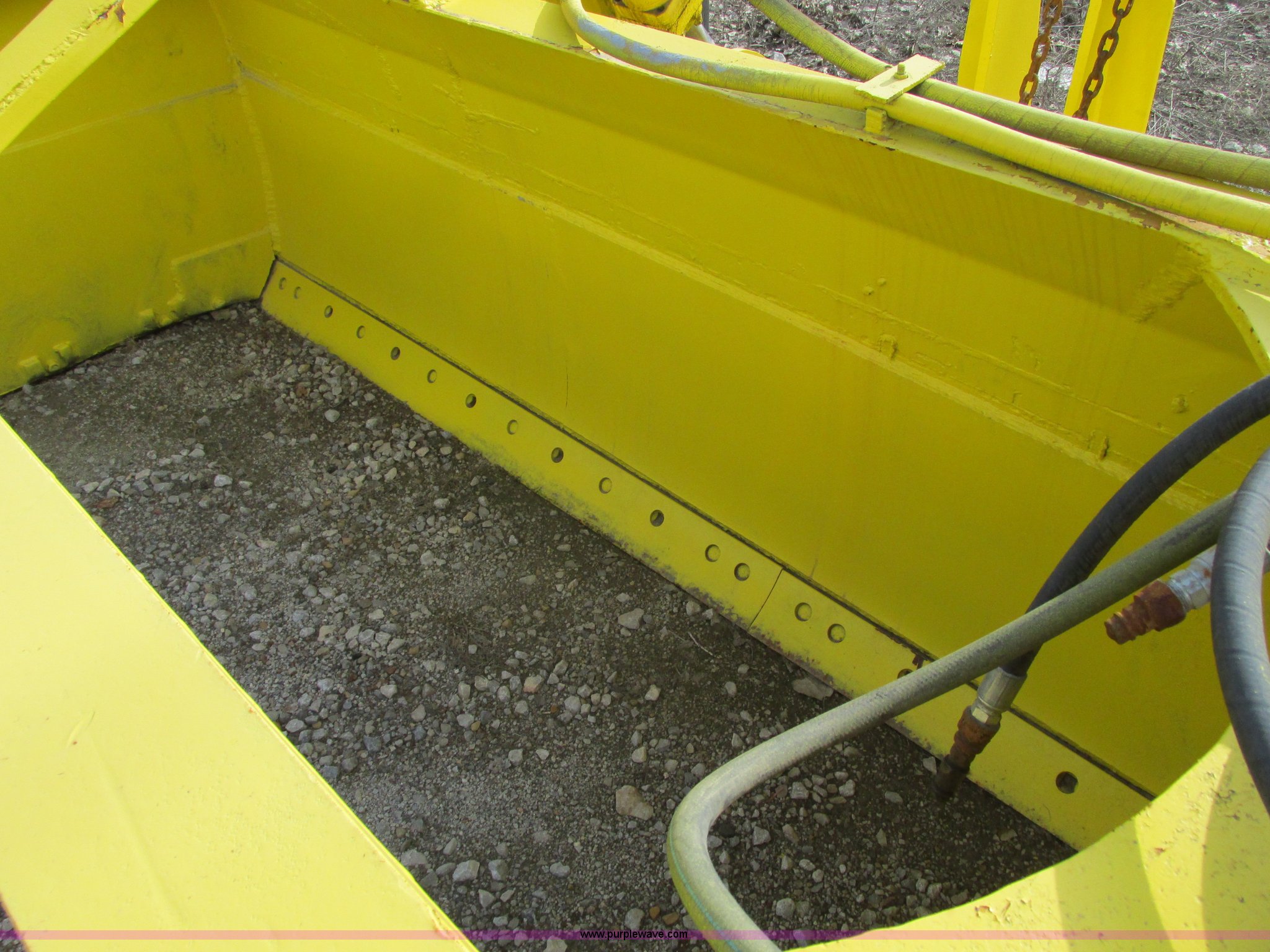 Purple Wave is selling a used Pull Type Scraper in Missouri. This item is a 18' pull behind box blade with the following: Dual cylinders, Smooth bolt-on cutting edge, Hitch removed for transport, Hitch is cracked