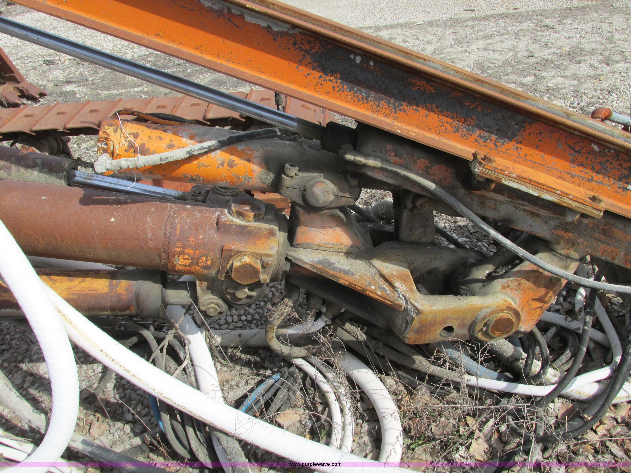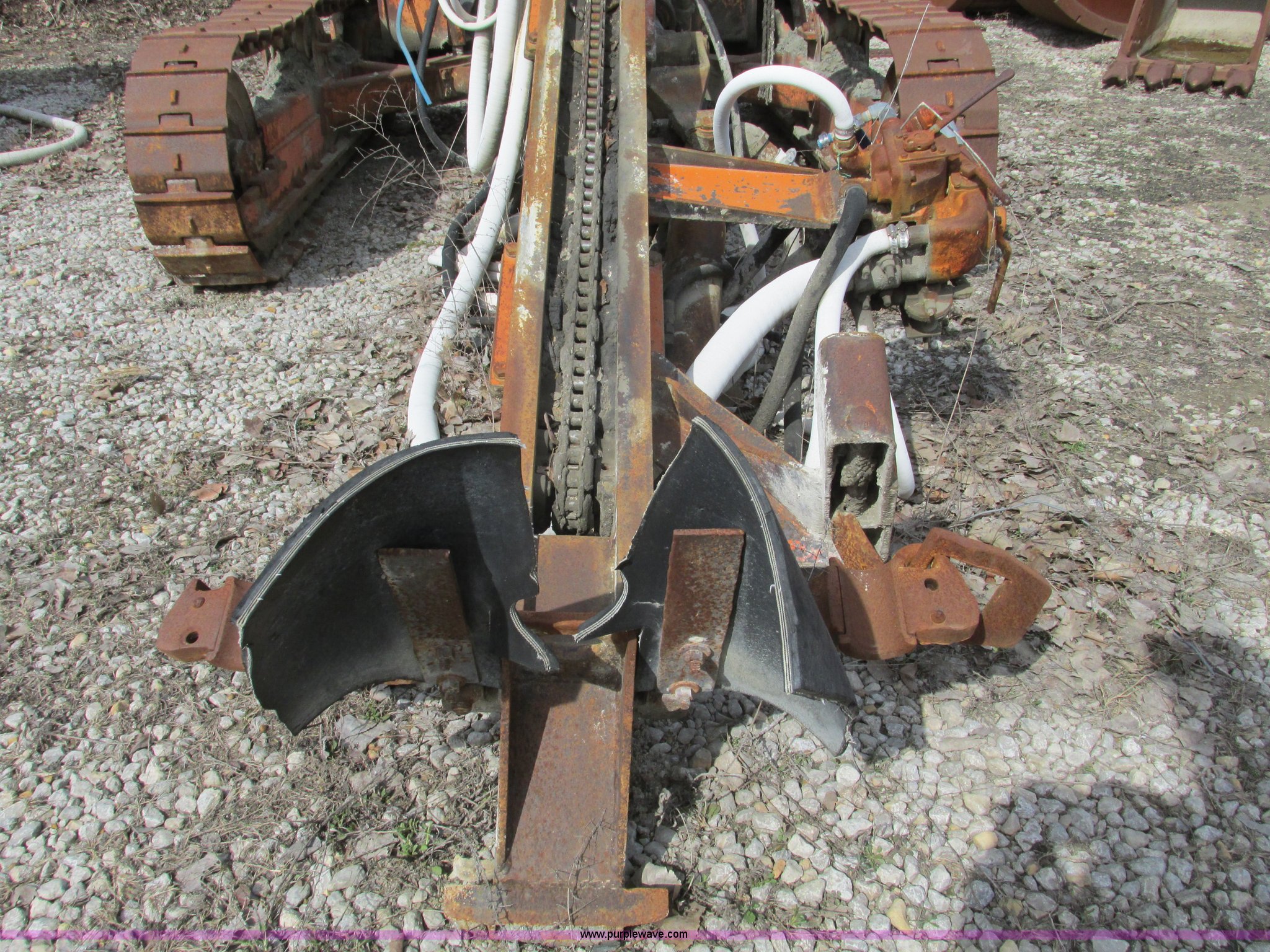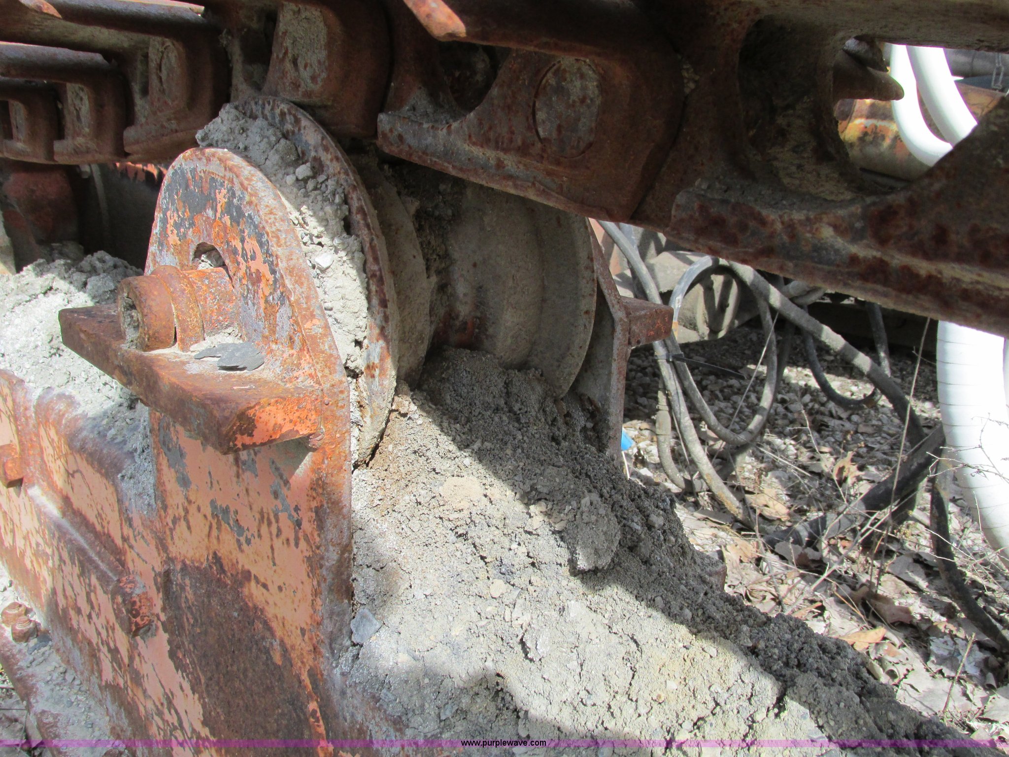 Pneumatic six rock drill. Operators station, Extend-a-boom, Rear pin hitch, Holds up to 14' steel, 11"W tracks, Unit# 4802. Damon Pursell Construction. 300 N Church Rd. Liberty, MO 64068