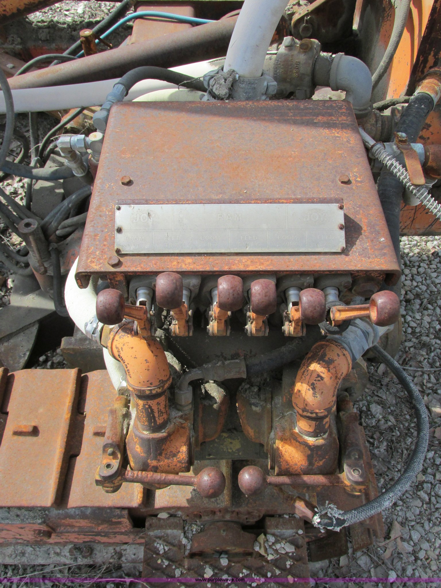 Purple Wave is selling a used Blasthole Drill in Missouri. This item is a Pneumatic six rock drill with the following: Operators station, Extend-a-boom, Rear pin hitch, Holds up to 14' steel, 11"W tracks, Unit# 4802