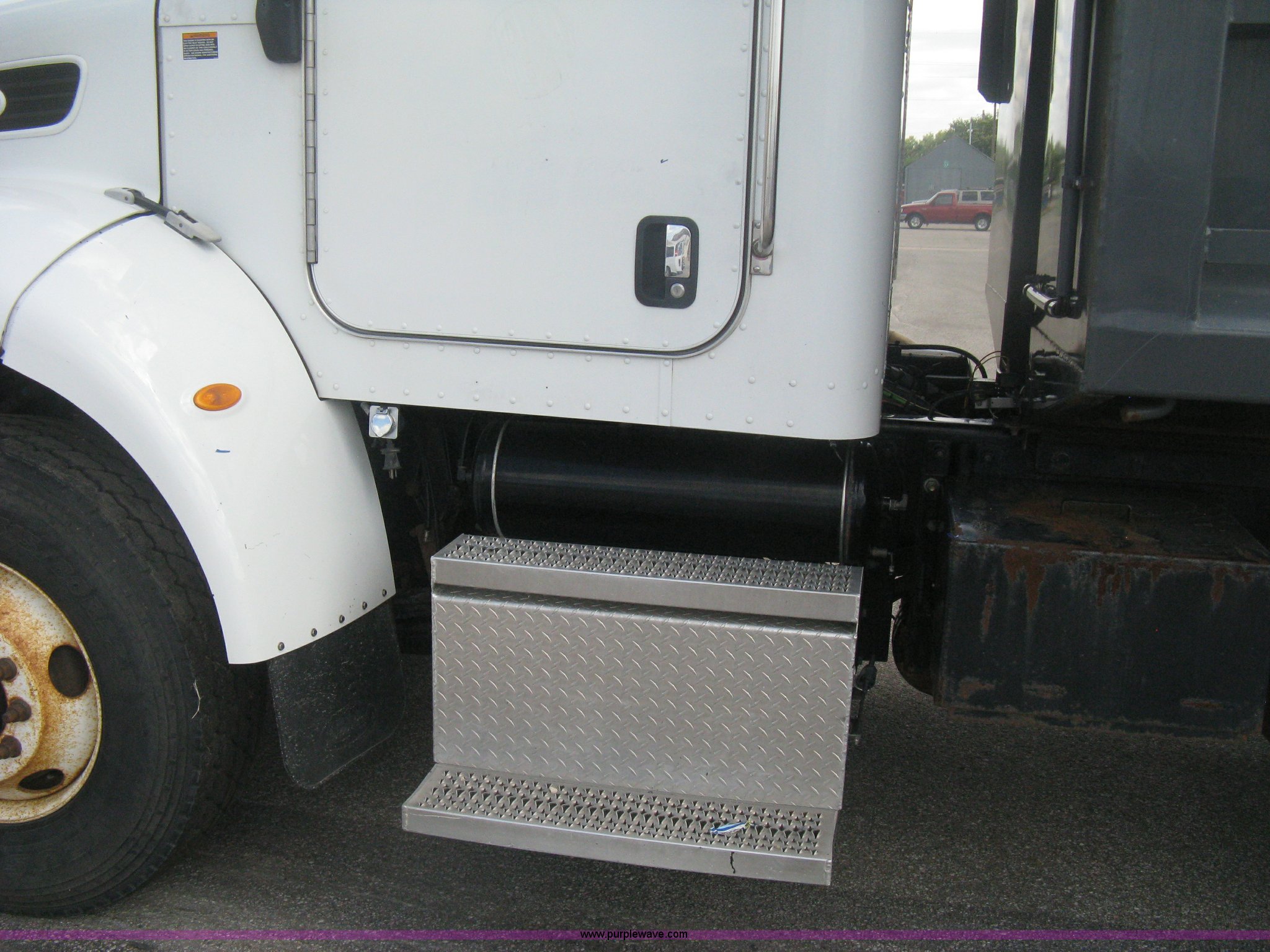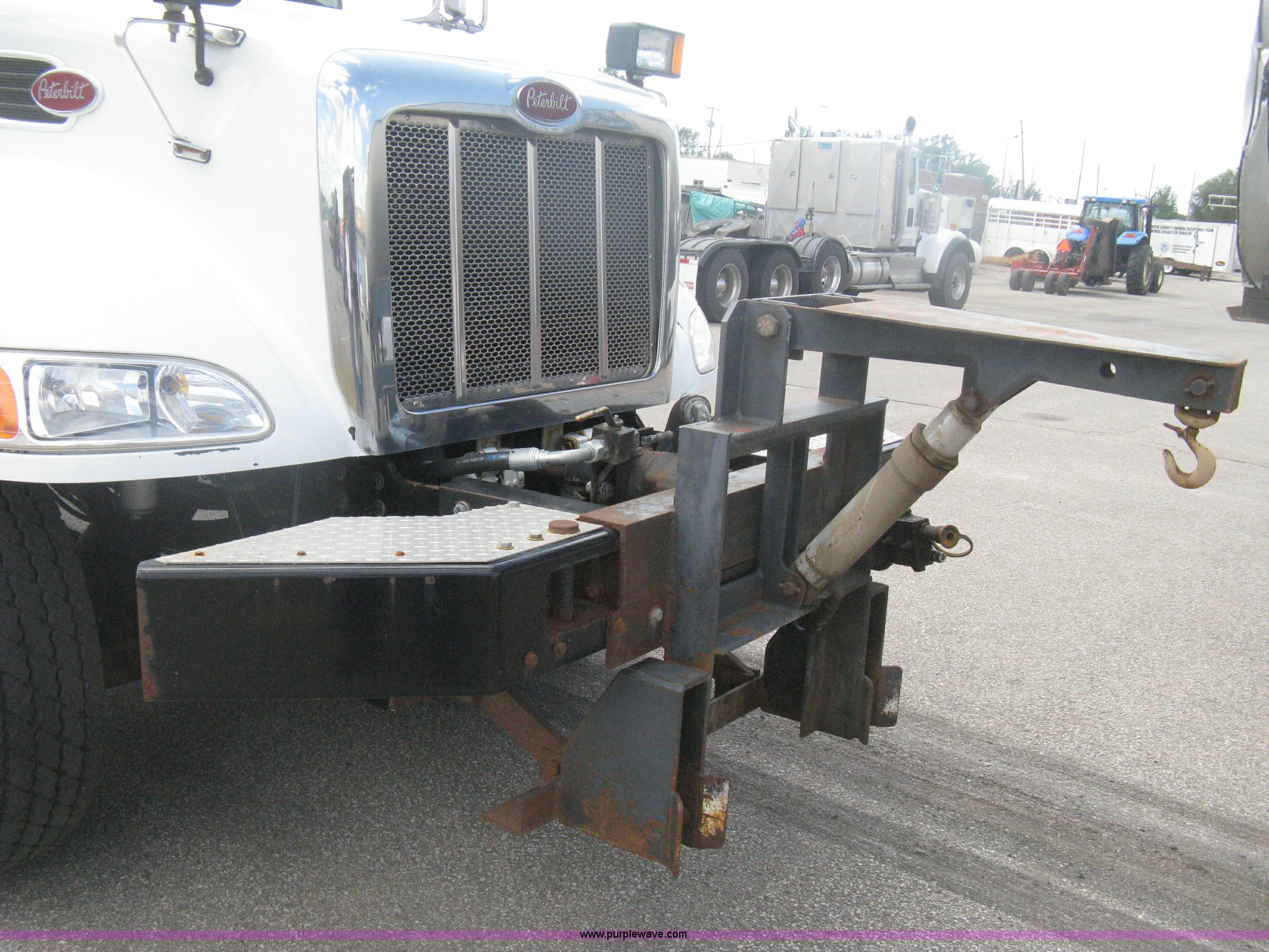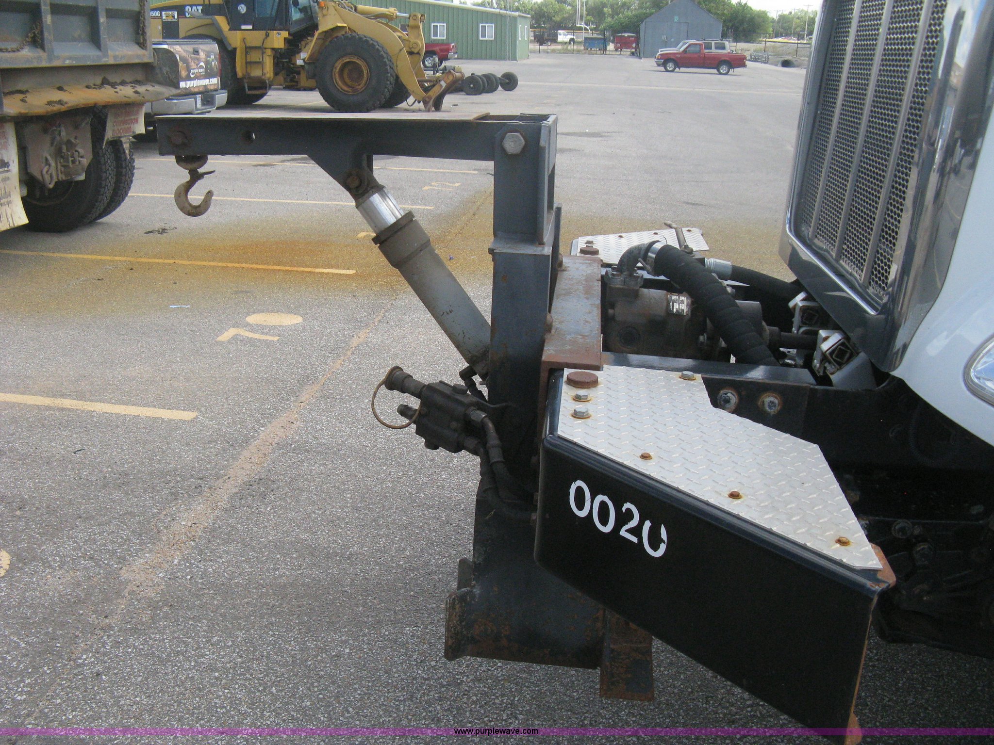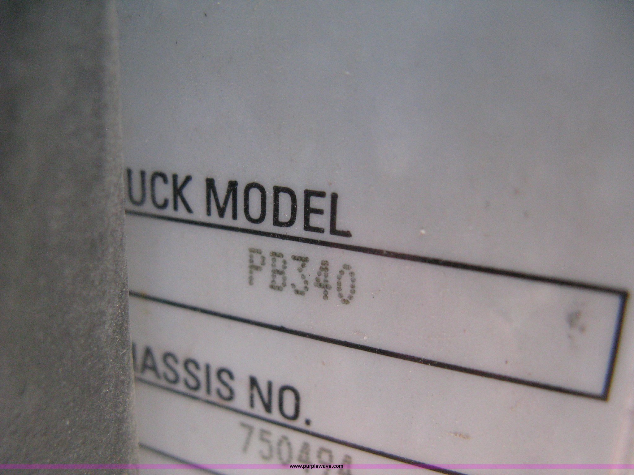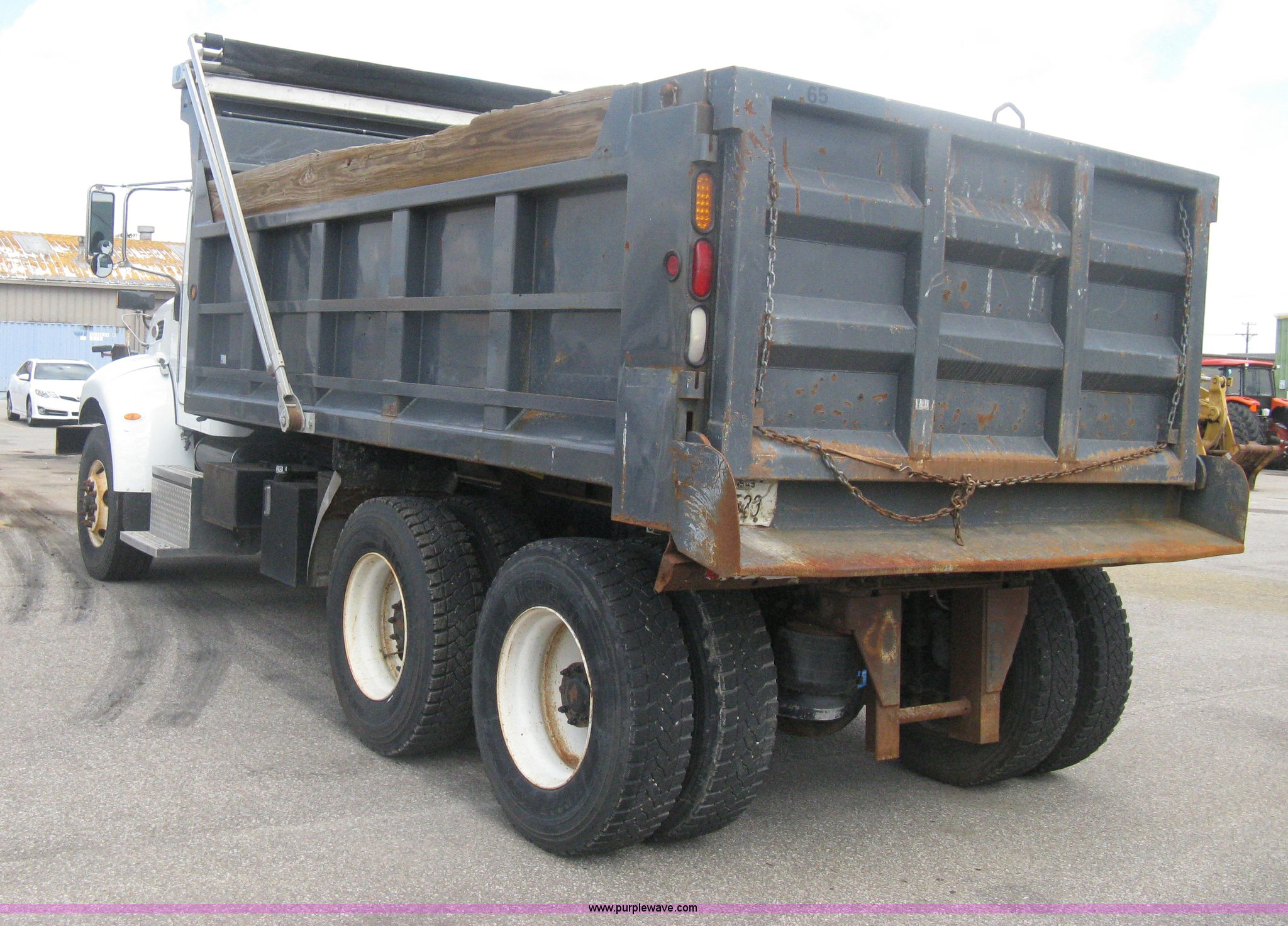 Purple Wave is selling a used Construction Dump Truck in Kansas. This item is a 2008 Peterbilt 340 dump truck with the following: 112,562 miles on odometer, 4,618 hours on meter, Cummins ITC L6 diesel engine, 330 HP, Automatic transmission, Model RTO10910B-A53, Full screw, Full locking differential, AC and heat, Tilt, Cruise, AM/FM, Telescoping steering wheel, Air suspension seat, Heated mirrors, Air ride cab, Daylight passenger window, Mabar DB153659 dump bed, 15'L x 95"W, Tip top side boards, Rollover tarp, Single ram hoist, Air operated end gate, Dickey-John control point digital monitor, Joystick plow and hoist control, Spreader control, Exterior visor, Block heater, Toolboxes, 110 gallon fuel tank, Front mount PTO, Air suspension, Air brakes, Jake brake, 5:29 gear ratio, 315/80R22.5 front tires, 11R22.5 rear tires, GVWR 58,000 lbs, FAWR 18,000 lbs, IAWR 20,000 lbs, RAWR 20,000 lbs, Paint peeling, Front bumper snow plow mounting brackets not included, Unit# 0020
