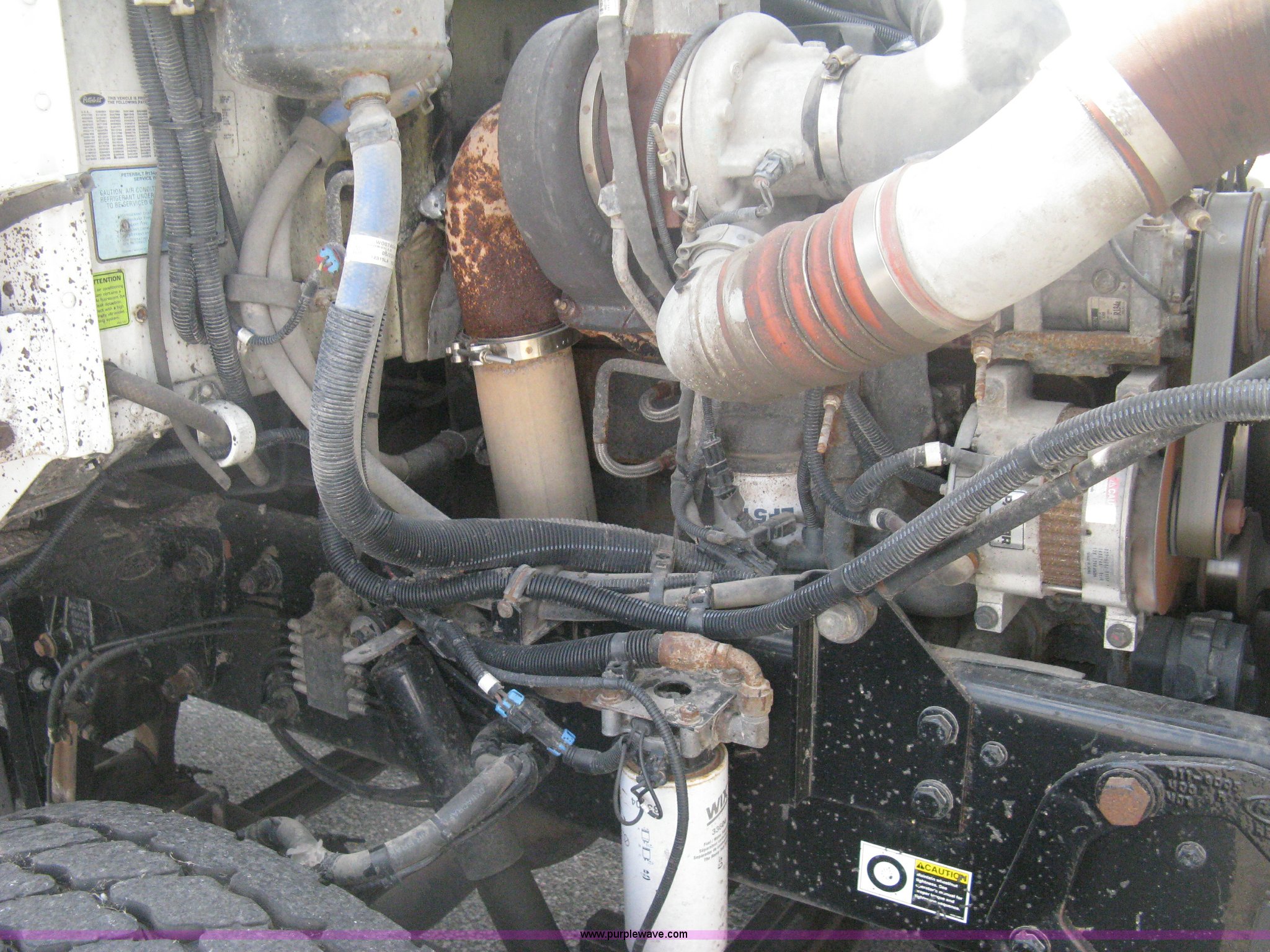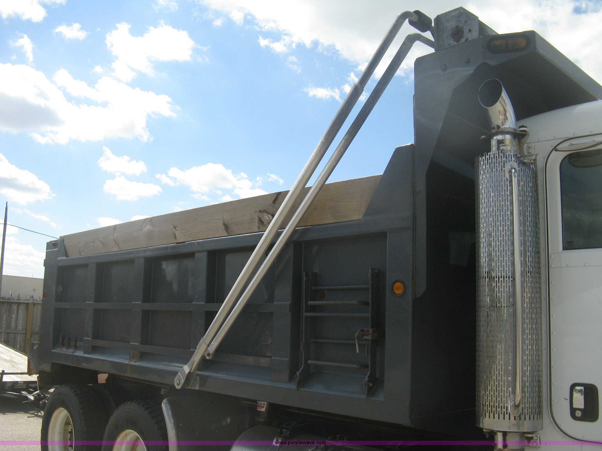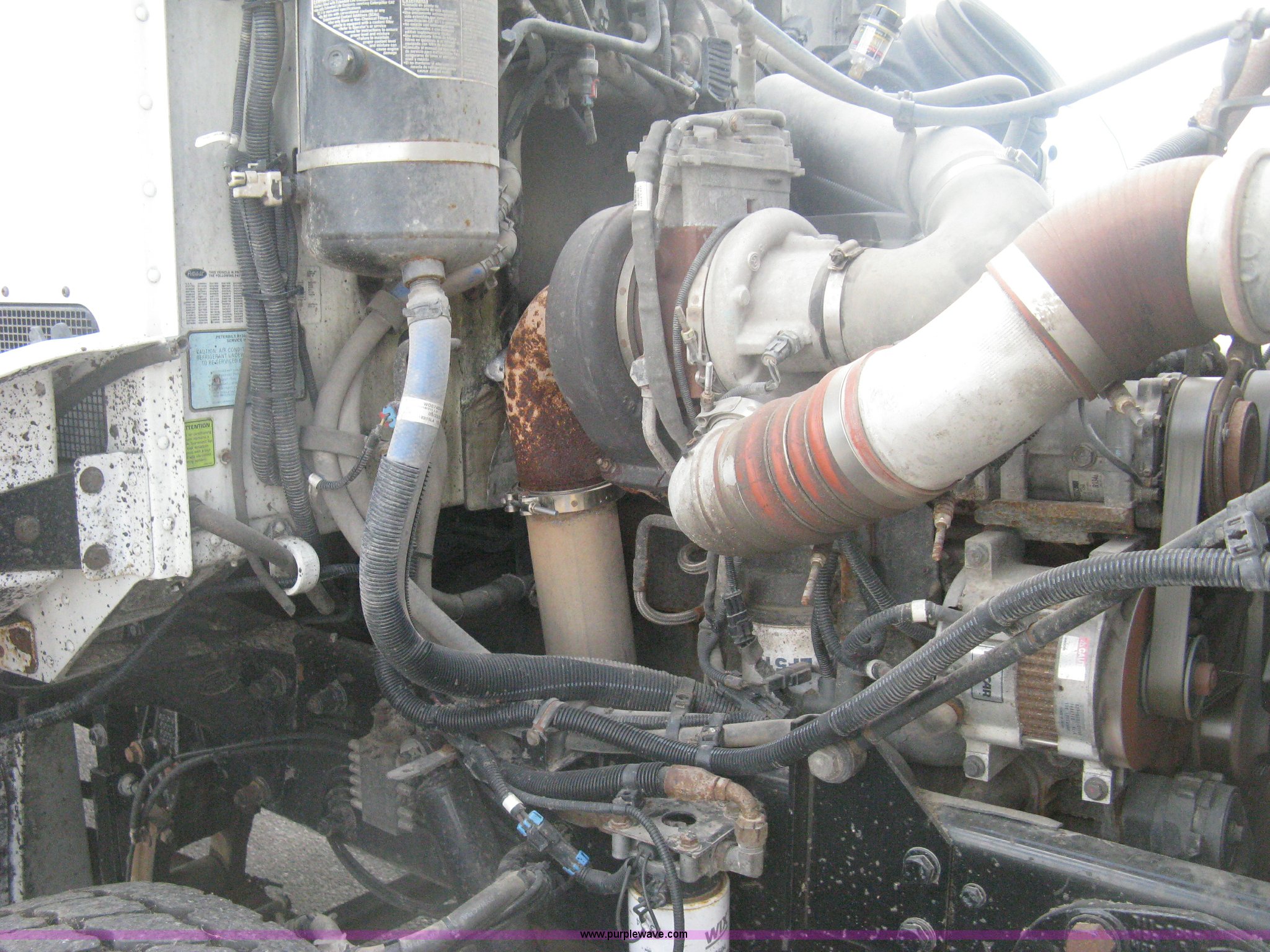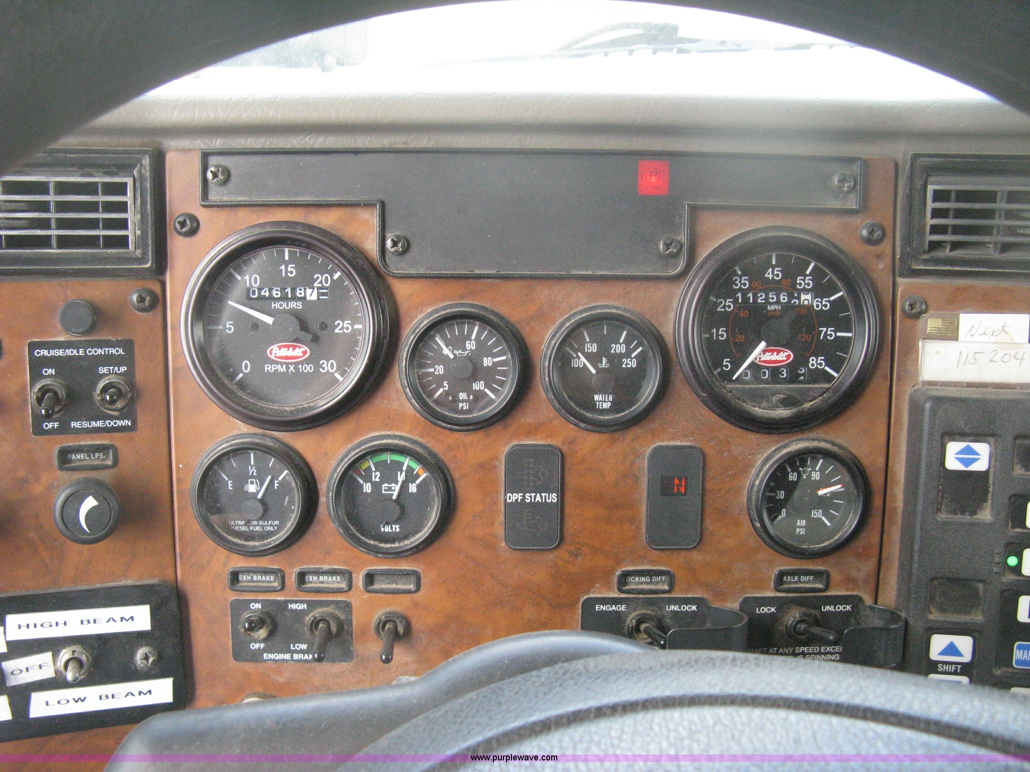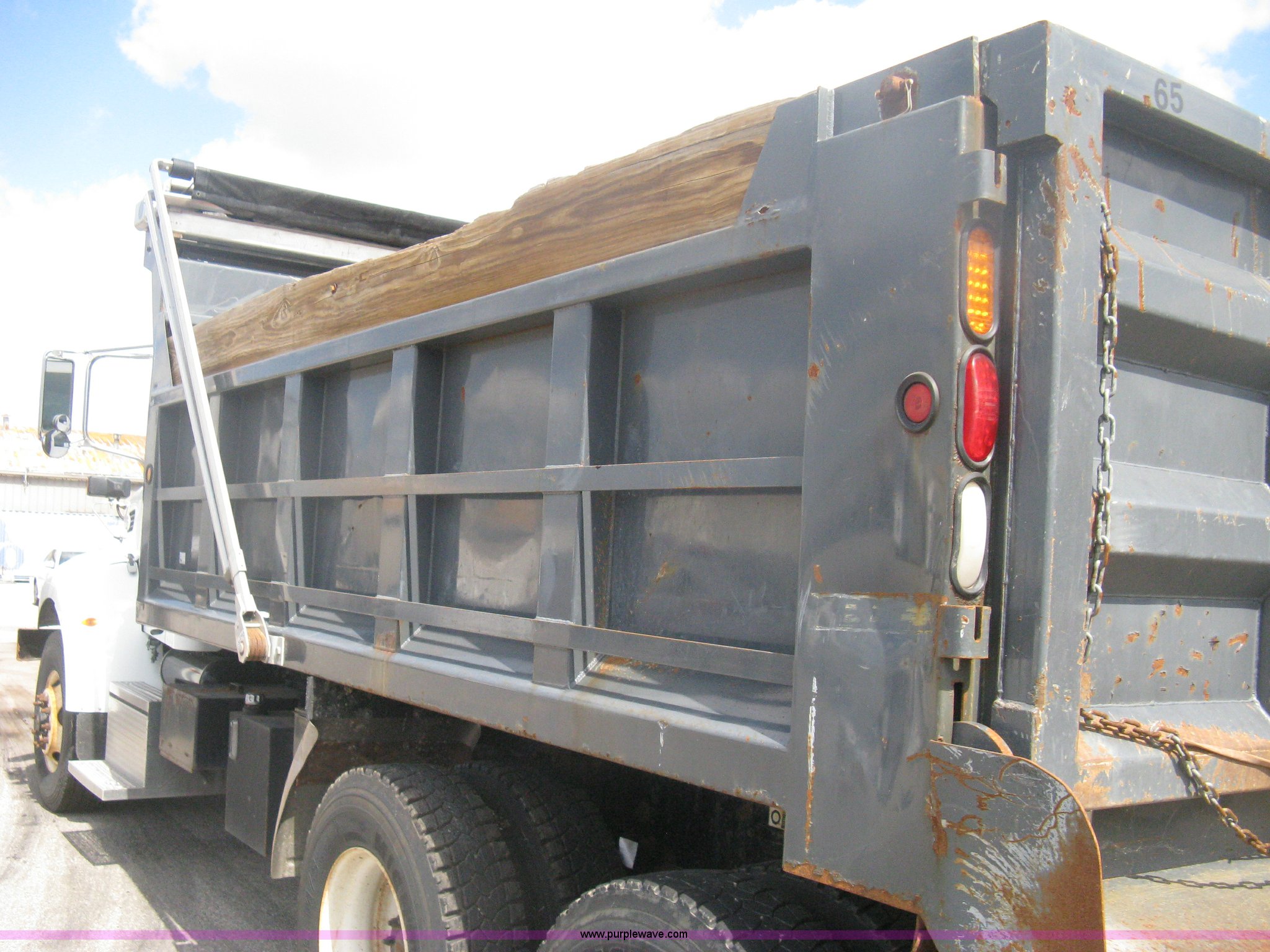 Purple Wave is selling a used Construction Dump Truck in Kansas. This item is a 2008 Peterbilt 340 dump truck with the following: 112,562 miles on odometer, 4,618 hours on meter, Cummins ITC L6 diesel engine, 330 HP, Automatic transmission, Model RTO10910B-A53, Full screw, Full locking differential, AC and heat, Tilt, Cruise, AM/FM, Telescoping steering wheel, Air suspension seat, Heated mirrors, Air ride cab, Daylight passenger window, Mabar DB153659 dump bed, 15'L x 95"W, Tip top side boards, Rollover tarp, Single ram hoist, Air operated end gate, Dickey-John control point digital monitor, Joystick plow and hoist control, Spreader control, Exterior visor, Block heater, Toolboxes, 110 gallon fuel tank, Front mount PTO, Air suspension, Air brakes, Jake brake, 5:29 gear ratio, 315/80R22.5 front tires, 11R22.5 rear tires, GVWR 58,000 lbs, FAWR 18,000 lbs, IAWR 20,000 lbs, RAWR 20,000 lbs, Paint peeling, Front bumper snow plow mounting brackets not included, Unit# 0020