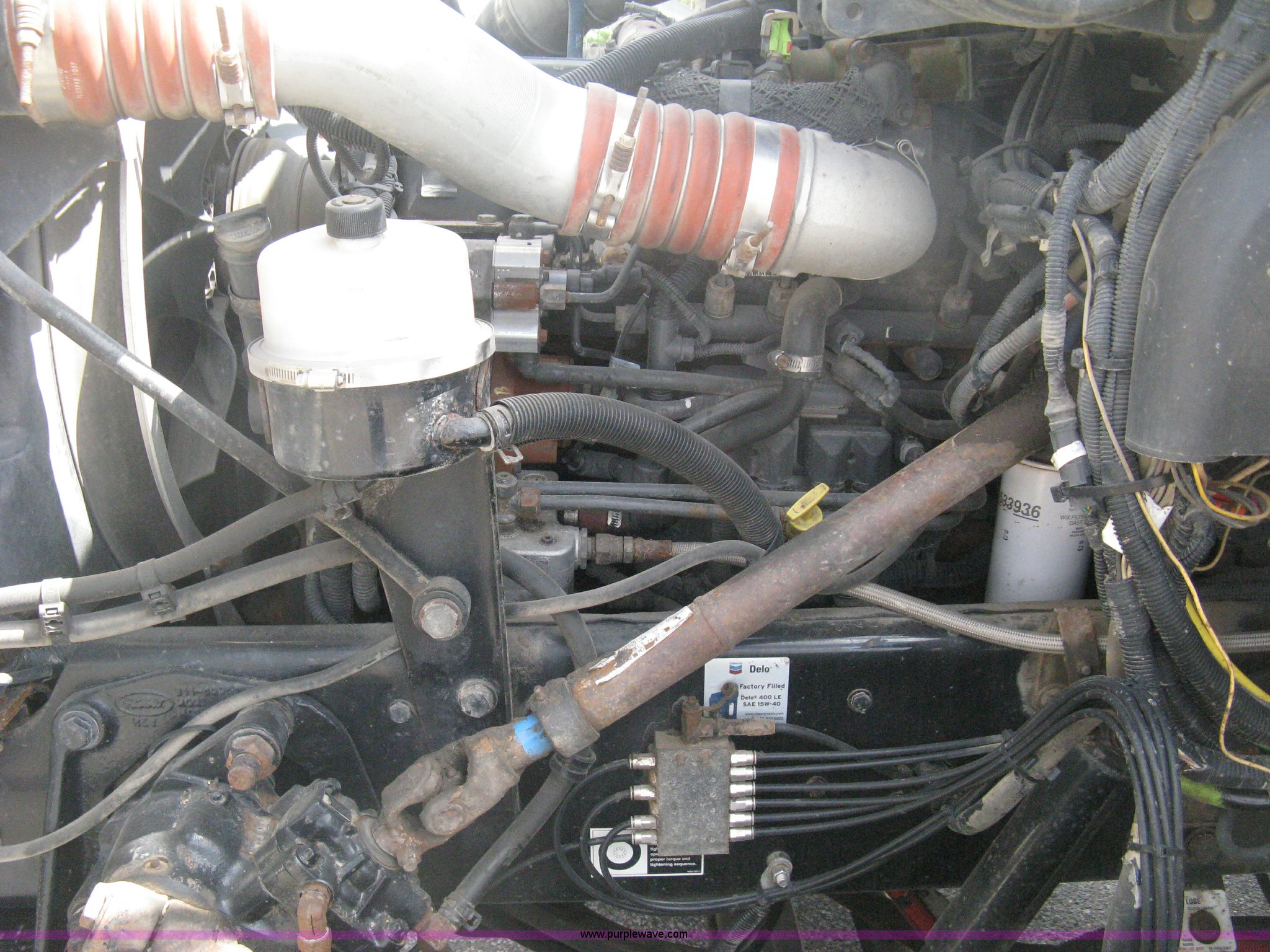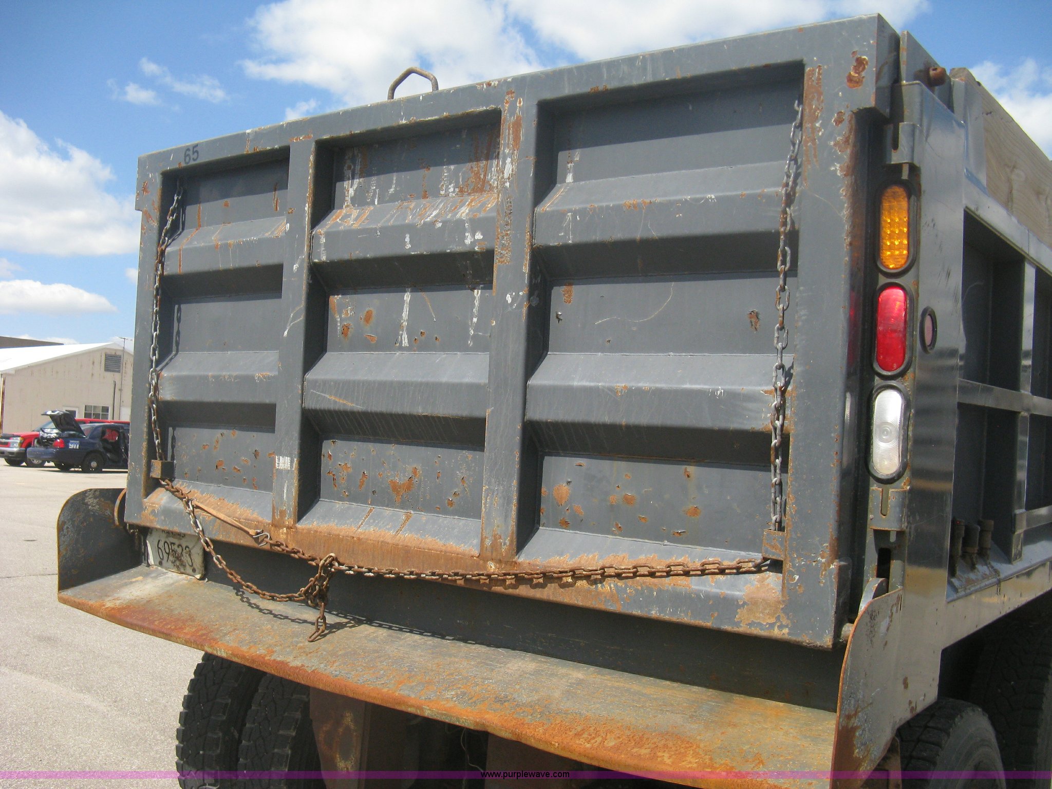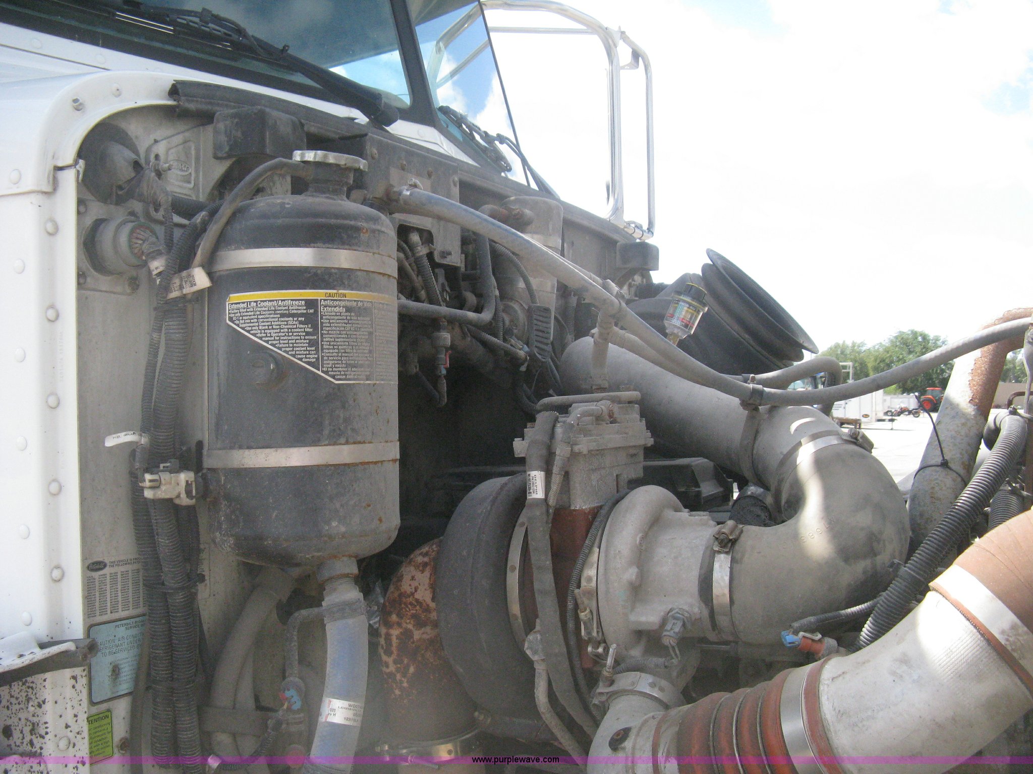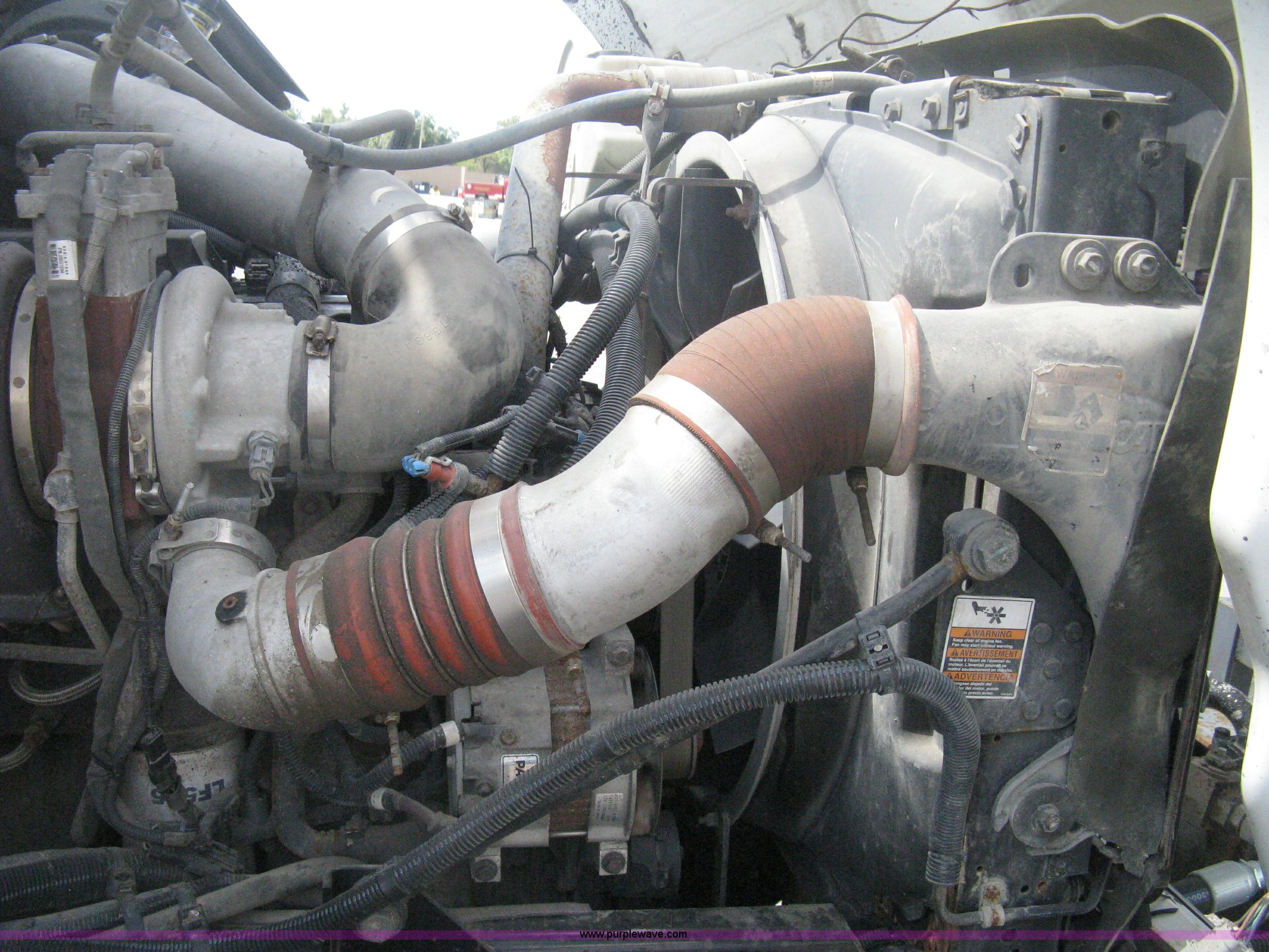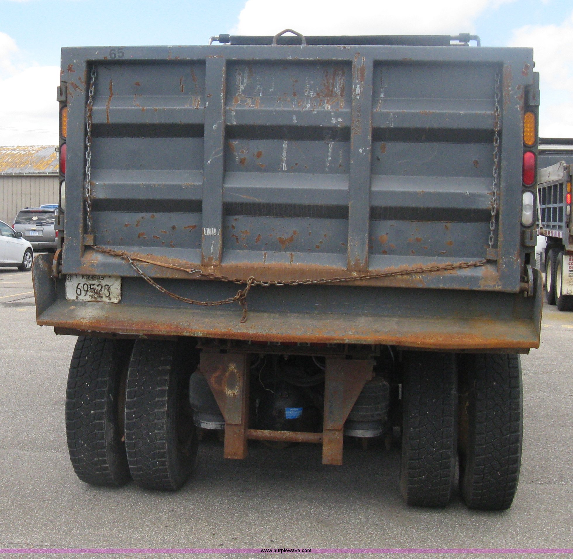 Purple Wave is selling a used Construction Dump Truck in Kansas. This item is a 2008 Peterbilt 340 dump truck with the following: 112,562 miles on odometer, 4,618 hours on meter, Cummins ITC L6 diesel engine, 330 HP, Automatic transmission, Model RTO10910B-A53, Full screw, Full locking differential, AC and heat, Tilt, Cruise, AM/FM, Telescoping steering wheel, Air suspension seat, Heated mirrors, Air ride cab, Daylight passenger window, Mabar DB153659 dump bed, 15'L x 95"W, Tip top side boards, Rollover tarp, Single ram hoist, Air operated end gate, Dickey-John control point digital monitor, Joystick plow and hoist control, Spreader control, Exterior visor, Block heater, Toolboxes, 110 gallon fuel tank, Front mount PTO, Air suspension, Air brakes, Jake brake, 5:29 gear ratio, 315/80R22.5 front tires, 11R22.5 rear tires, GVWR 58,000 lbs, FAWR 18,000 lbs, IAWR 20,000 lbs, RAWR 20,000 lbs, Paint peeling, Front bumper snow plow mounting brackets not included, Unit# 0020