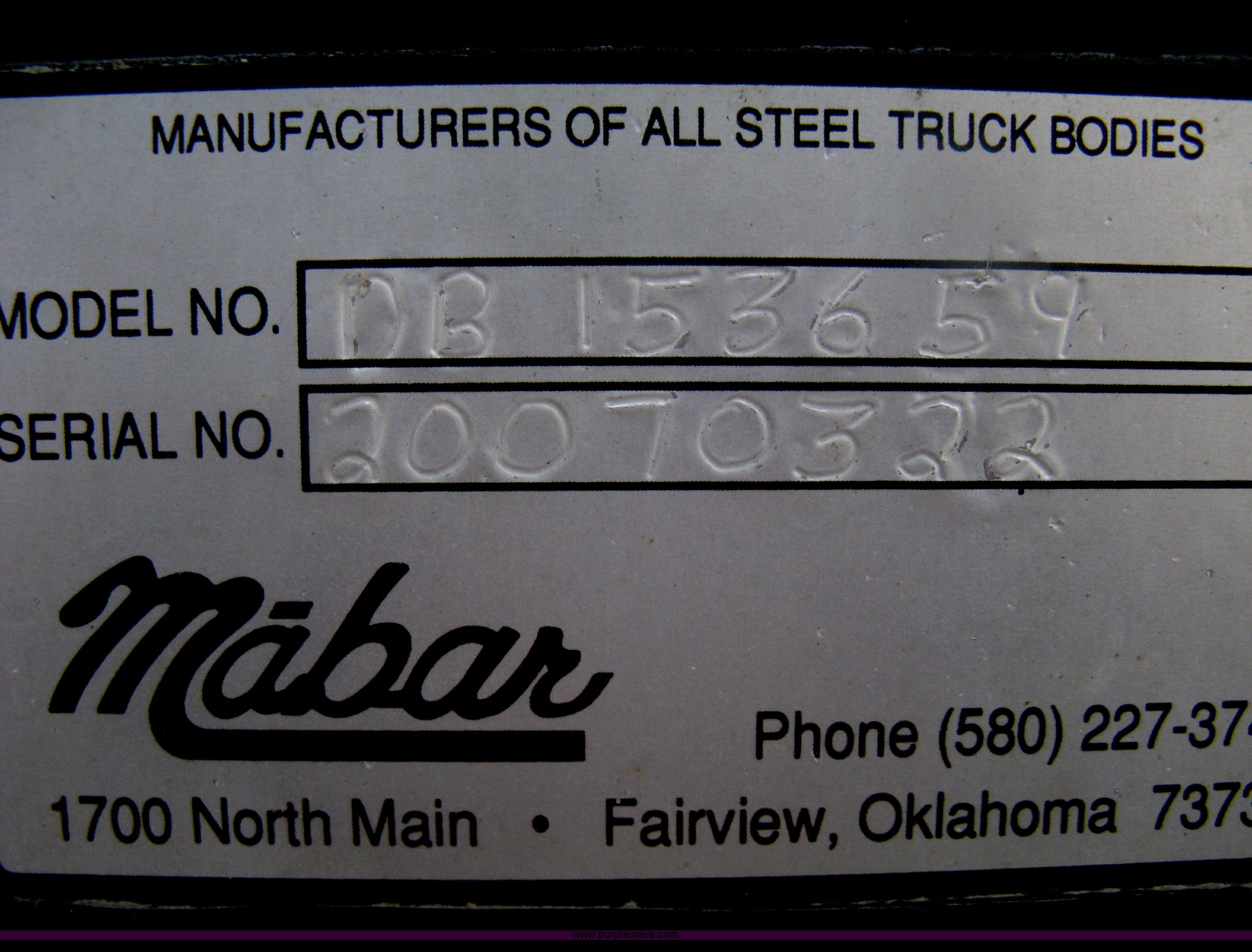 - Mabar DB153659 dump bed