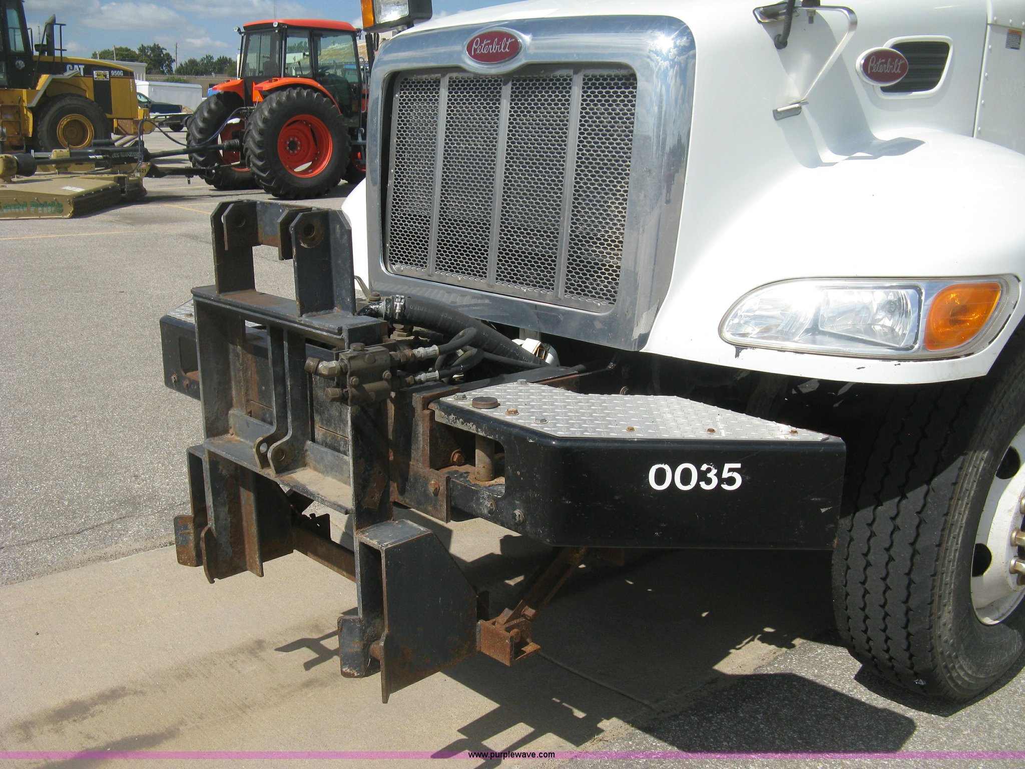 Purple Wave is selling a used Construction Dump Truck in Kansas. This item is a 2008 Peterbilt 340 dump truck with the following: 116,725 miles on odometer, 5,258 hours on meter, Cummins ITC L6 diesel engine, 330 HP, Automatic transmission, Model RT010910B-A53, Full screw, Full locking differential, AC and heat, Tilt, Cruise, AM/FM, Telescoping steering wheel, Air suspension seat, Heated mirrors, Passenger daylight window, Air ride cab, Dickey-John control point digital monitor, Joystick plow and hoist control, Spreader controls, Mabar DB153659 dump bed, 15'L x 95"W, Tip top side boards, Air operated end gate, Single ram hoist, Mechanical rollover tarp, Exterior visor, Block heater, Trailer wiring, Toolboxes, 110 gallon fuel tank, Lincoln quick luge, Front mount PTO, Dump valve, Air suspension, Air brakes, Jake brake, 5:29 gear ratio, 209" wheelbase, 315/80R22.5 front tires, 11R22.5 rear tires, GVWR 58,000 lbs, FAWR 18,000 lbs, IAWR 20,000 lbs, RAWR 20,000 lbs, Front snow plow mounts not included, Unit# 0035