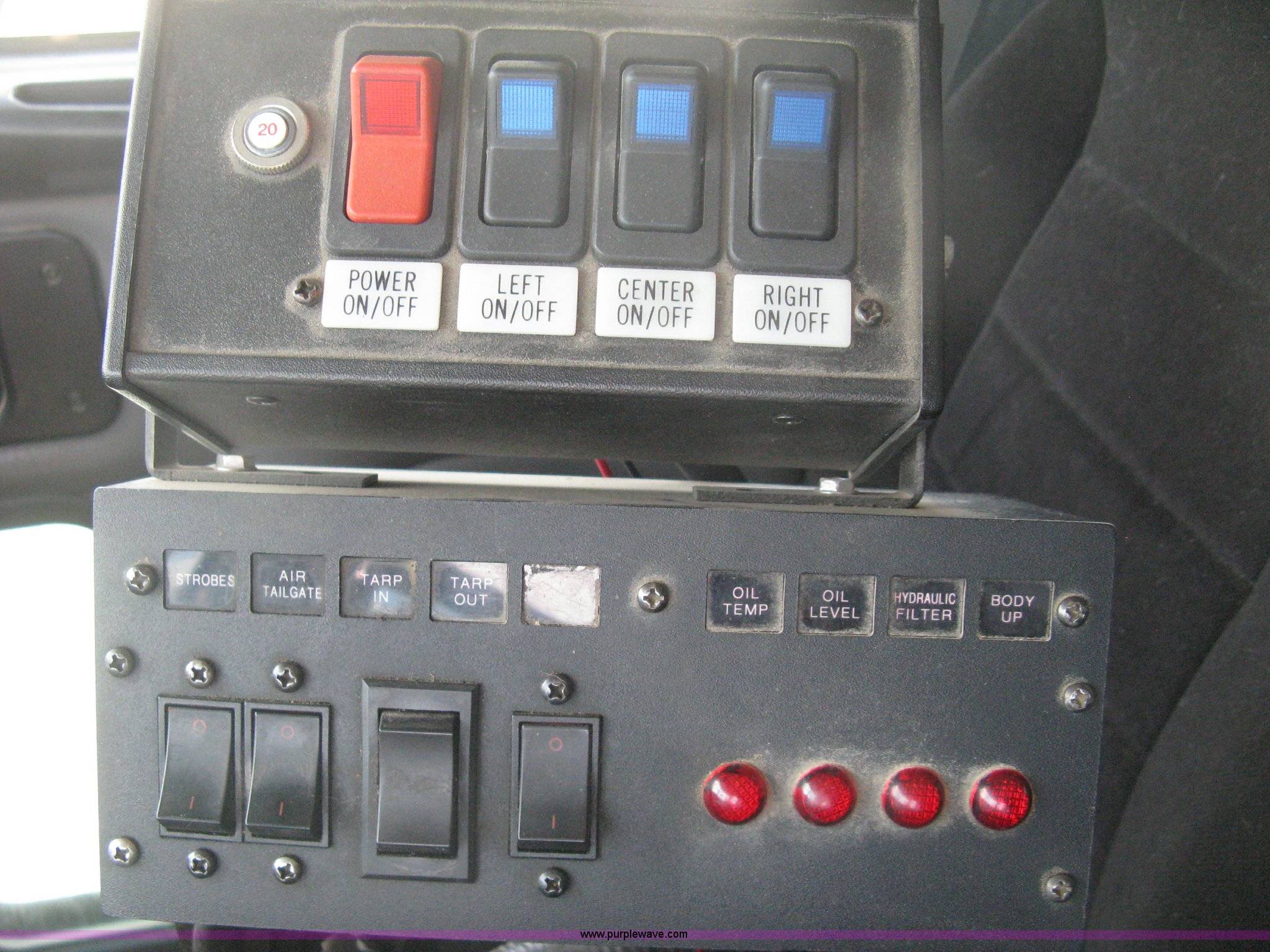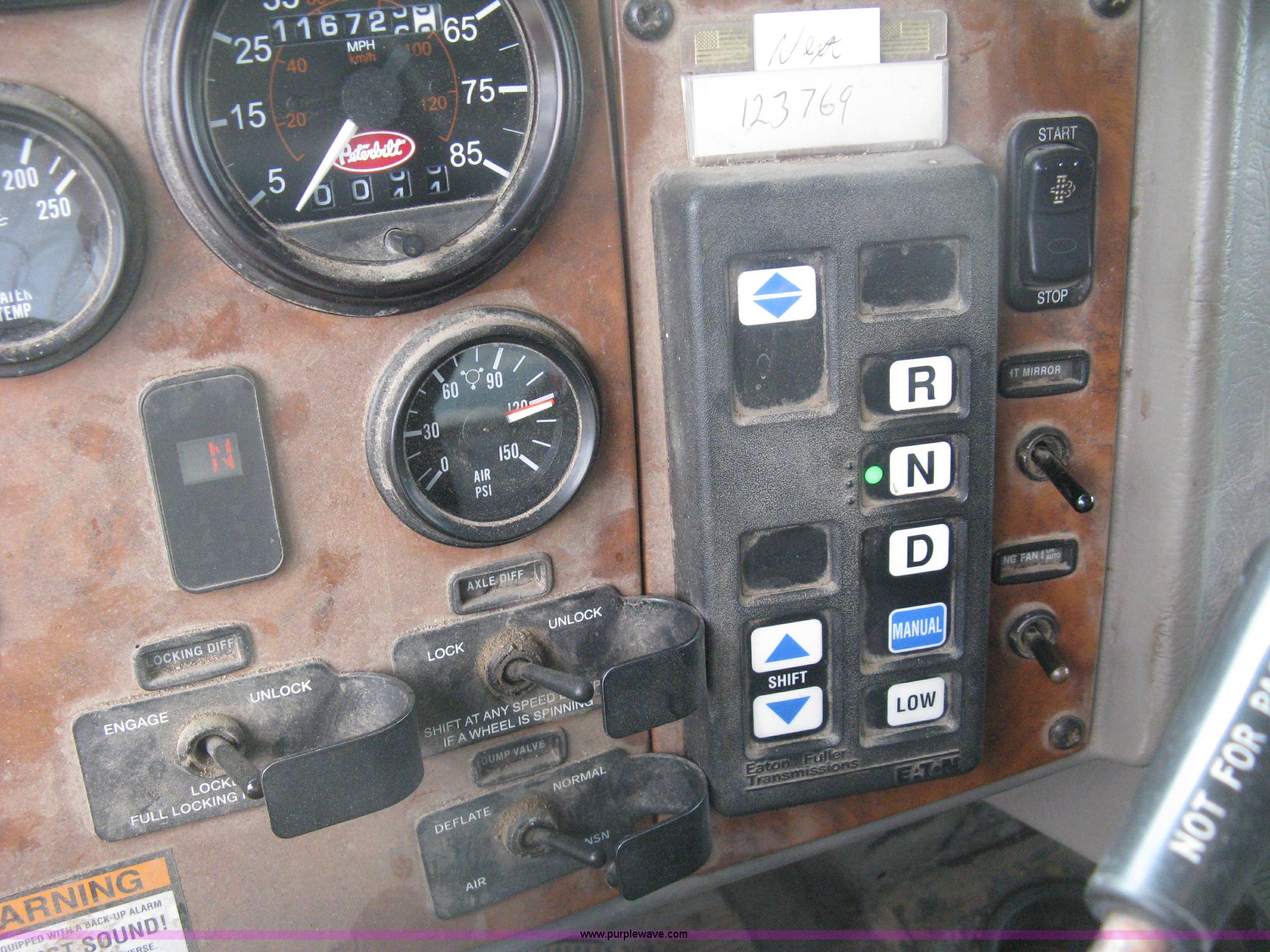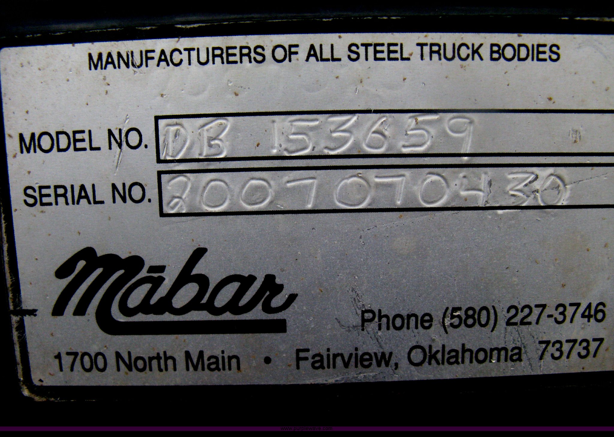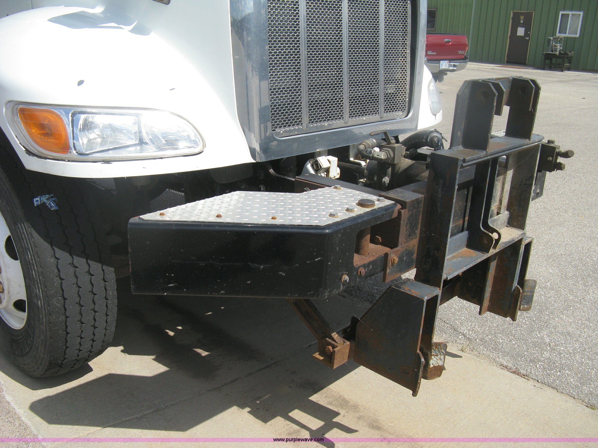 2008 Peterbilt 340 dump truck. 116,725 miles on odometer, 5,258 hours on meter, Cummins ITC L6 diesel engine 330 HP, Automatic transmission Model RT010910B-A53, Full screw, Full locking differential, AC and heat, Tilt, Cruise, AM/FM, Telescoping steering wheel, Air suspension seat, Heated mirrors, Passenger daylight window, Air ride cab, Dickey-John control point digital monitor, Joystick plow and hoist control, Spreader controls, Mabar DB153659 dump bed 15'L x 95"W, Tip top side boards, Air operated end gate, Single ram hoist, Mechanical rollover tarp, Exterior visor, Block heater, Trailer wiring, Toolboxes, 110 gallon fuel tank, Lincoln quick luge, Front mount PTO, Dump valve, Air suspension, Air brakes, Jake brake, 5:29 gear ratio, 209" wheelbase, 315/80R22.5 front tires, 11R22.5 rear tires, GVWR 58,000 lbs, FAWR 18,000 lbs, IAWR 20,000 lbs, RAWR 20,000 lbs, Front snow plow mounts not included, Unit# 0035. 2NPRLN0X38M750492. Sedgwick County. 1021 Stillwell. Wichita, KS 67213