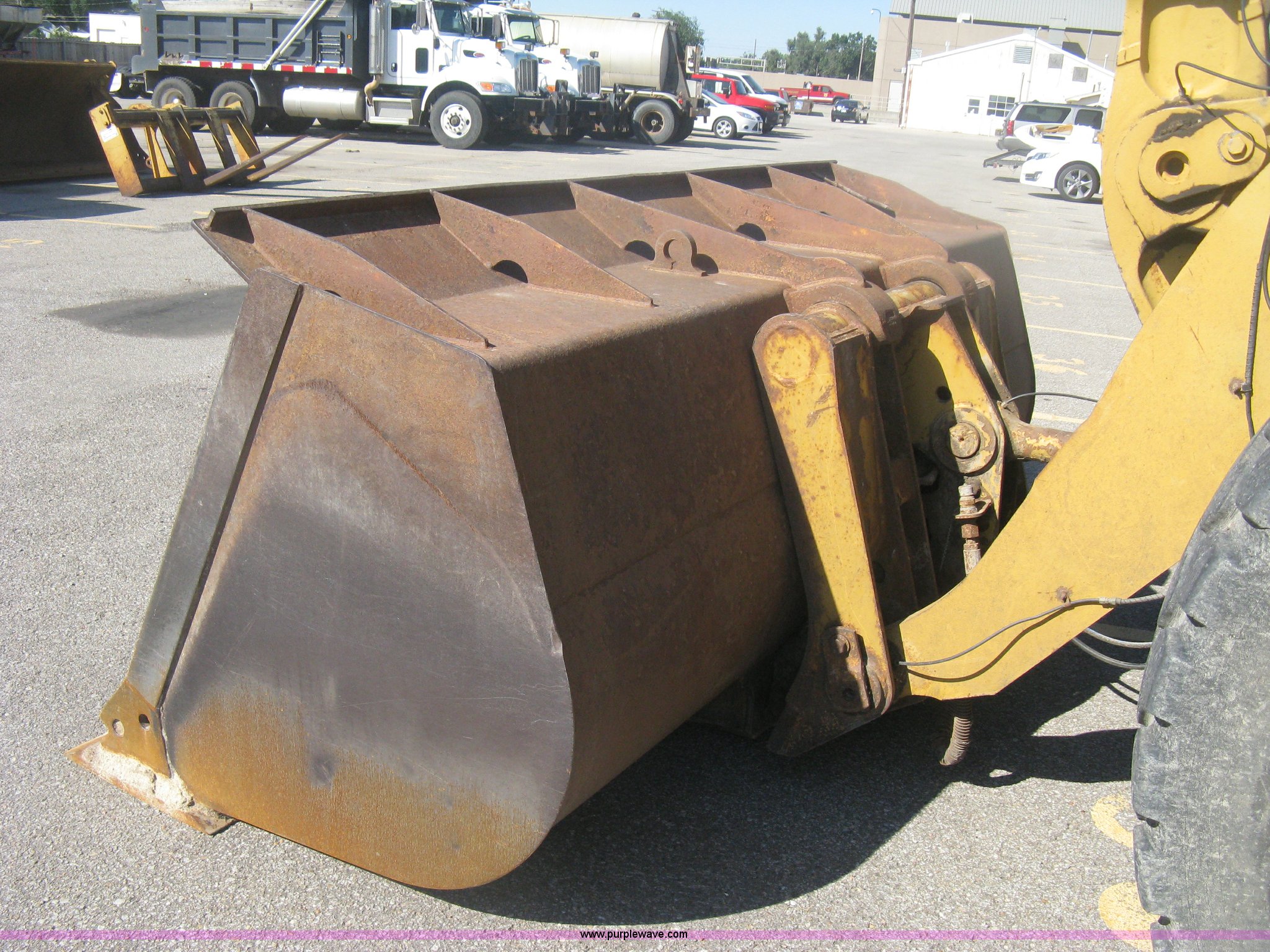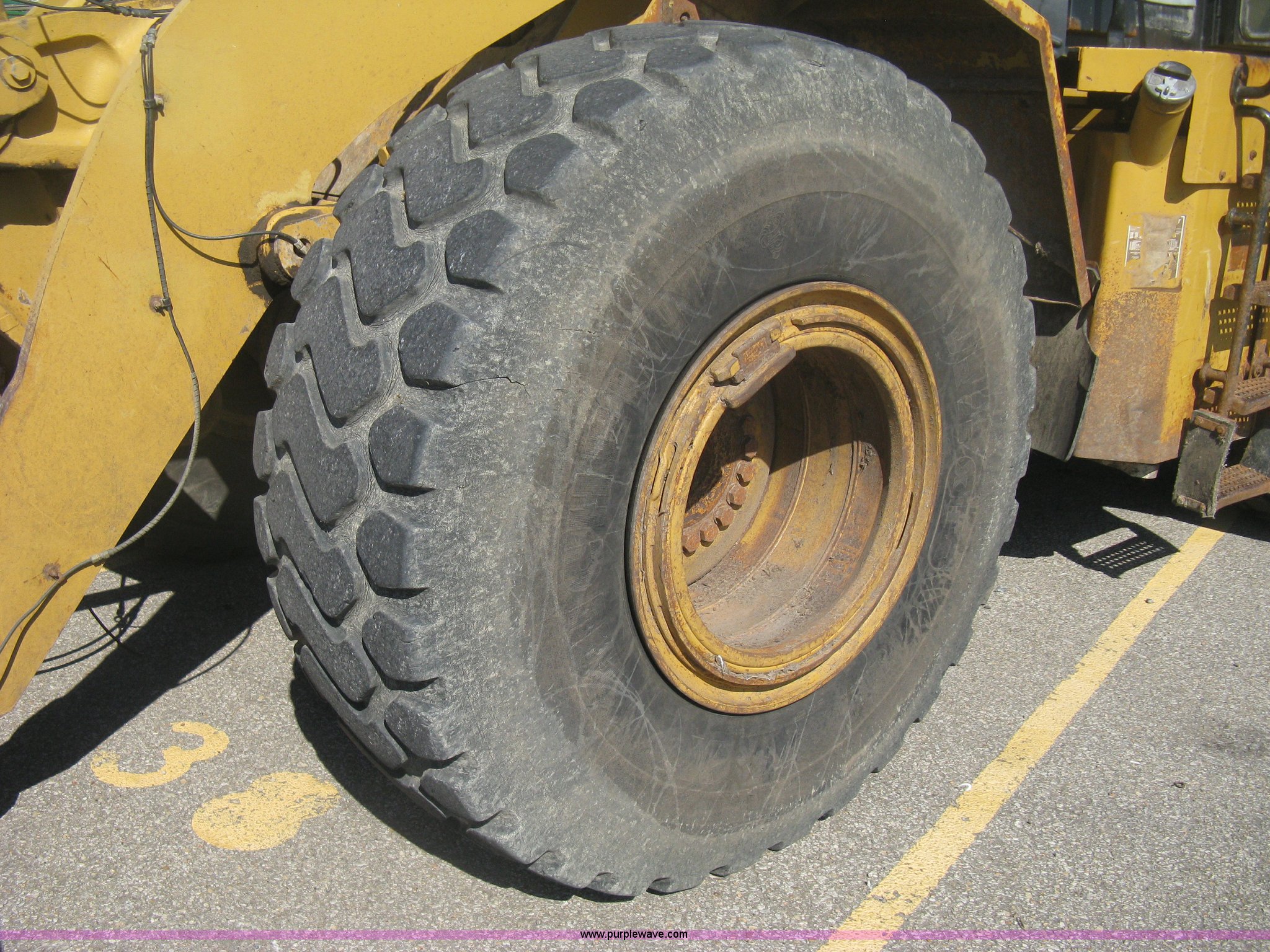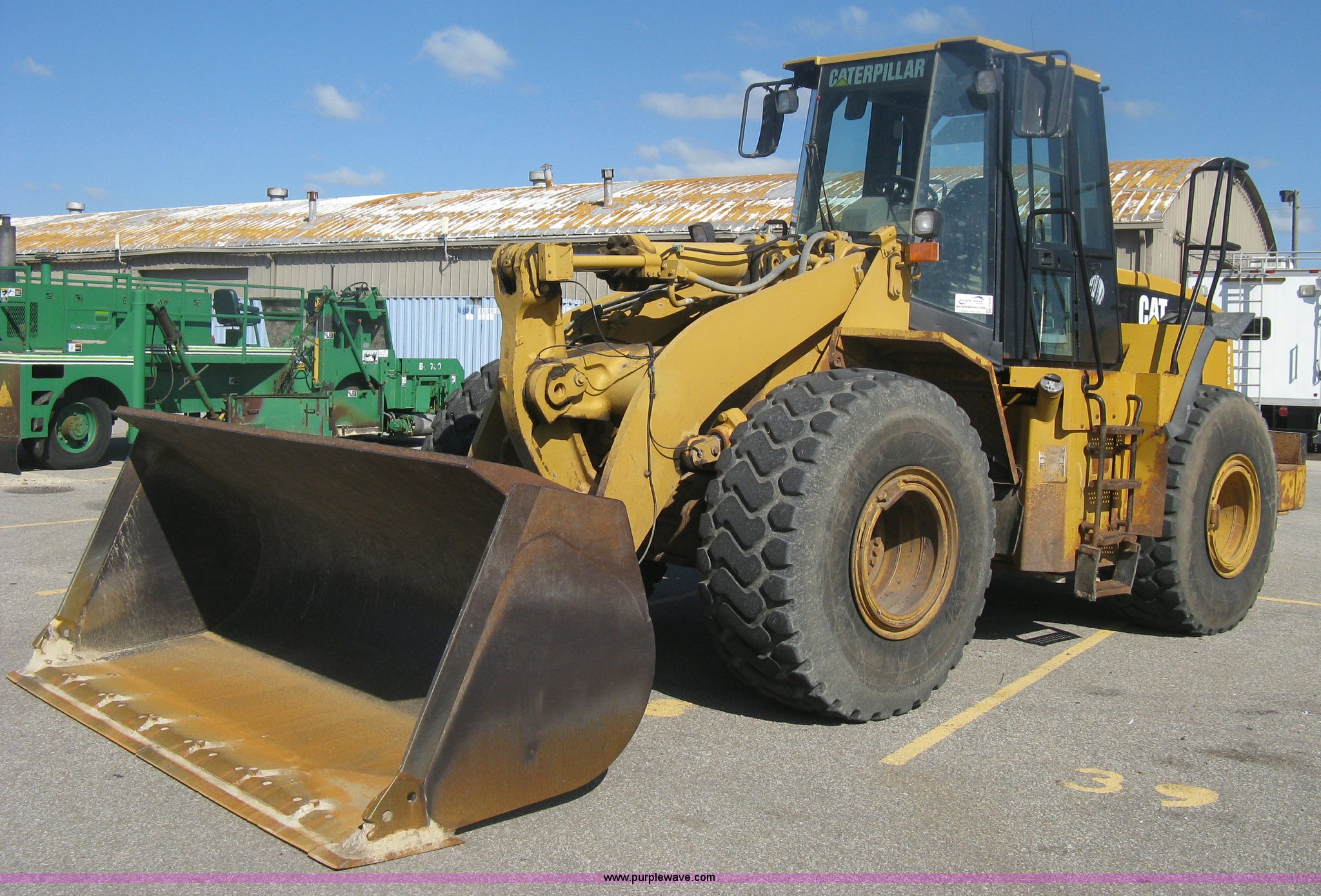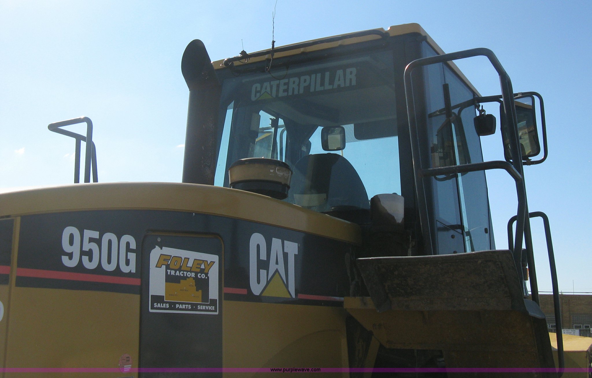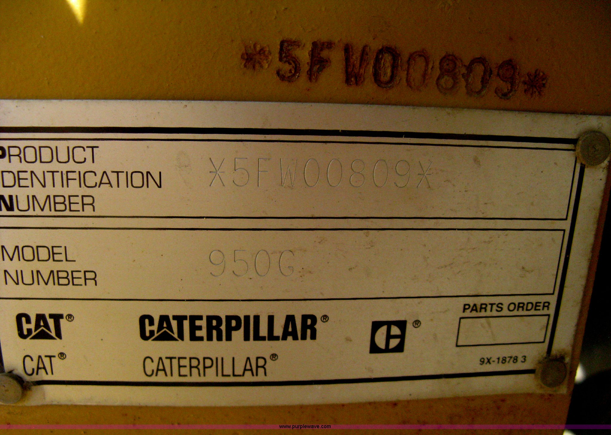 Purple Wave is selling a used Wheel Loader in Kansas. This item is a 1999 Caterpillar 950G wheel loader with the following: 7,840 hours on meter, Caterpillar six cylinder diesel engine, Model 3126DITA, Serial 6JK63077, Four speed powershift transmission, Serial 2SY01766, Enclosed cab, AC and heat, Tilt steering, Non-operational radio, Suspension seat, Joystick loader control with kick down button, Auxiliary hydraulics, Caterpillar quick coupler, Serial 3WL48639, 114"W bucket, Bolt-on edge, Automatic greasing unit, Michelin 23.5R25 tires, 39,200 lbs. base operating weight, Rust, Power lift engine hood inoperable, One owner, Serial 5FW00809, Unit# 0255
