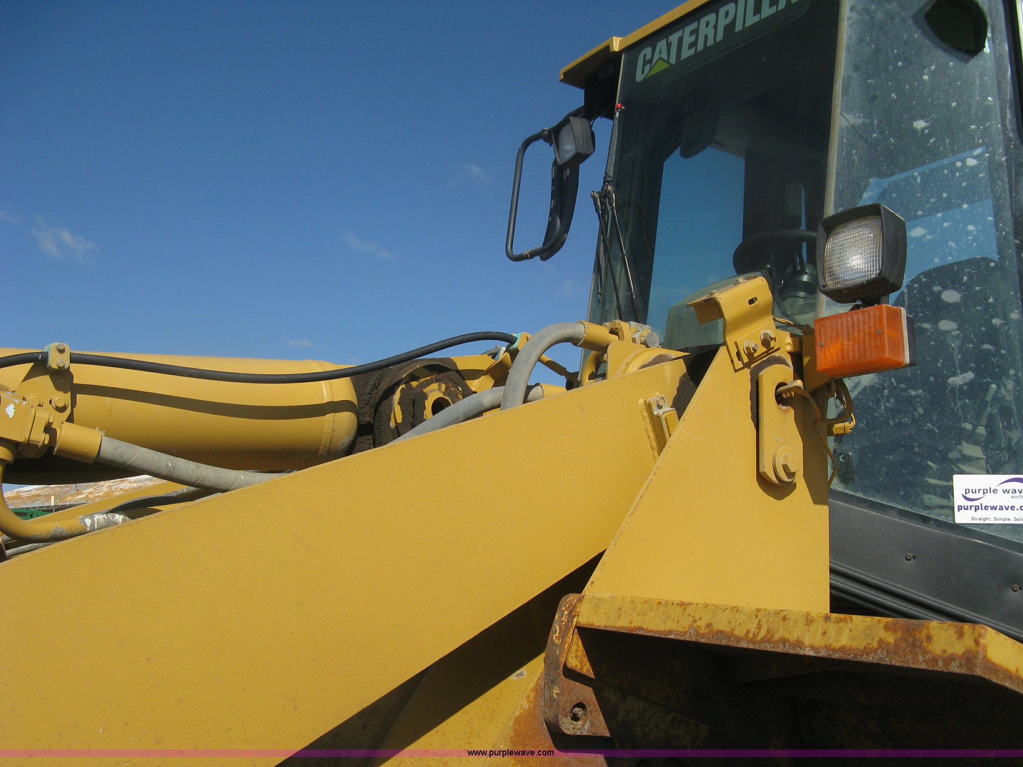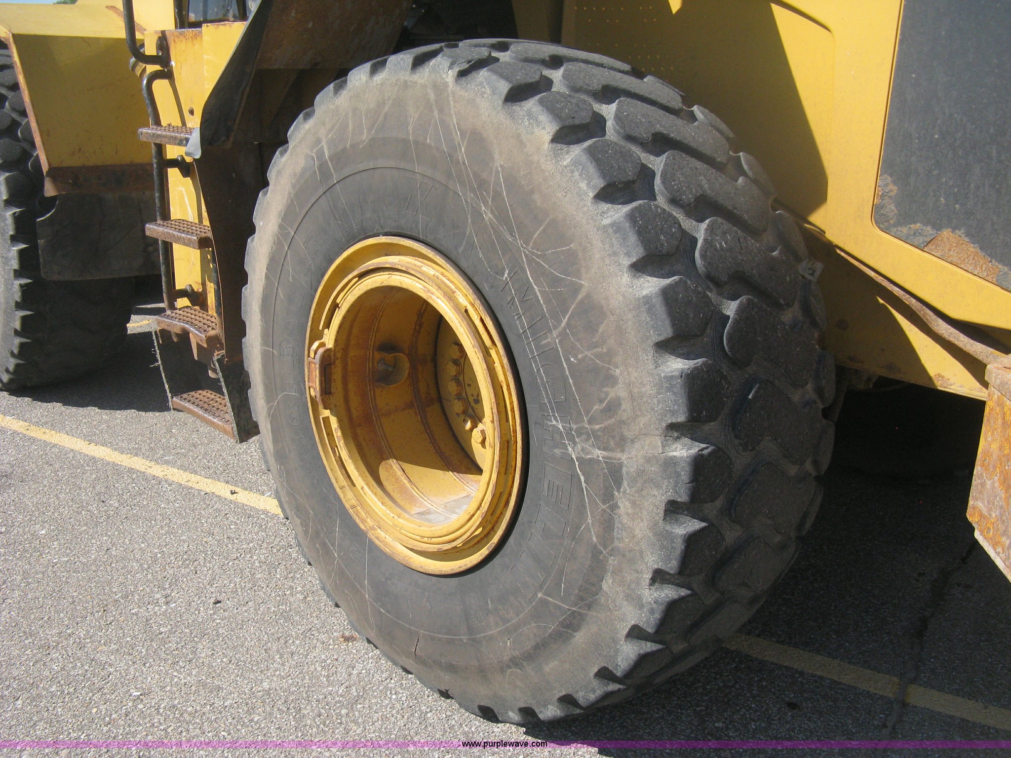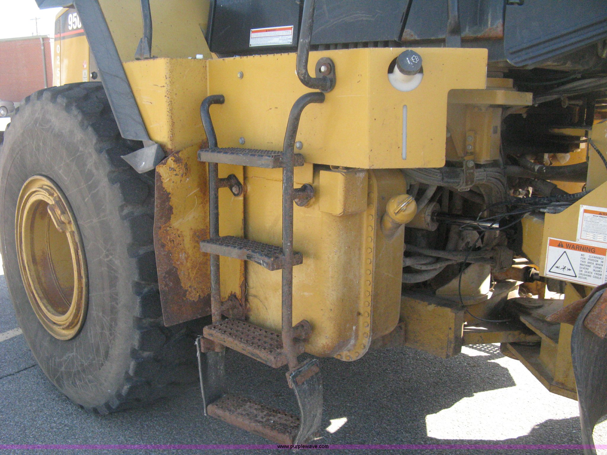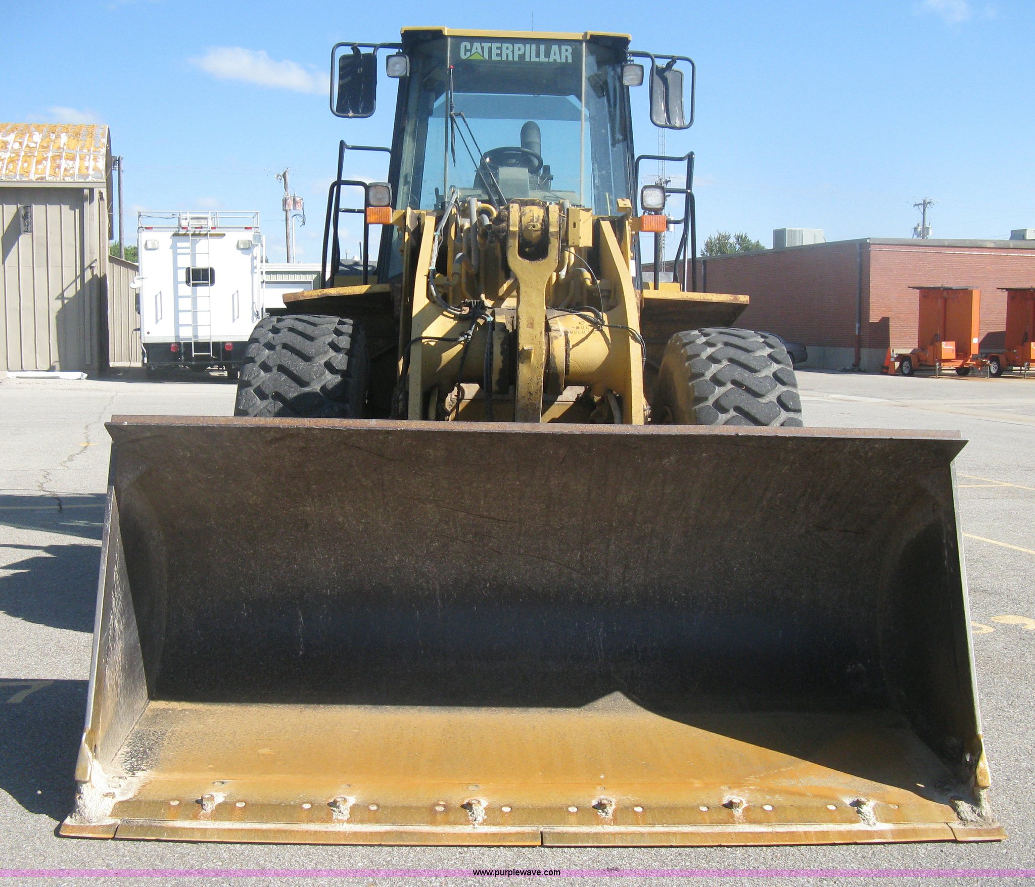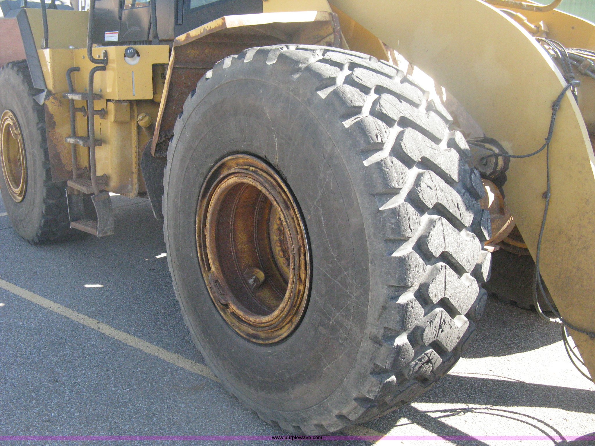 Purple Wave is selling a used Wheel Loader in Kansas. This item is a 1999 Caterpillar 950G wheel loader with the following: 7,840 hours on meter, Caterpillar six cylinder diesel engine, Model 3126DITA, Serial 6JK63077, Four speed powershift transmission, Serial 2SY01766, Enclosed cab, AC and heat, Tilt steering, Non-operational radio, Suspension seat, Joystick loader control with kick down button, Auxiliary hydraulics, Caterpillar quick coupler, Serial 3WL48639, 114"W bucket, Bolt-on edge, Automatic greasing unit, Michelin 23.5R25 tires, 39,200 lbs. base operating weight, Rust, Power lift engine hood inoperable, One owner, Serial 5FW00809, Unit# 0255