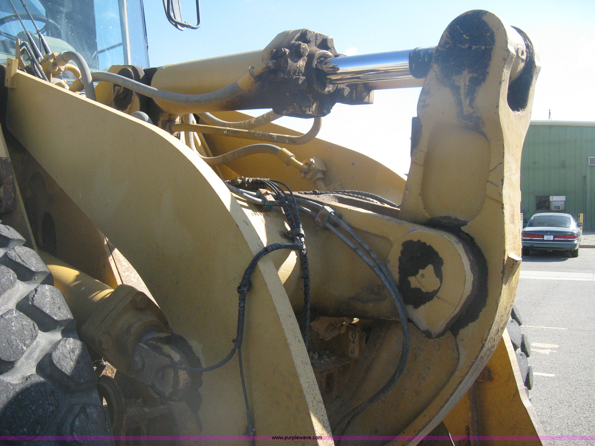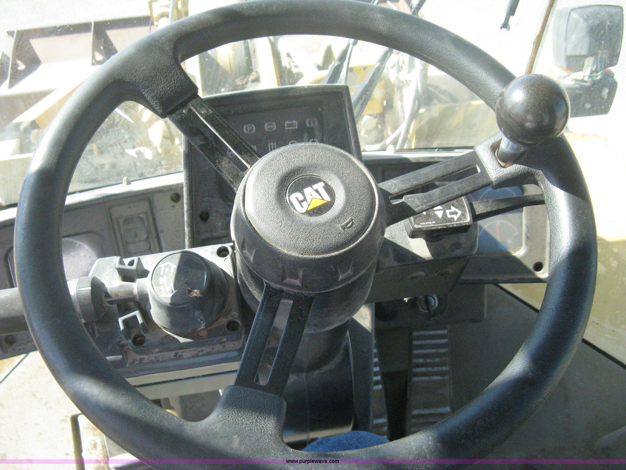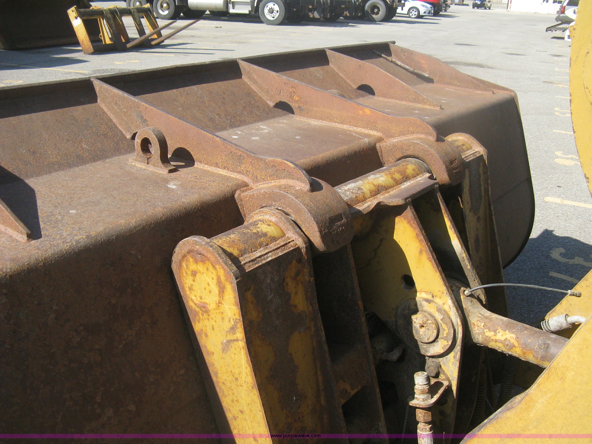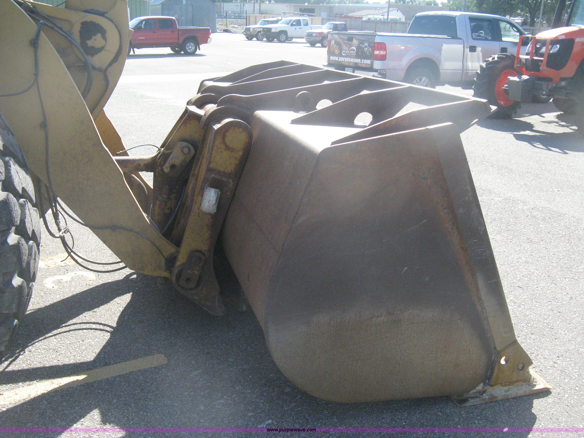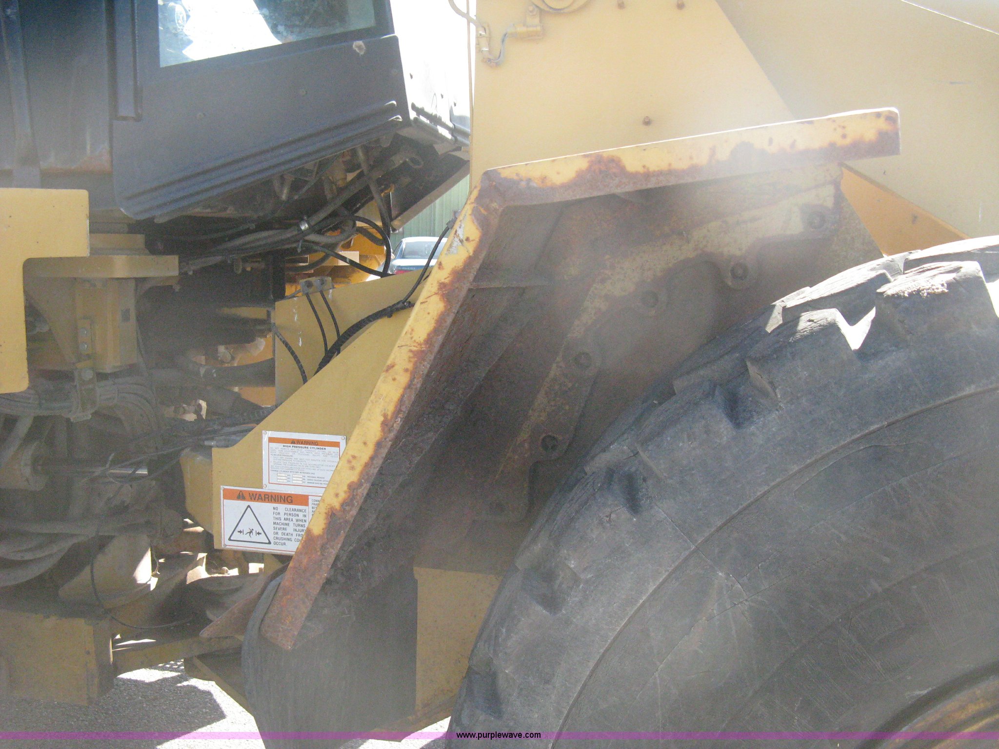 Purple Wave is selling a used Wheel Loader in Kansas. This item is a 1999 Caterpillar 950G wheel loader with the following: 7,840 hours on meter, Caterpillar six cylinder diesel engine, Model 3126DITA, Serial 6JK63077, Four speed powershift transmission, Serial 2SY01766, Enclosed cab, AC and heat, Tilt steering, Non-operational radio, Suspension seat, Joystick loader control with kick down button, Auxiliary hydraulics, Caterpillar quick coupler, Serial 3WL48639, 114"W bucket, Bolt-on edge, Automatic greasing unit, Michelin 23.5R25 tires, 39,200 lbs. base operating weight, Rust, Power lift engine hood inoperable, One owner, Serial 5FW00809, Unit# 0255