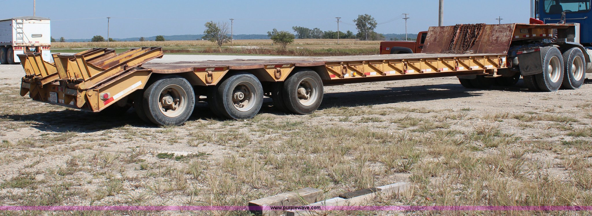 Purple Wave is selling a used Equip. Trailer in Kansas. This item is a 1996 Holder HLB43340 triple axle trailer with the following: 29'L x 102"W deck, 2'L tail, 4'L x 3'W ramps, 10'L neck, 42' overall length, Spring suspension, Air brakes, 215/75R17.5 tires, GVWR 94,500 lbs, Chain is not included