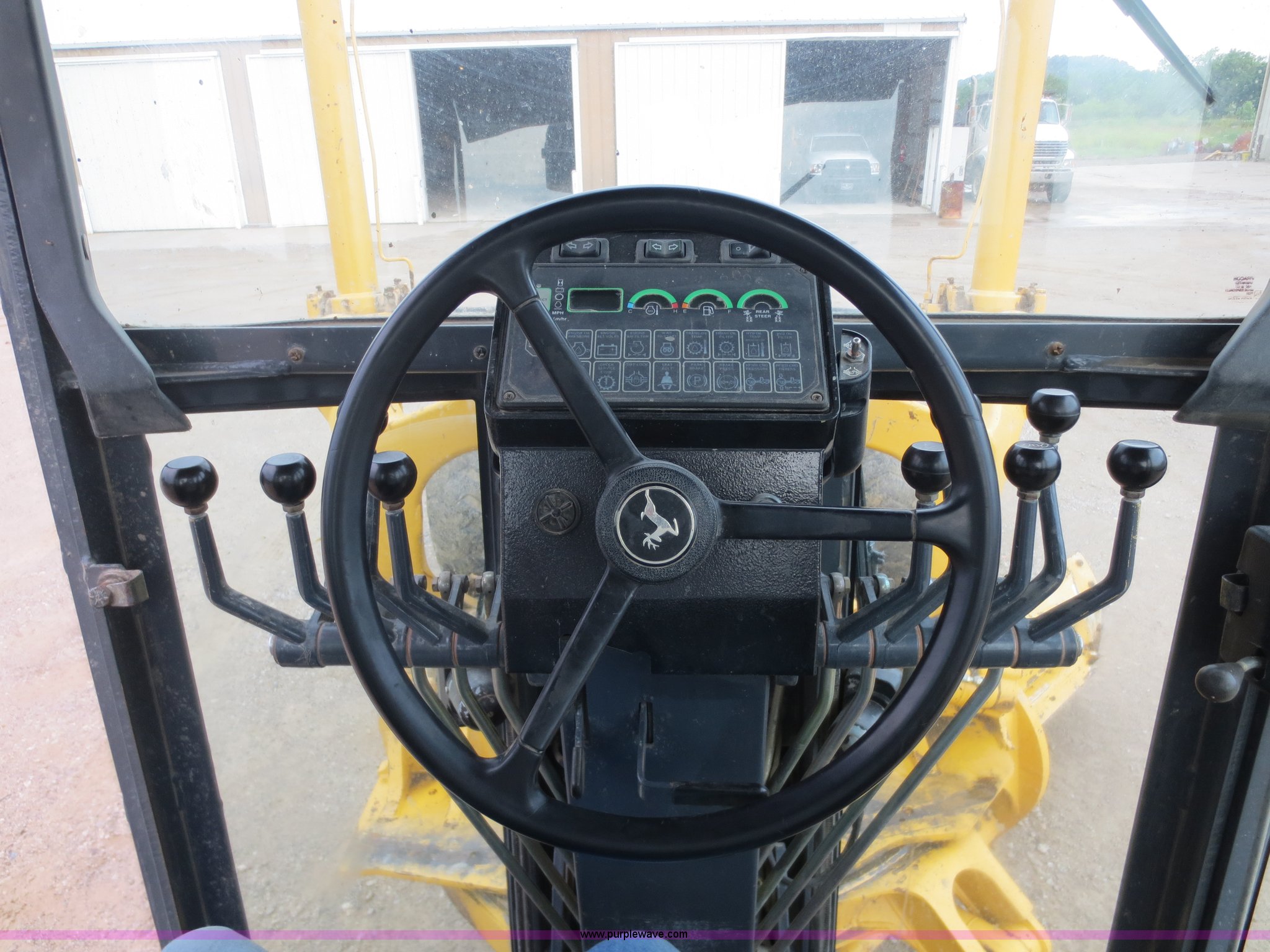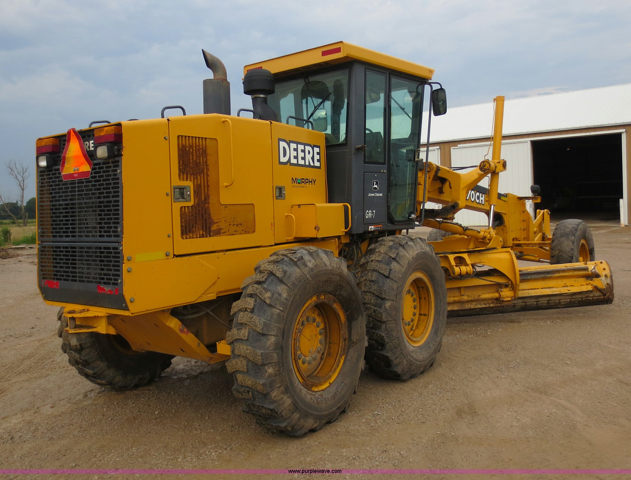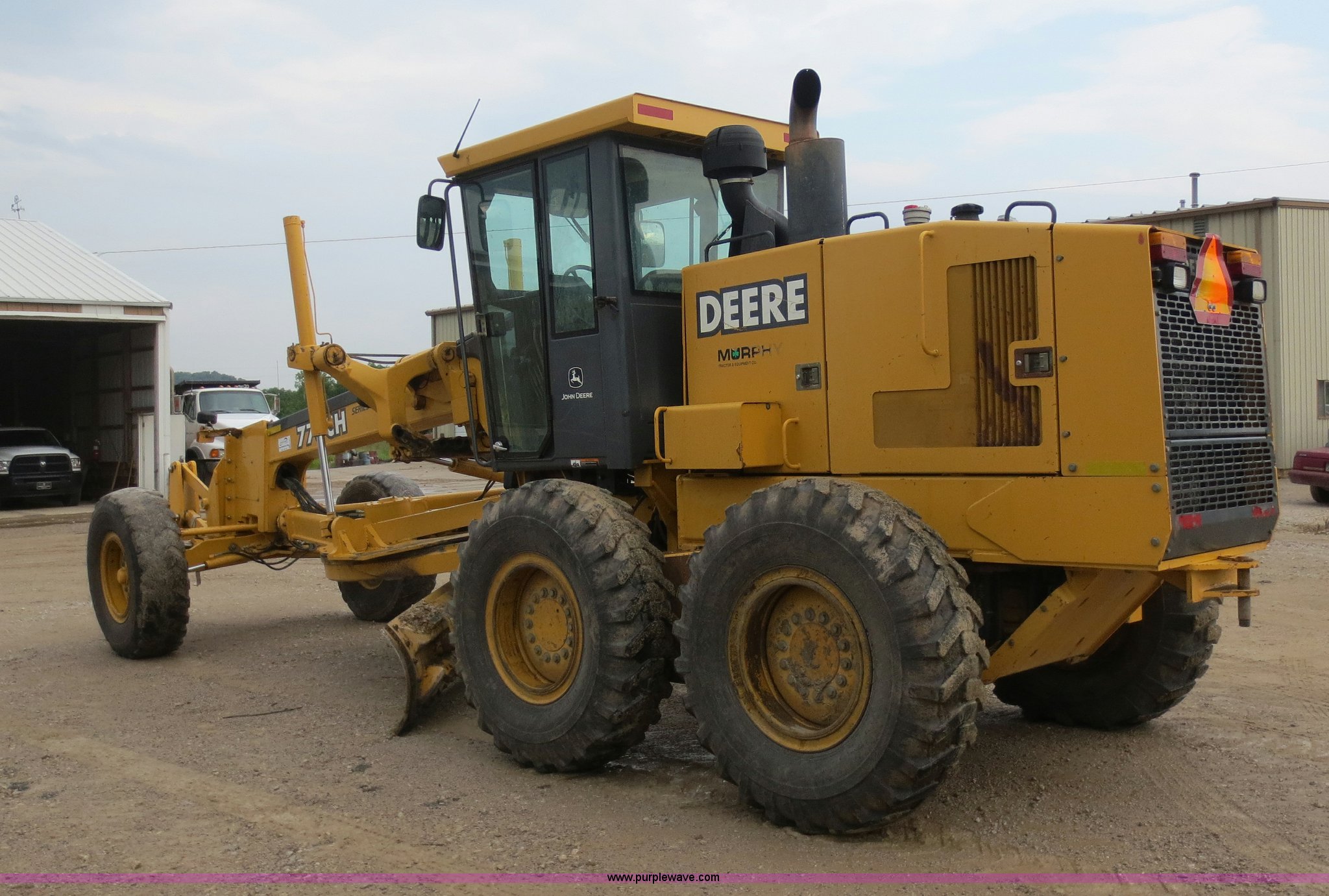 Purple Wave is selling a used Motor Grader in Kansas. This item is a 2002 John Deere 770CH Series II motor grader with the following: 11,650 hours on meter, John Deere six cylinder diesel engine, Serial RG6081H153728, Powershift transmission, 8F-8R gears, Differential lock, AC and heat, AM/FM radio, Air ride seat, EROPS, Front work lights, Articulated frame, 14' moldboard with tip control and side shift, Front scarifier, 14.00R24 tires, Part and operators manuals included, Parking brake does not work properly, Engine has minor blow by, Serial DW770CH584156