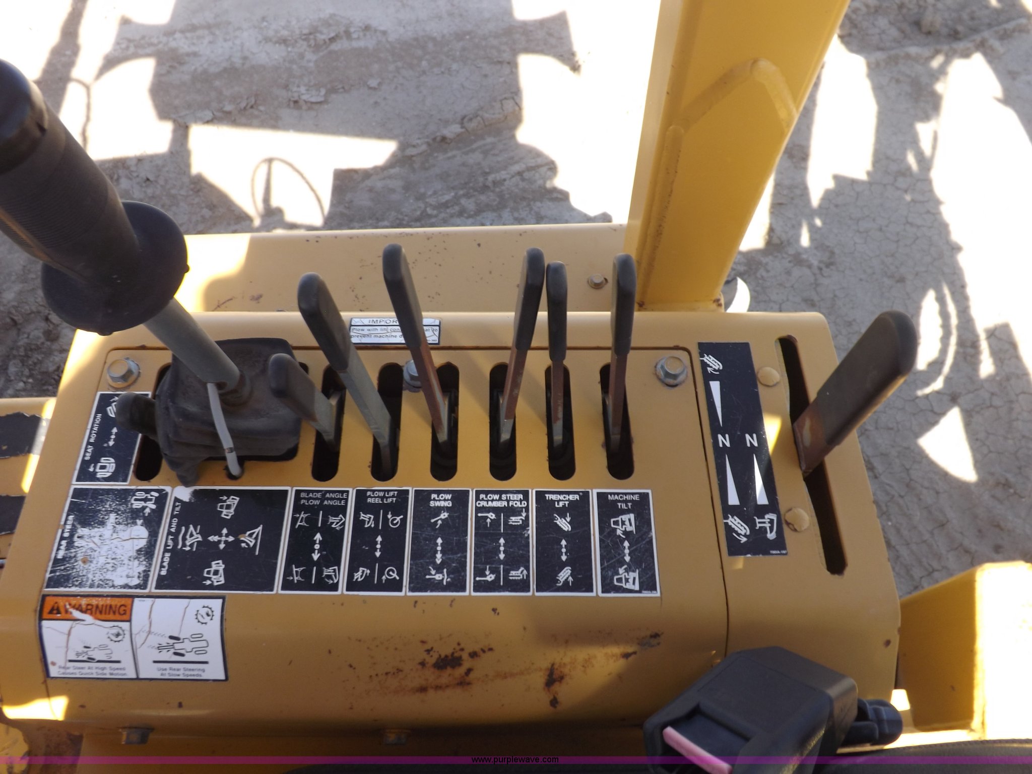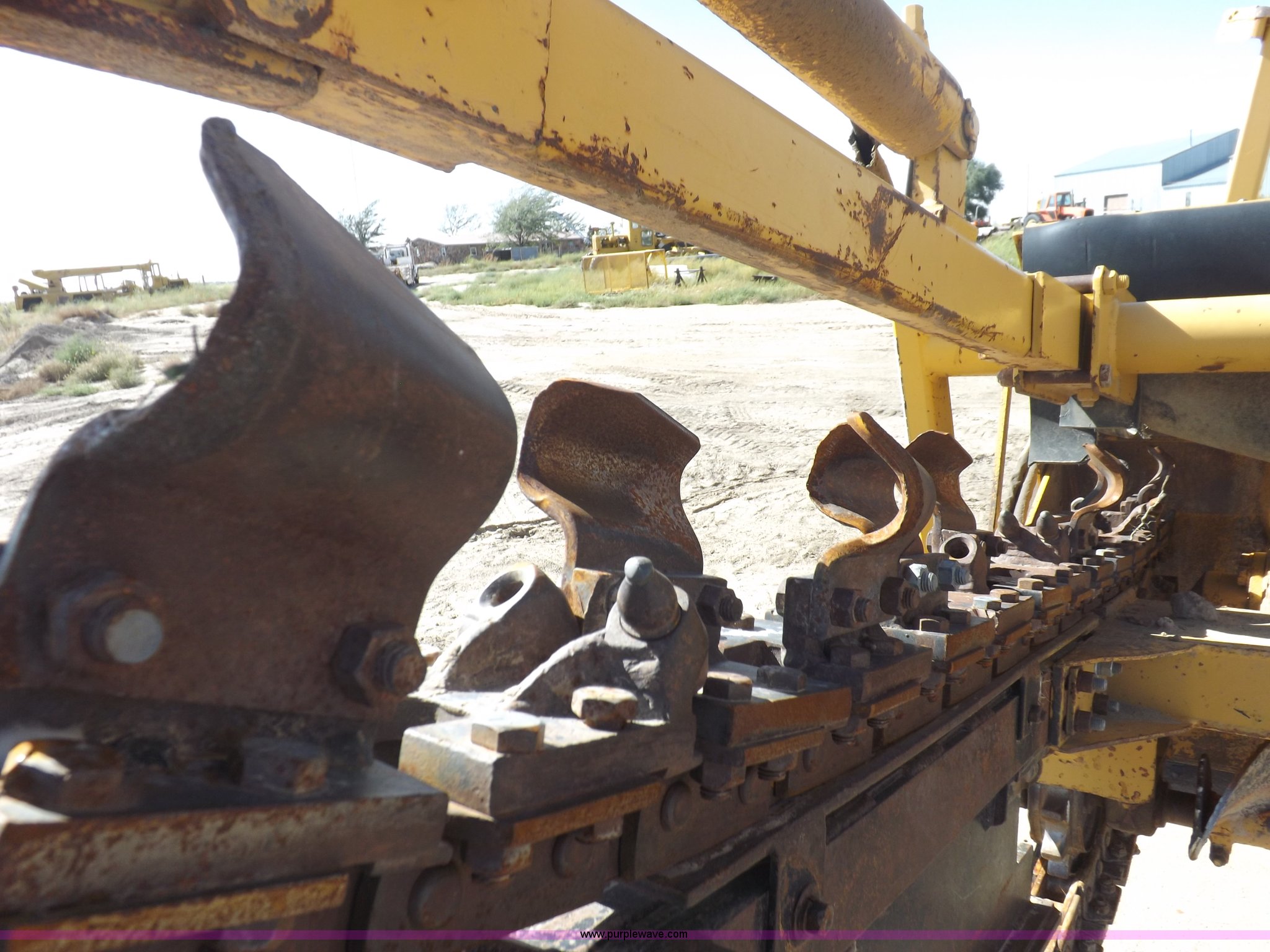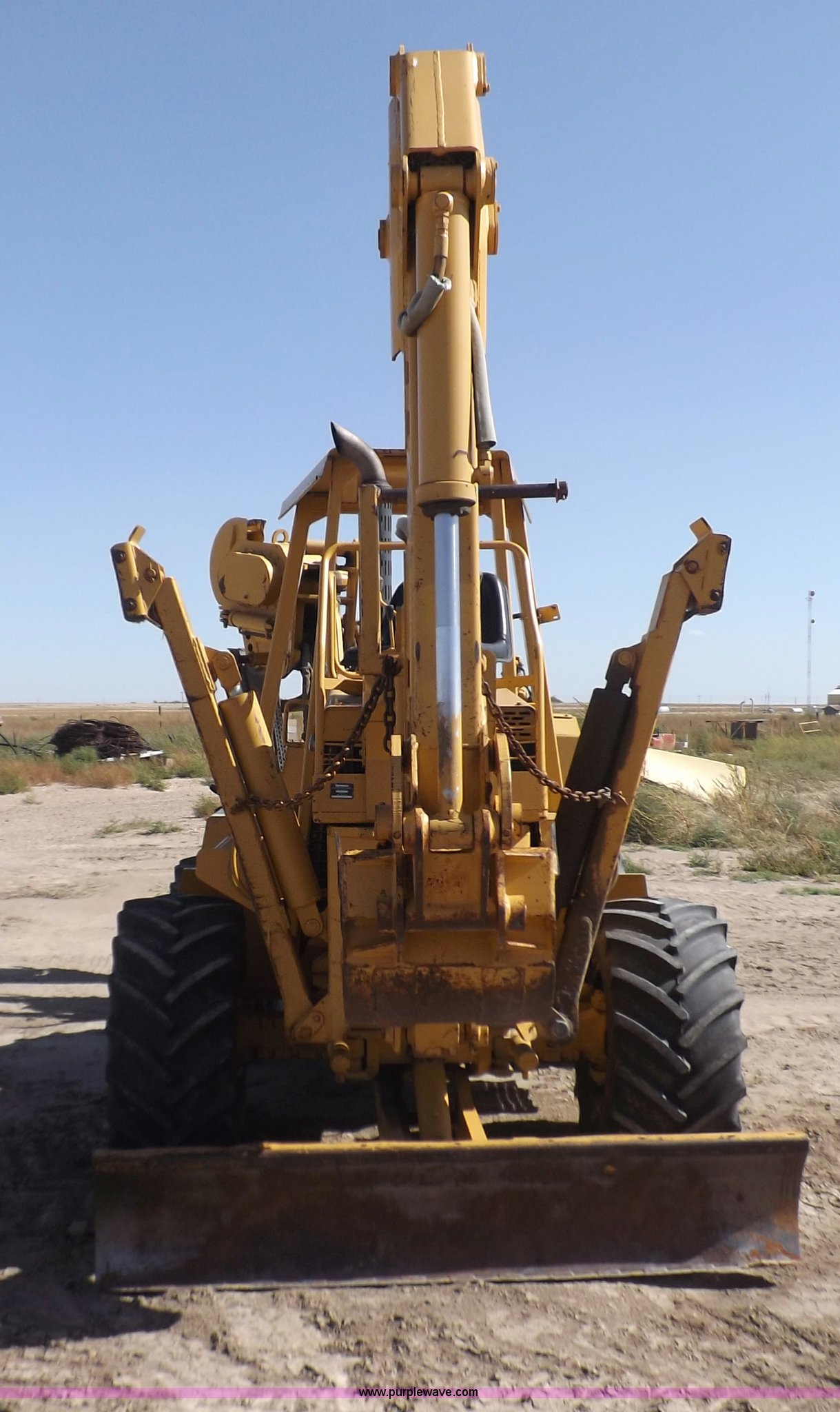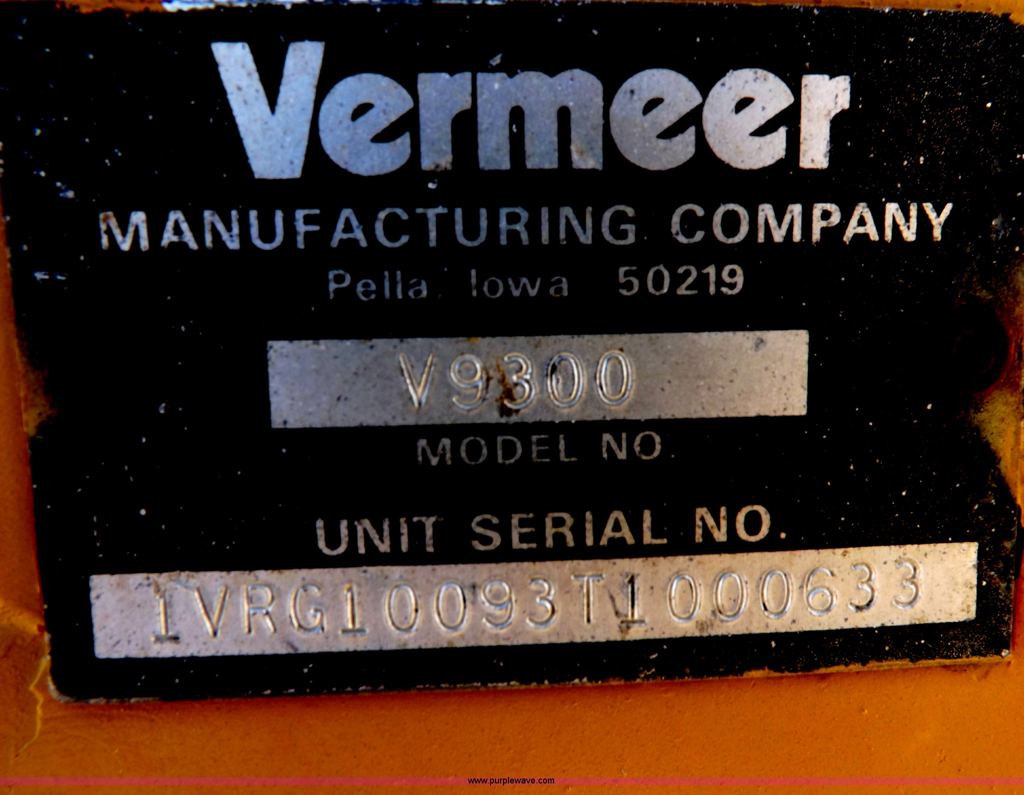 Purple Wave is selling a used Trencher or Rock Saw in Kansas. This item is a 1997 Vermeer V8550 trencher with the following: 1,524 hours on meter, Four cylinder turbo diesel engine, V9300 backhoe attachment, Two stick controls, 18" bucket, Serial 1VRG10093T1000633, V8000 six-way back fill blade, 80"W, Weld-on edge, Serial VP503057V1001482, 5' x 8" trencher, Cupped and carbide teeth, Hydraulic drive, Hydraulic crumb shoe, Spoil auger, Plow shank, 3' to shoe, Overhead product feed shoe, Trace wire roll carrier, 38 x 8.00-20 tires, Serial 1VRK11247V1000753