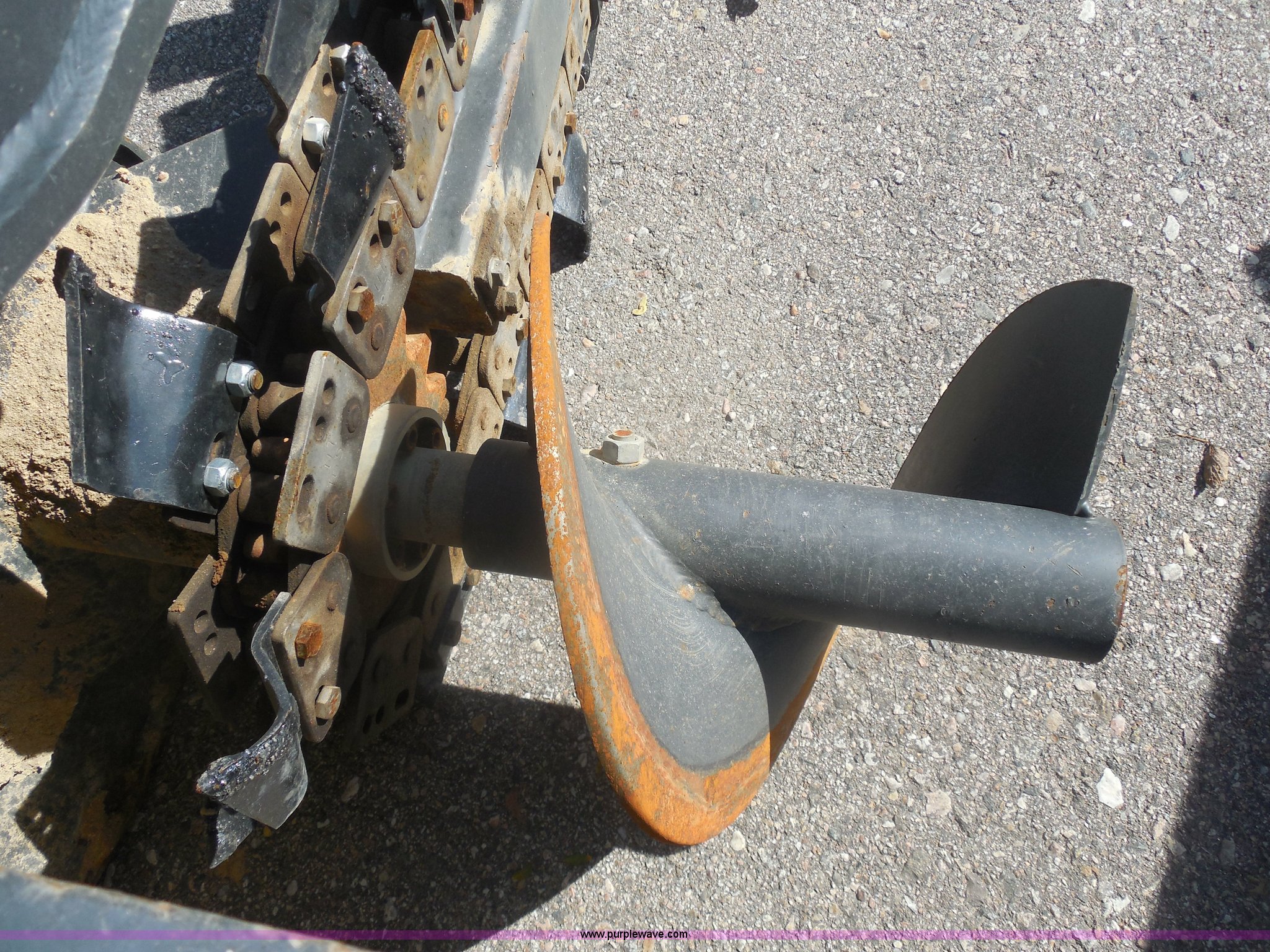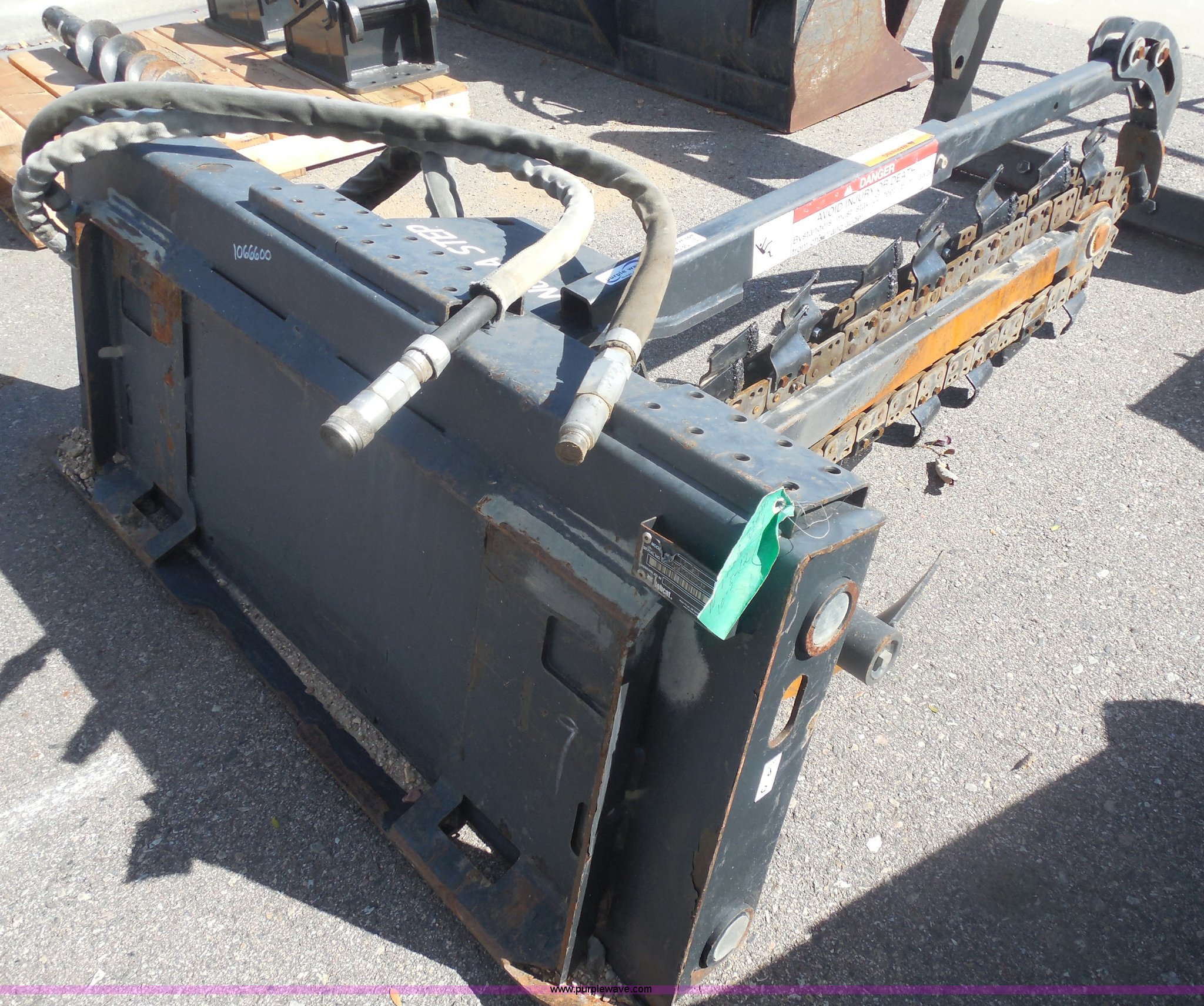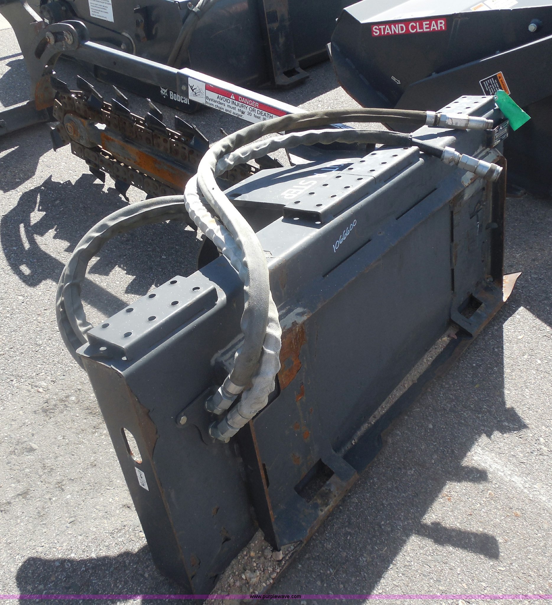 Purple Wave is selling a used Skid Steer Attach. in Colorado. This item is a 2007 Bobcat LT213 trencher attachment with the following: Universal skid steer attachment, 4' blade, Hydraulic hookups, 2" double standard chain, 12" removable auger, 59" boom, Serial 045301059, EIN 1066600