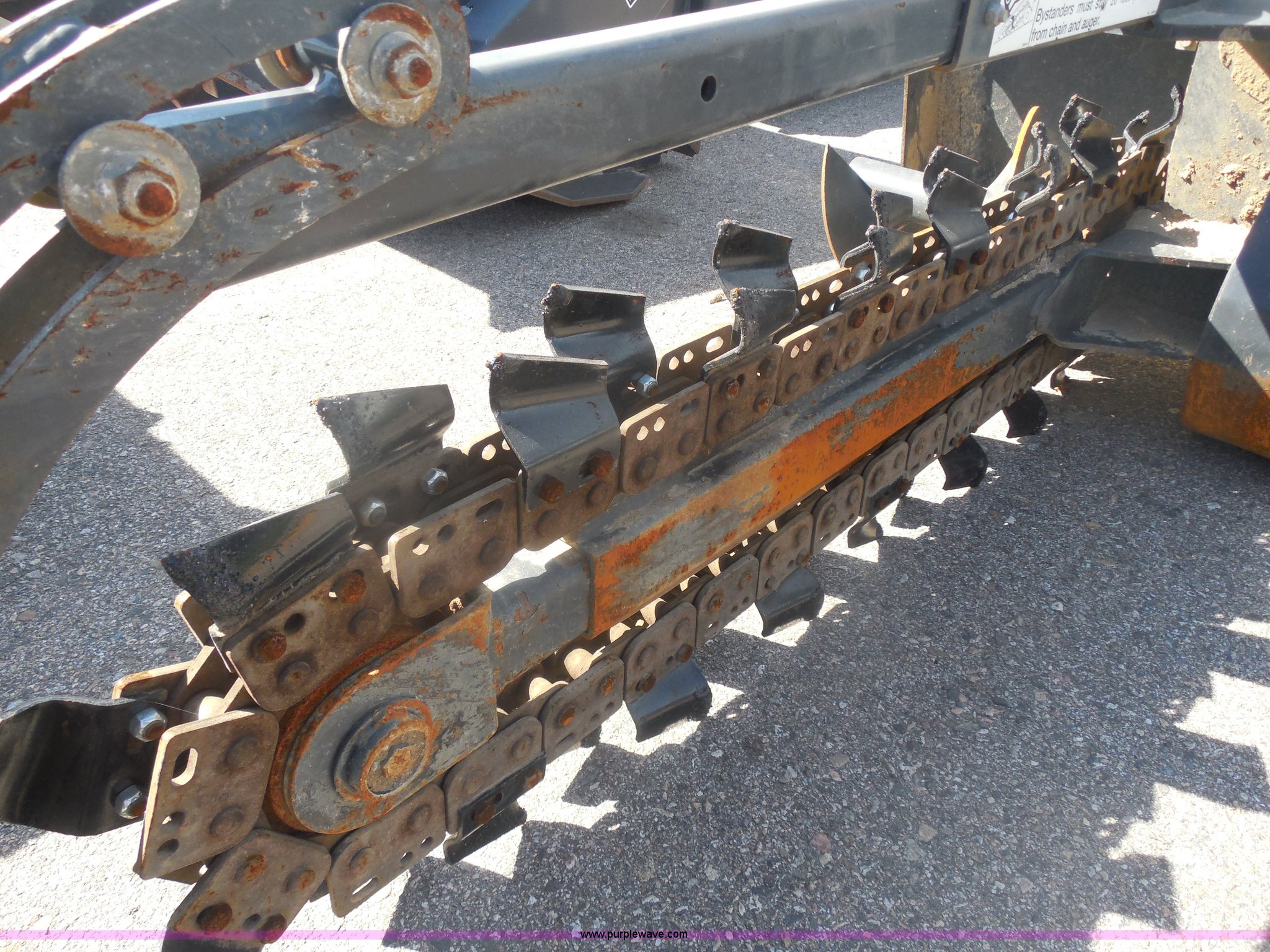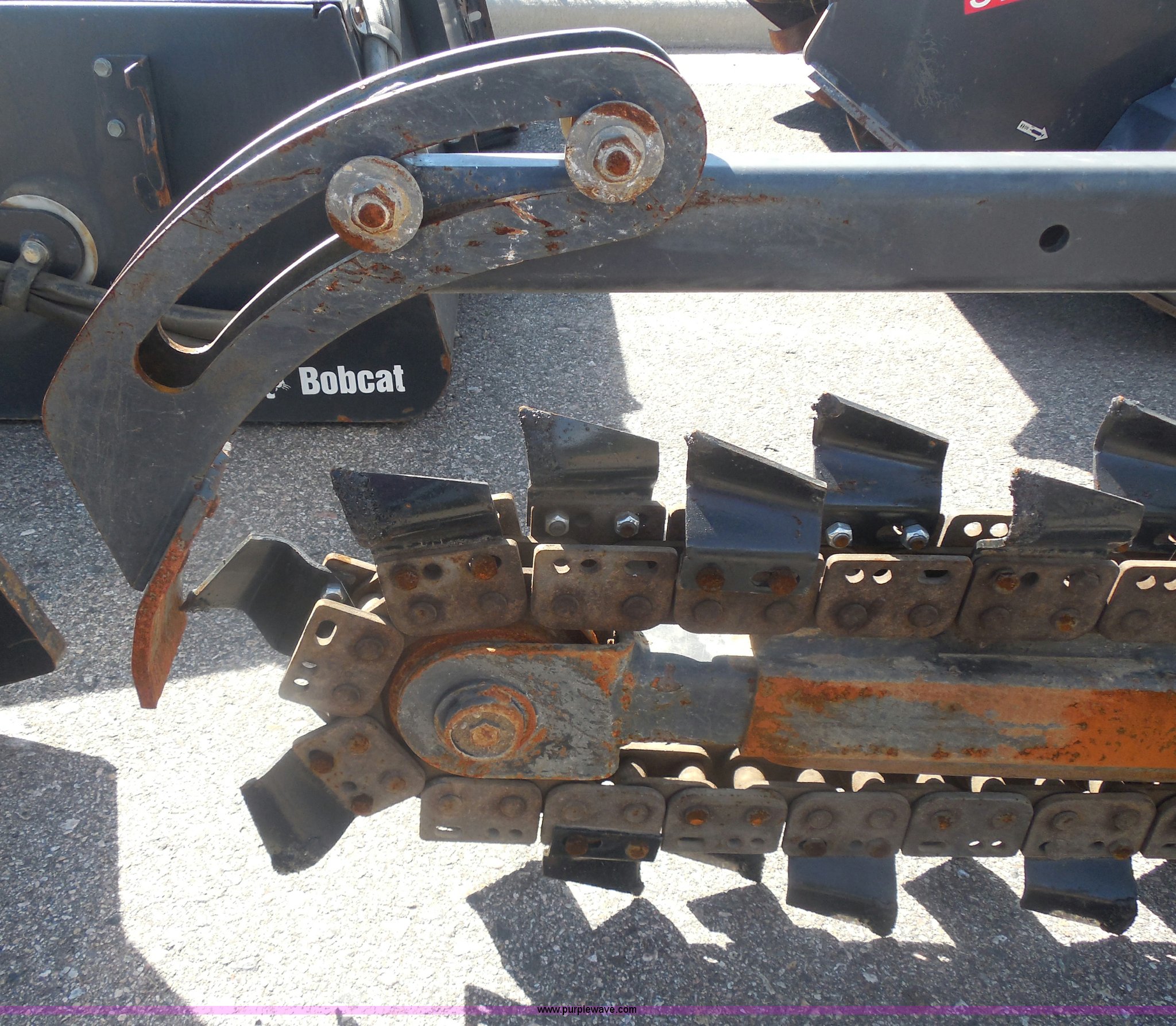 2007 Bobcat LT213 trencher attachment. Universal skid steer attachment, 4' blade, Hydraulic hookups, 2" double standard chain, 12" removable auger, 59" boom, Serial 045301059, EIN 1066600. Bobcat of the Rockies. 1015 Champion Dr. Windsor, CO 80550
