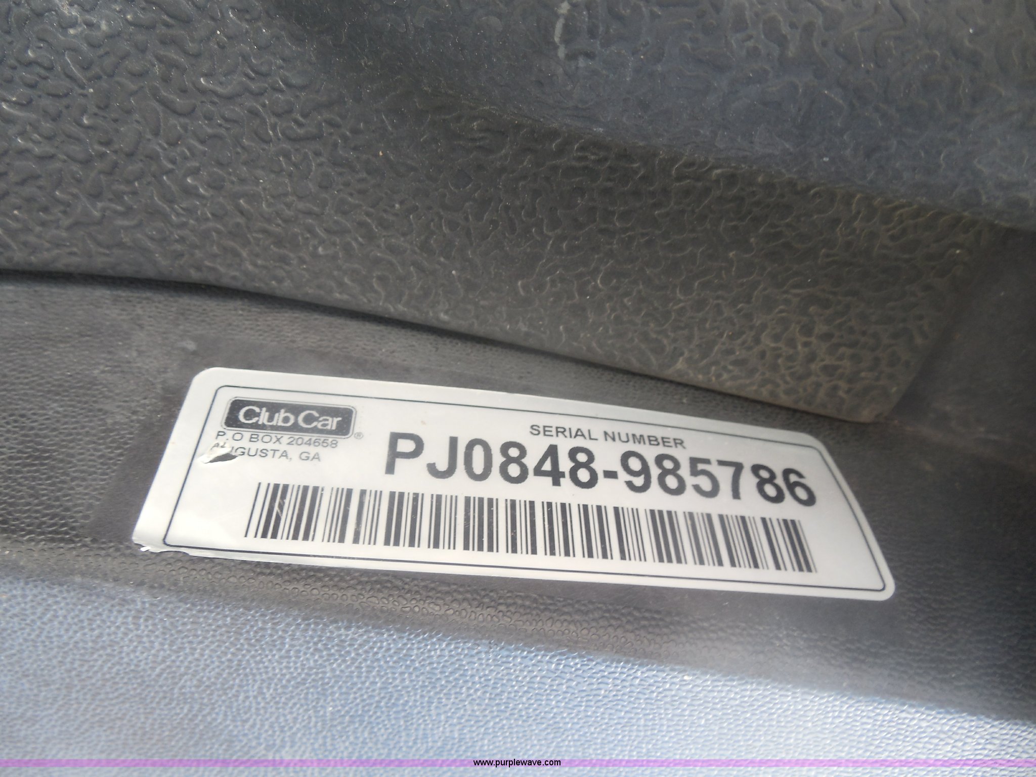 Purple Wave is selling a used Sporting Goods in Colorado. This item is a 2008 Club Car golf cart with the following: Electric motor, Folding back seat, 18x8.50-8 tires, Cosmetic damage to seat, Serial PJ0848-985786, EIN 1400710