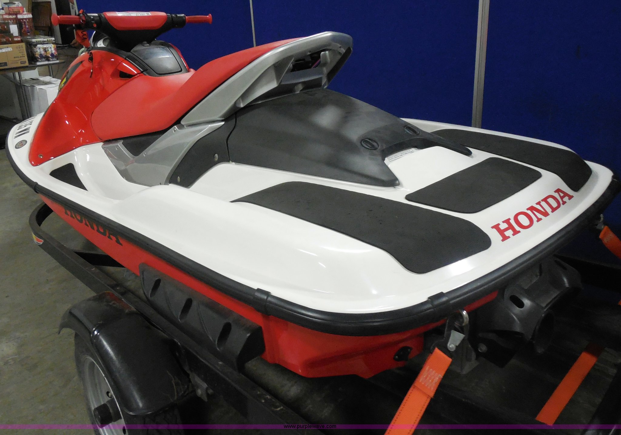 Purple Wave is selling a used Boat in Kansas. This item is a Honda Aquatrax R-12X personal watercraft with the following: Unknown hours on meter, Honda Turbo four stroke gas engine, 1,235cc gas engine, 5 gallon fuel tank, Cover included, Hull ID KA135WN, 10'L, 2" ball hitch, Winch, 5.30-12 tires, Engine will turn over, Unknown running condition