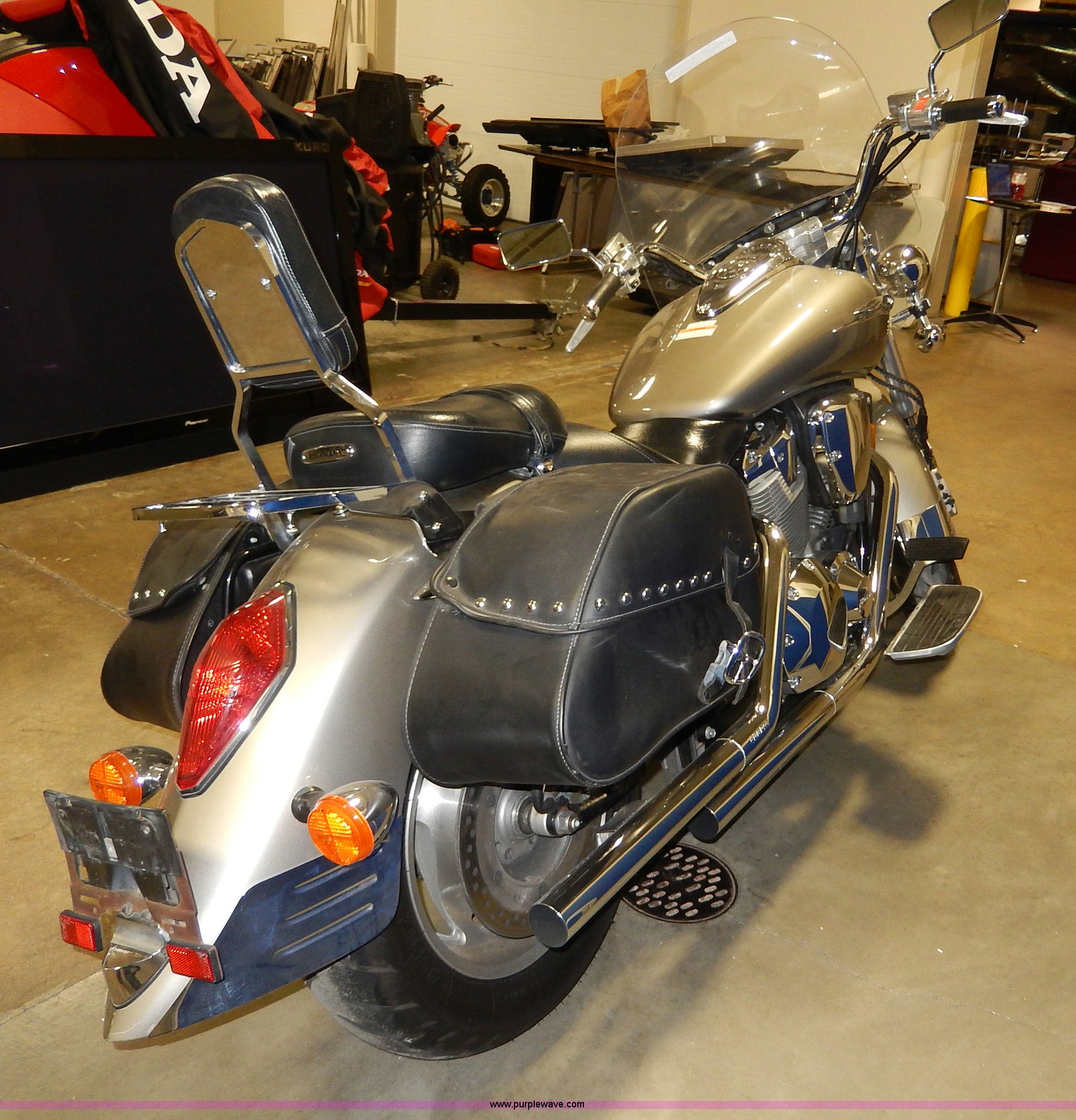 Purple Wave is selling a used Motorcycle in Kansas. This item is a 2003 Honda VTX1800R motorcycle with the following: 18,944 miles on odometer, 1,795cc gas engine, Manual transmission, Windshield, Front and rear rider pegs, Passenger backrest, Saddle bags, Cobra tailpipes, Disc brakes, 150/80R17 front tires, 180/70R16 rear tires, Ignition and gas key, Unknown running condition