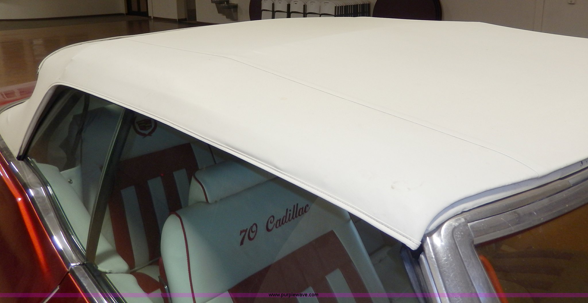 Purple Wave is selling a used Passenger Vehicle in Kansas. This item is a 1970 Cadillac convertible with the following: 44,165 miles on odometer, Gas engine, Automatic transmission, Heat, Tilt, Cruise, AM/FM/CD, Face plate missing, Power windows, locks, and seats, Vinyl interior, Metallic flek paint, Custom interior, Hood opens from front, Hood ornament, 235/55R17 tires, Front tires flat, Dead battery, Driver visor missing