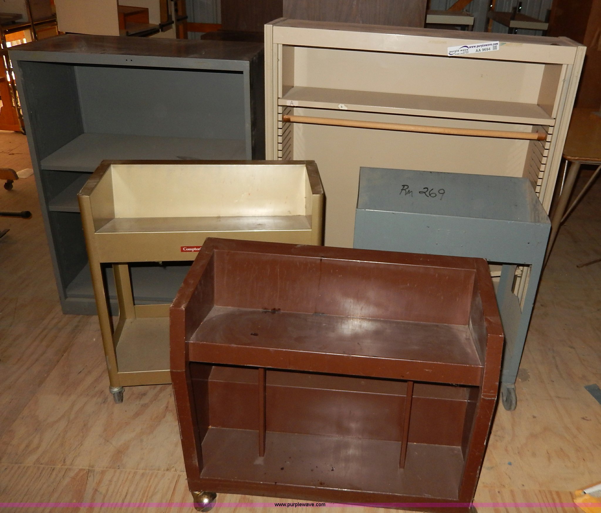 Purple Wave is selling a used Office Supplies and Equip. in Kansas. This item is a (5) assorted metal rolling carts with the following: (5) assorted metal rolling carts. USD 364. Marysville, KS 66508