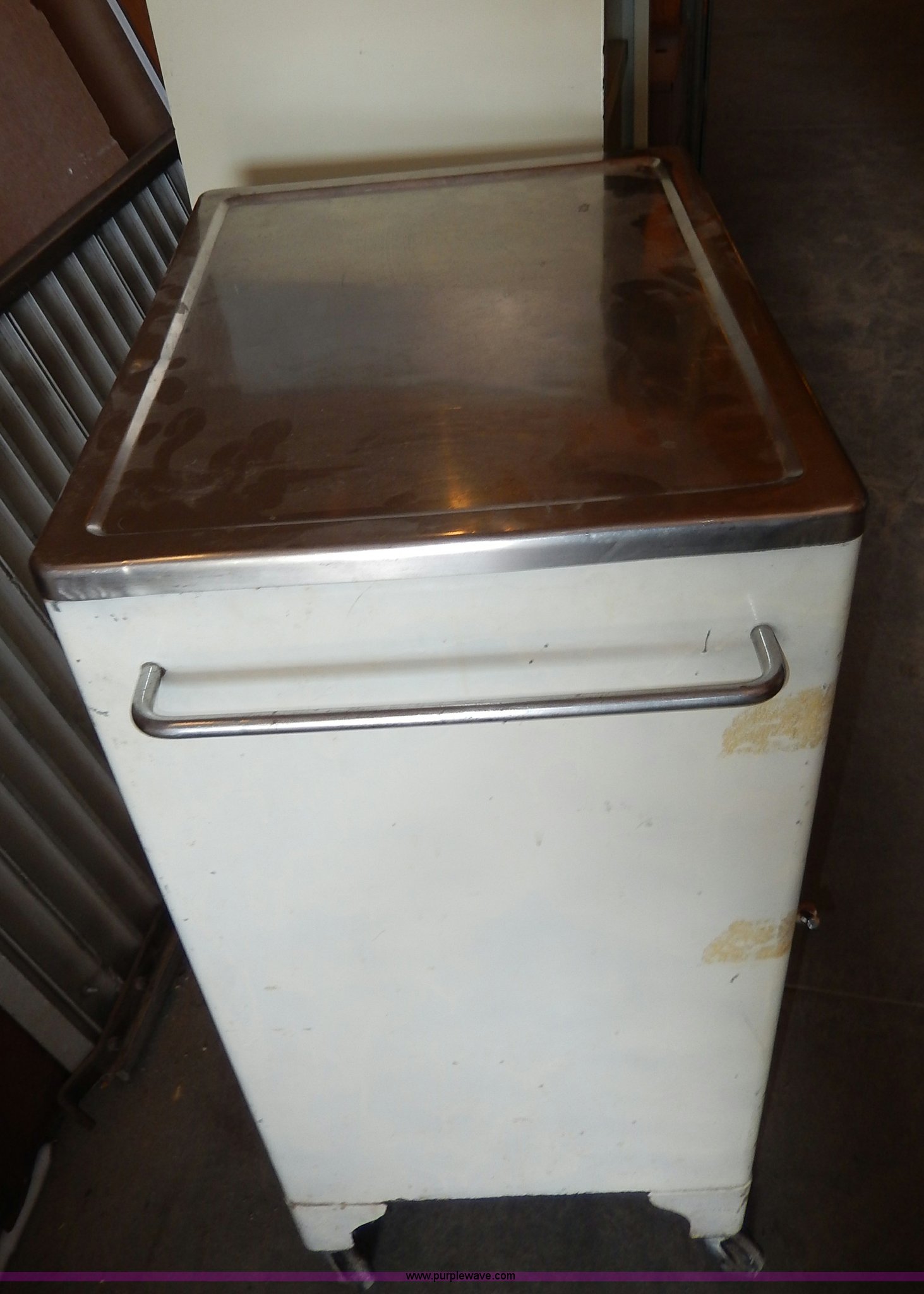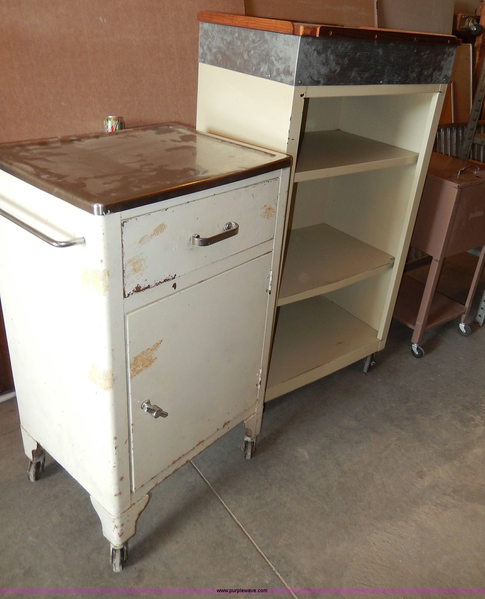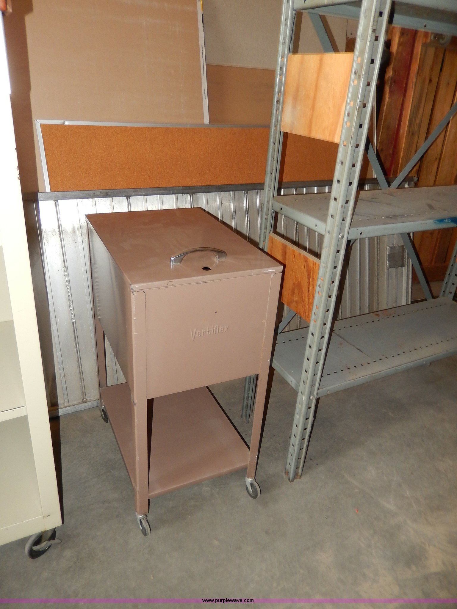 Purple Wave is selling a used Furniture in Kansas. This item is a Assorted furniture with the following: Metal shelving, Metal podium, Rolling cabinet, Metal rolling cabinet