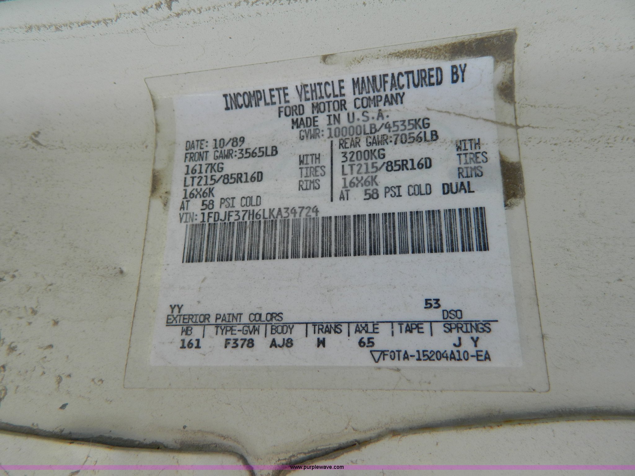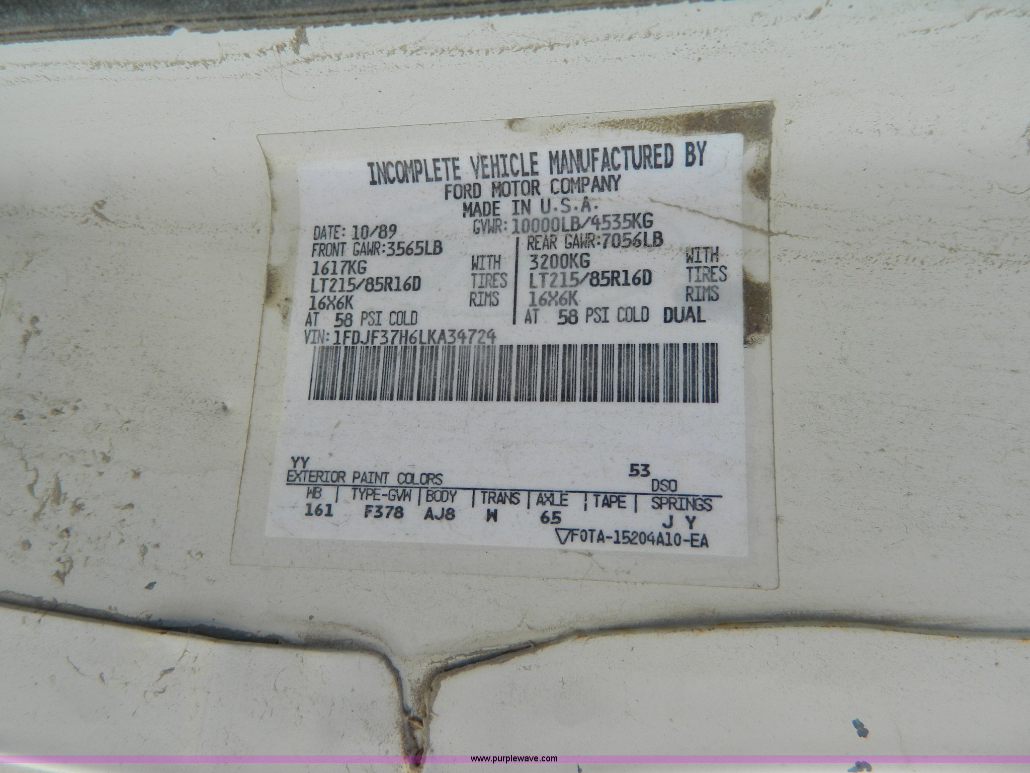 Purple Wave is selling a used Passenger Vehicle in Kansas. This item is a 1990 Ford F350 sign truck with the following: 225,676 miles on odometer, 5.8L V8 OHV 16V gas engine, Five speed manual transmission, AC and heat, Manual windows and locks, Tommylift end gate, LT225/75R16 front tires, LT215/85R16 rear tires, GVWR 10,000 lbs