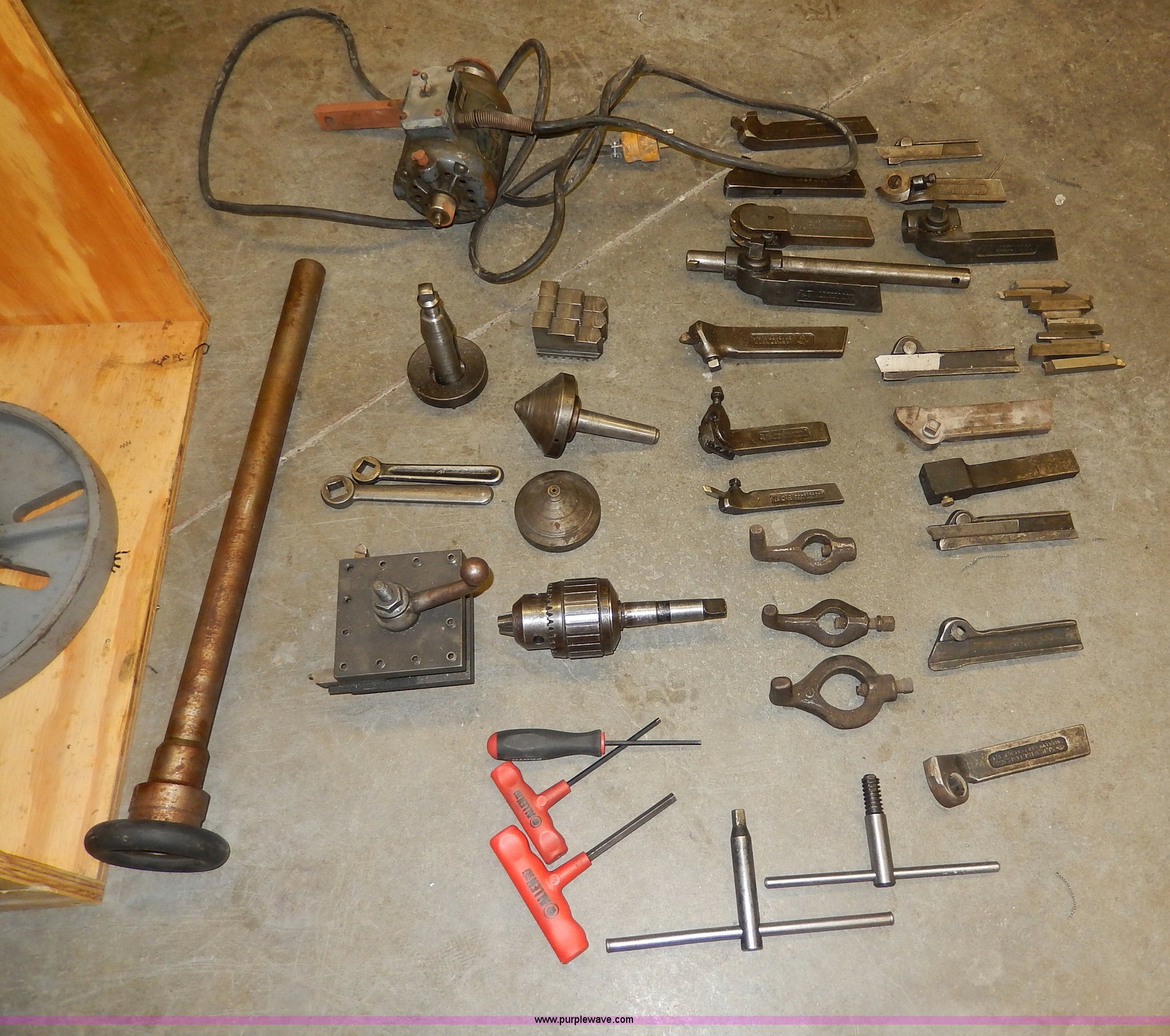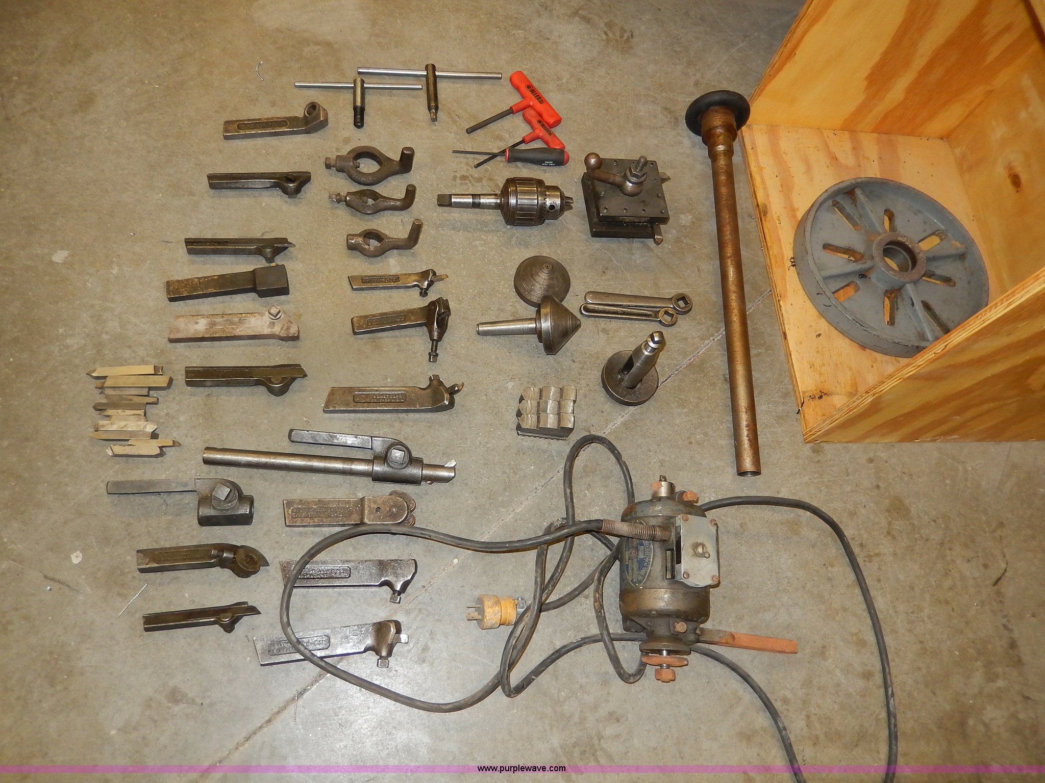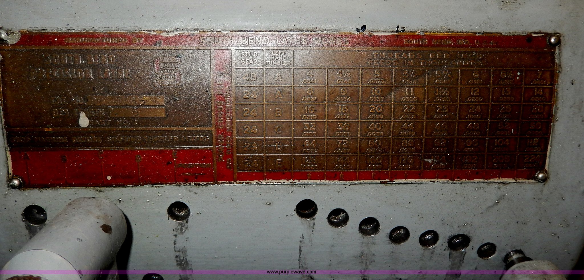 Purple Wave is selling a used Tools in Kansas. This item is a South Bend 14.5 metal lathe with the following: 2 HP motor, Three phase, 220/440V, 1 3/8" spindle board, New Bison three jaw chuck, Assorted tooling included, Steady rest, 13" face plate, Three and four jaw chucks included, Can be inspected under power