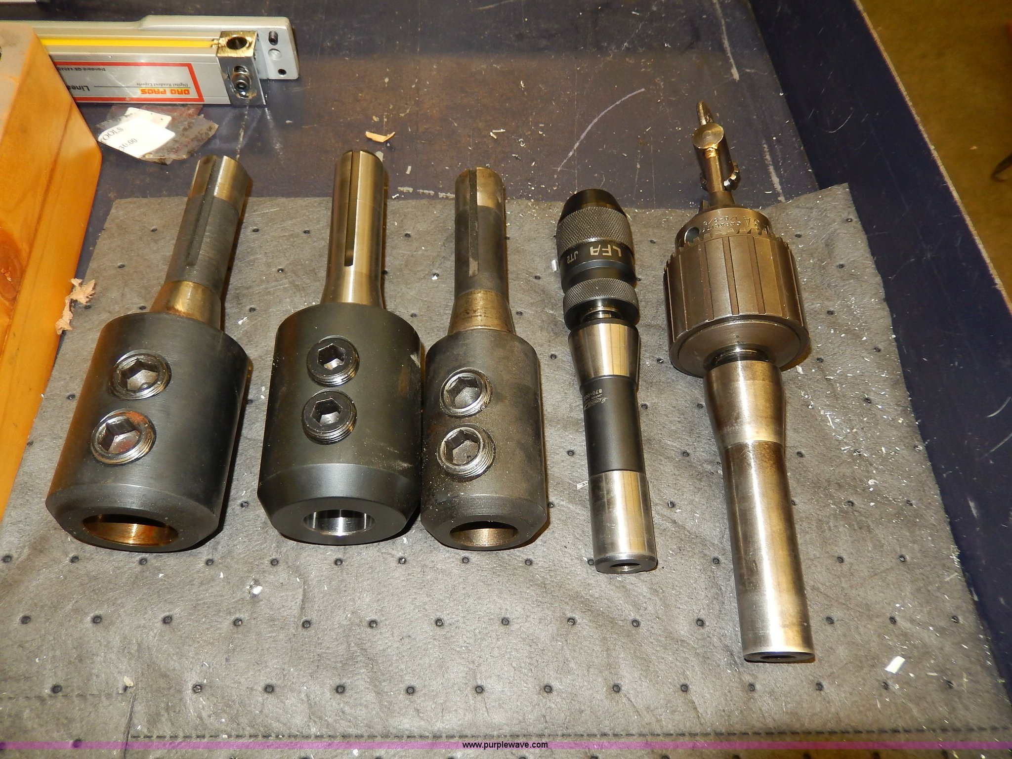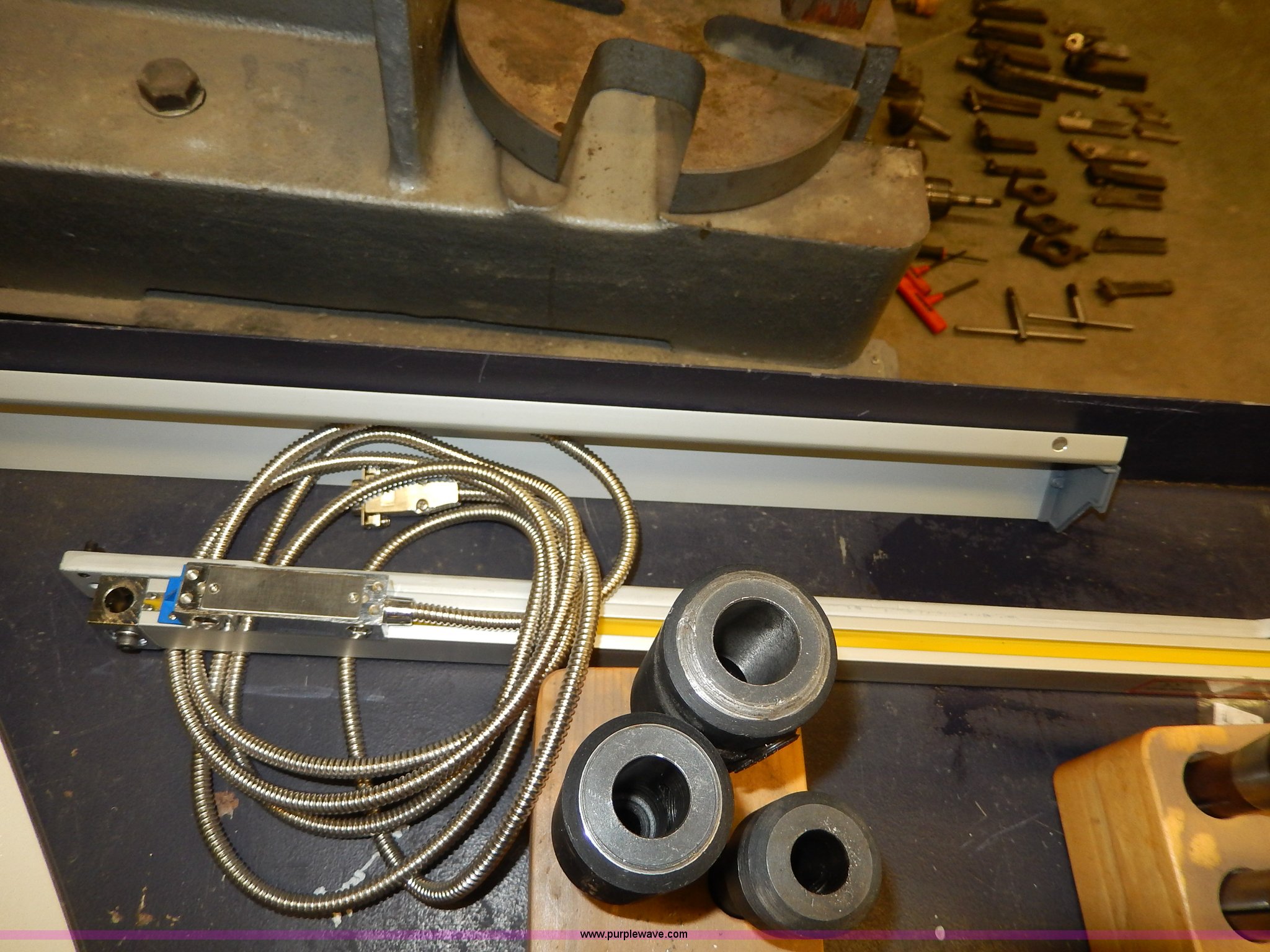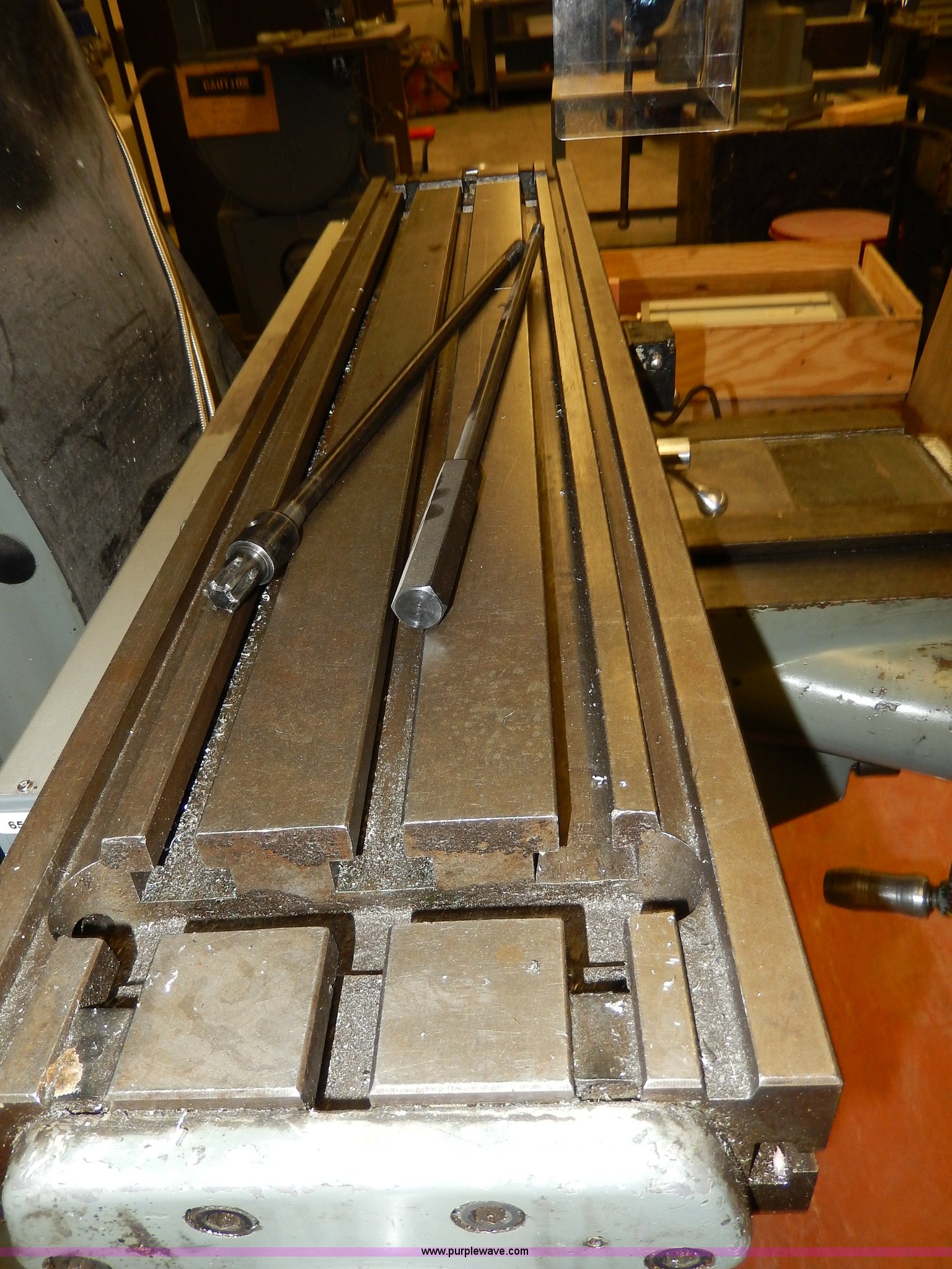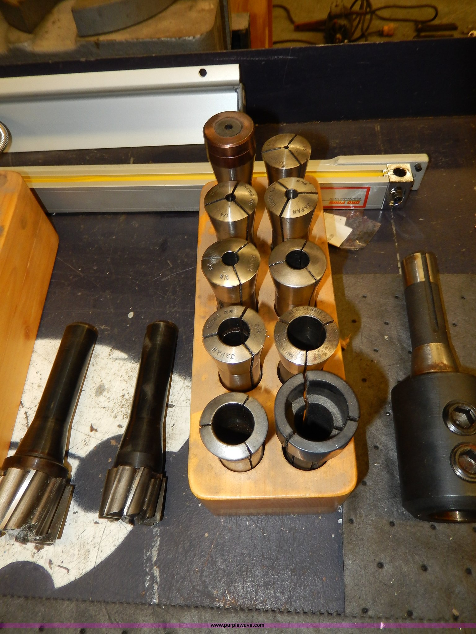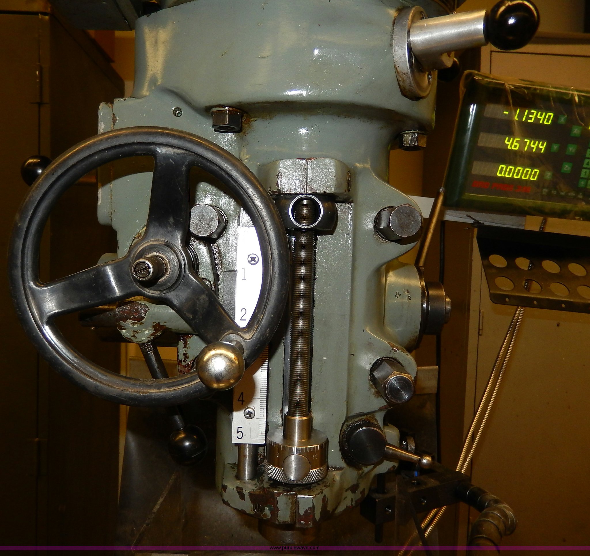 Purple Wave is selling a used Milling Machines in Kansas. This item is a 1977 Exacto 942B vertical turret milling machine with the following: Assorted spindle speeds, Hi and low, Serial 7761272, 42" x 9" work rail, (3) Axias Dro Prus monitor, R8 spindle taper, Loose spindle bearings, Assorted tools, Chuck, End mill holders, Collets, Vise, Swivel base, 12" rotary table, Glass digital scale, Can be inspected, will be powered until auction date, Serial 61272