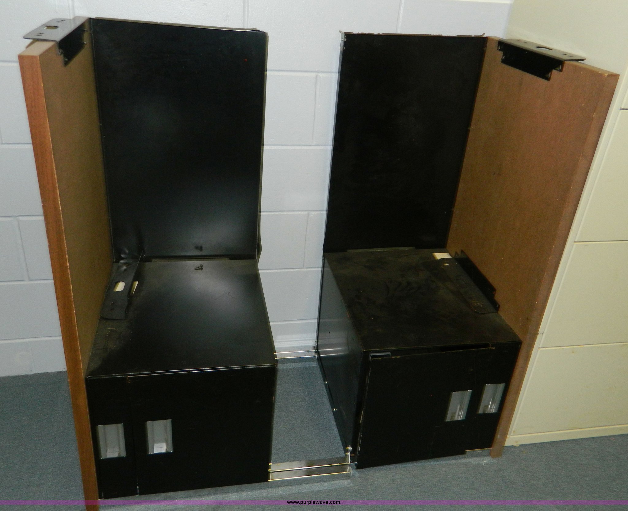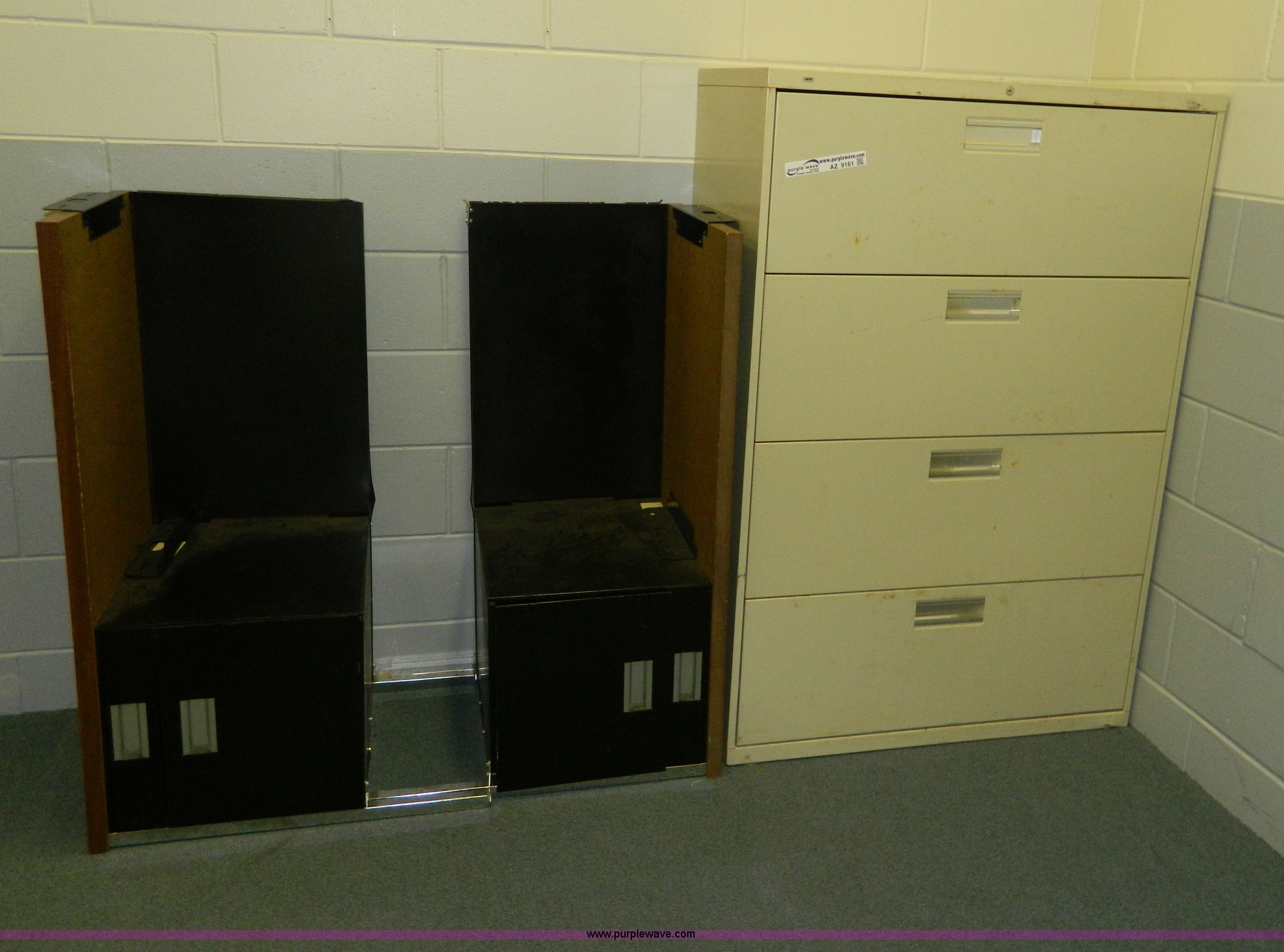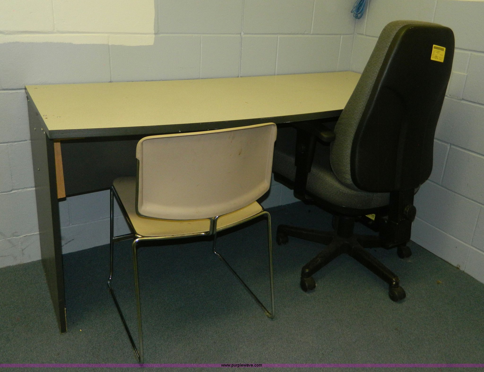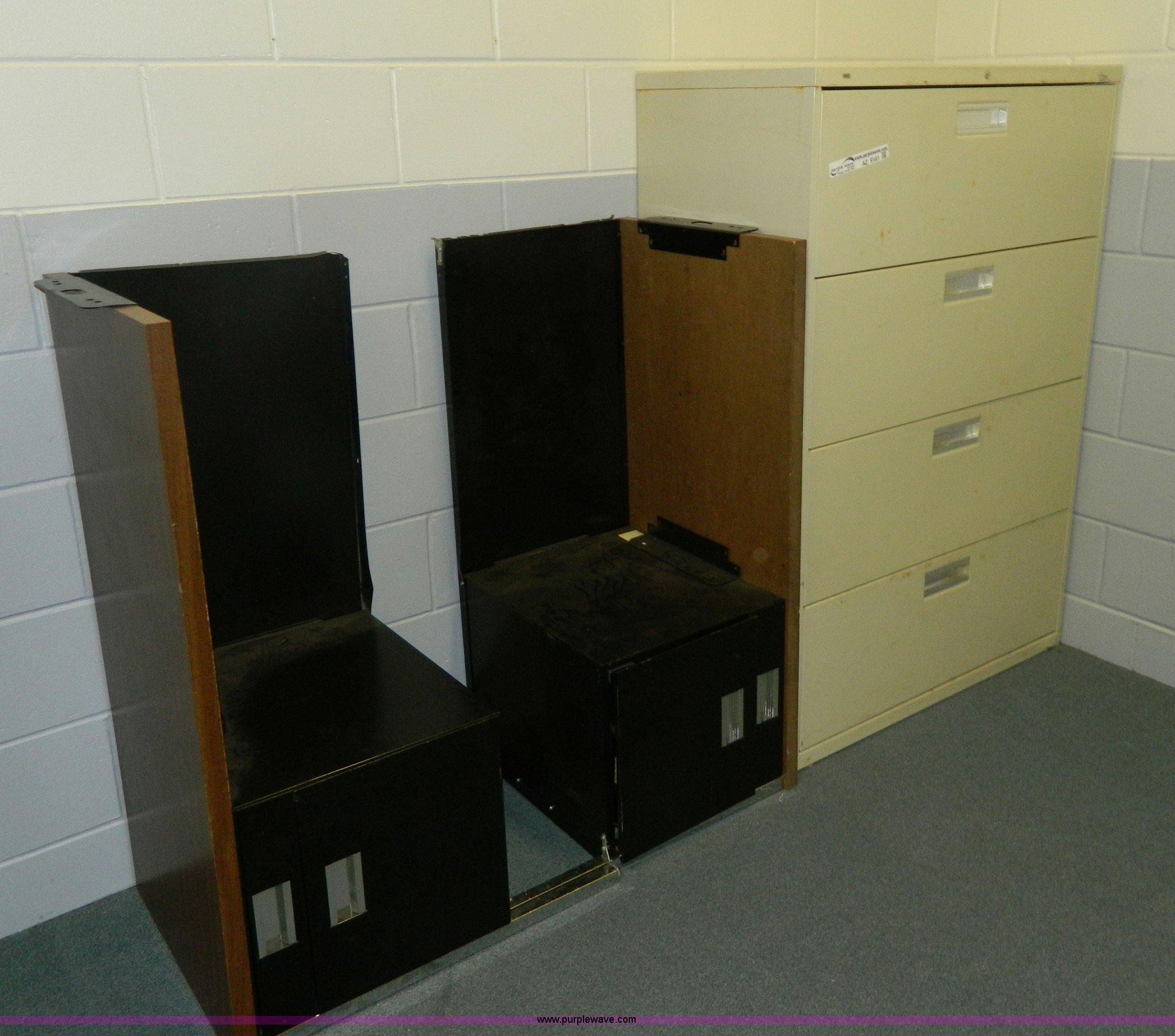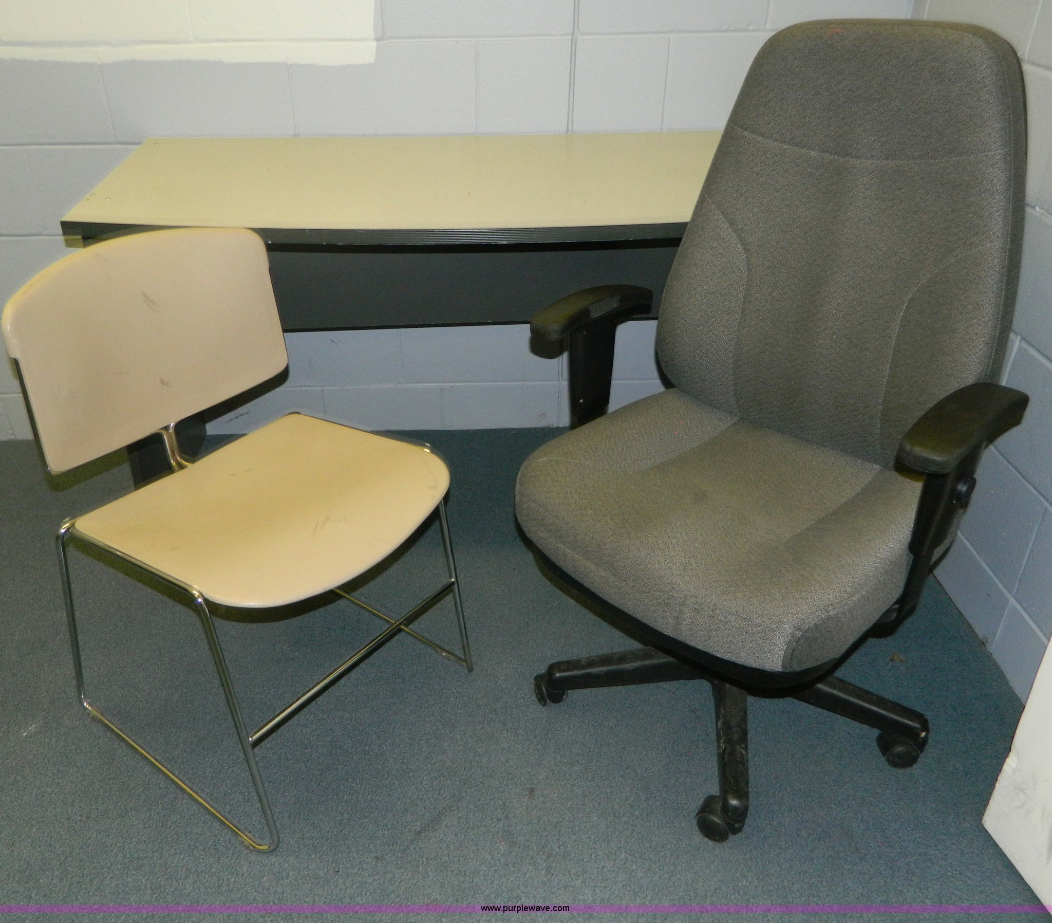 Purple Wave is selling a used Office Supplies and Equip. in Kansas. This item is a Assorted office supplies with the following: Four drawer later file cabinet, (2) desk returns, Blonde organizer cabinet, Computer laminate desk, Straight chair, Rolling adjustable chair, Brother fax, HP printer