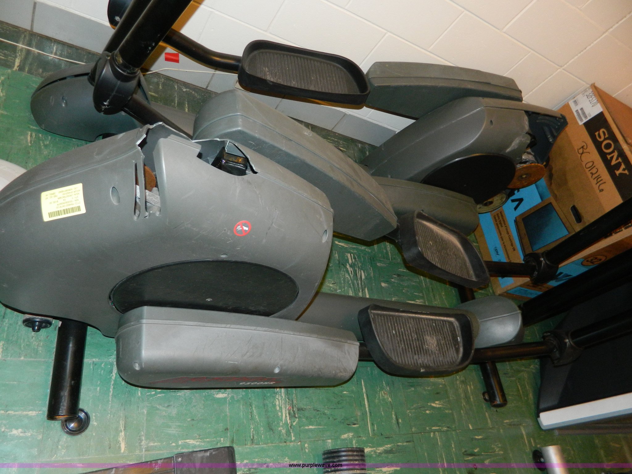 Purple Wave is selling a used Sporting Goods in Kansas. This item is a Assorted exercise equipment with the following: (2) Lite Fitness 9500 stepper, Lite Fitness 8500 treadmill, Stairmaster 4000PT, (2) Lemond fitness trailer bikes, Unknown operating conditions