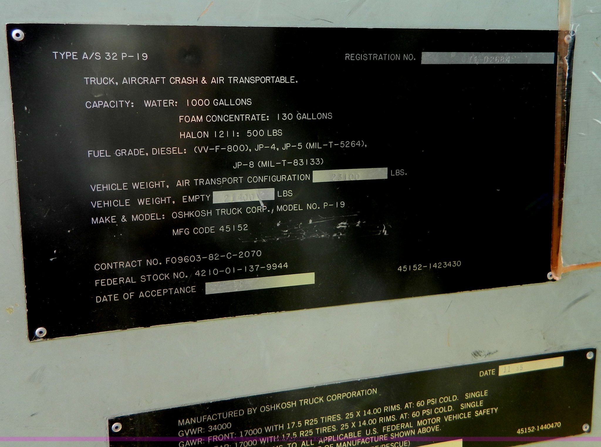 1985 Oshkosh ARFF firetruck | SOLD! November 5 Government Auction