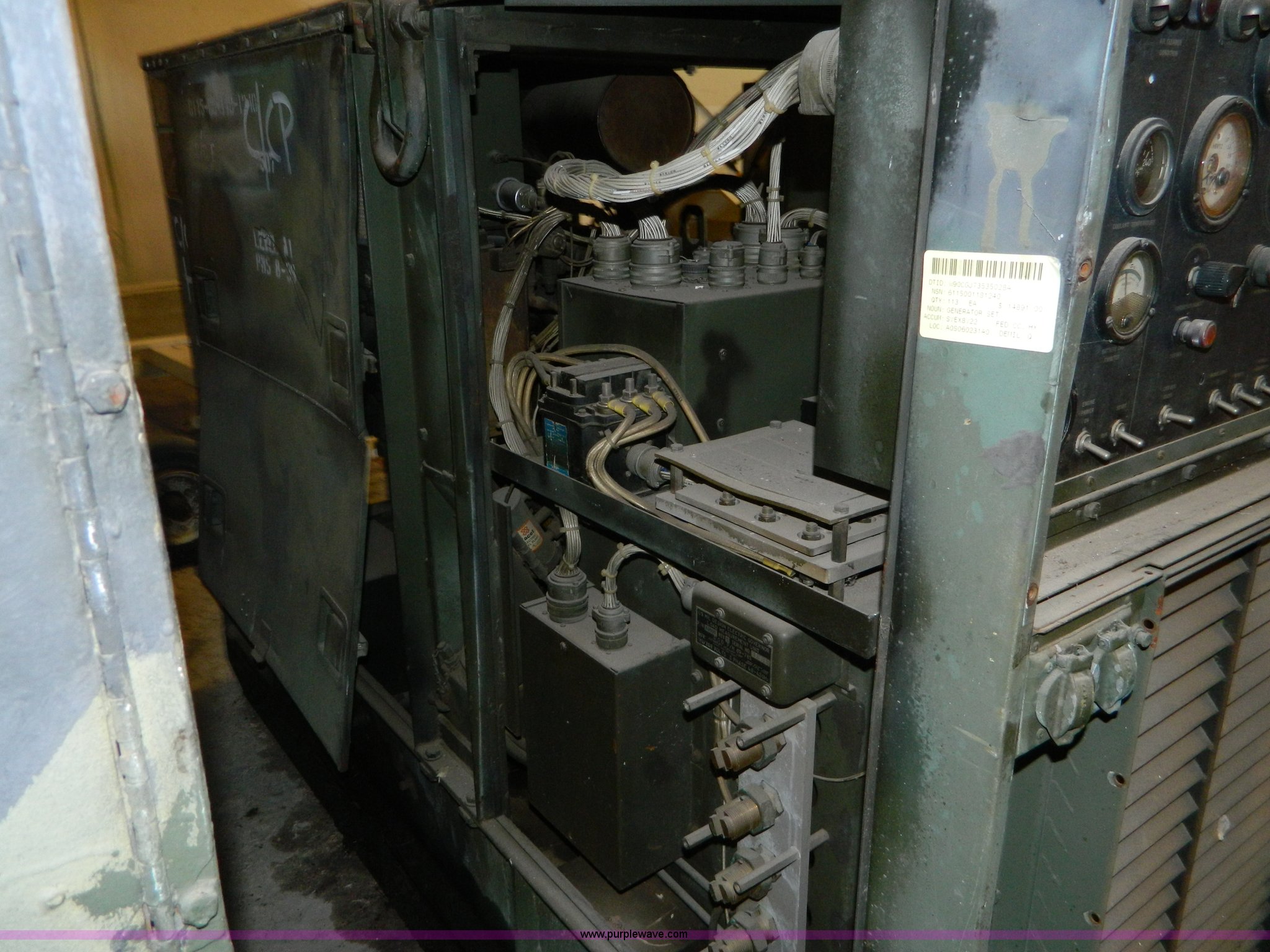 Purple Wave is selling a used Generator Set in Kansas. This item is a U.S. Army Surplus portable generator with the following: 1,618 hours on meter, White diesel engine, 45 kW, Unknown operating condition
