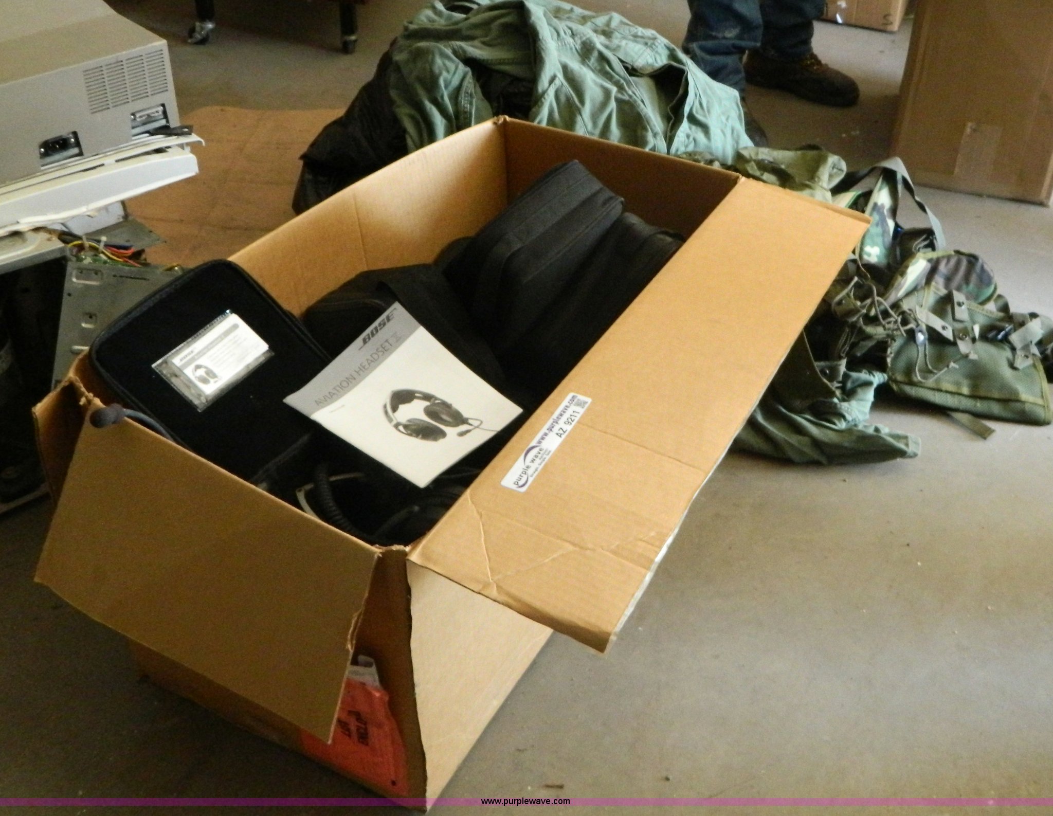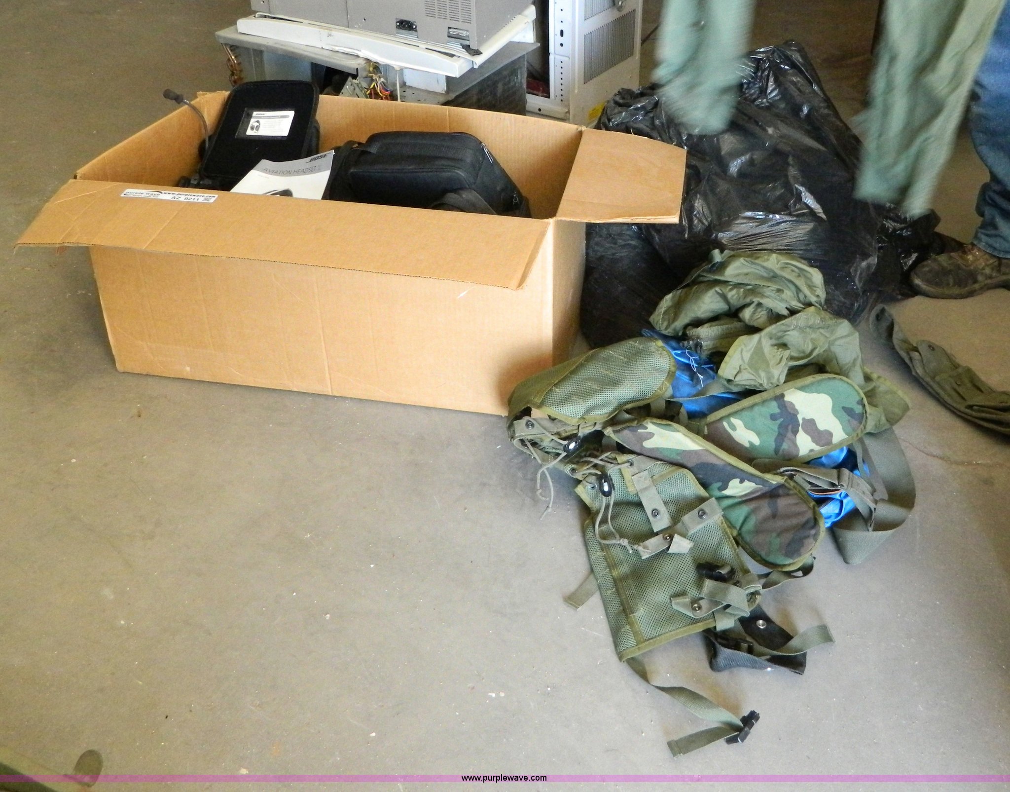 Purple Wave is selling a used Tools in Kansas. This item is a Base aviation headsets with the following: U.S. Army surplus field supply holders