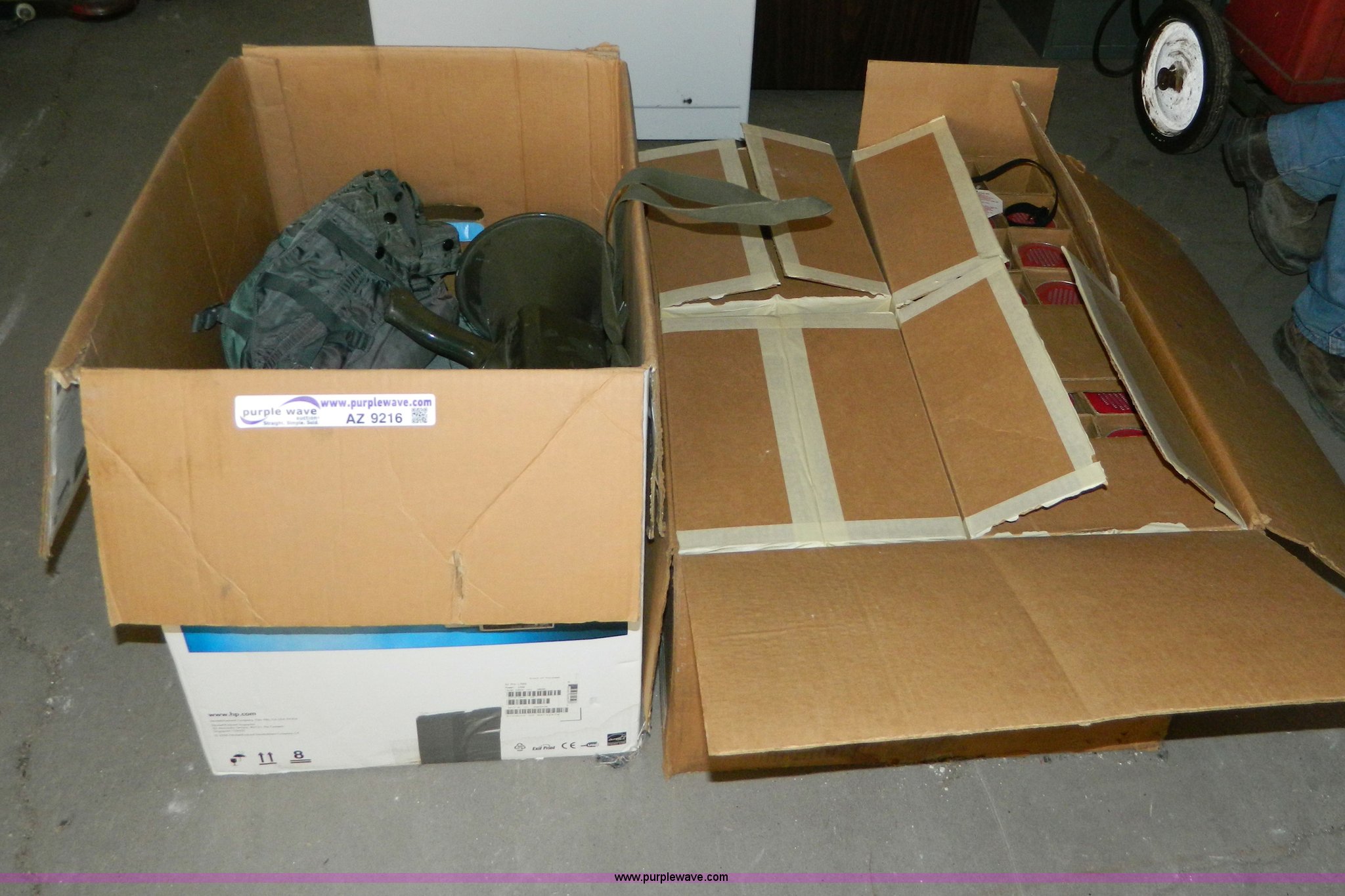 Purple Wave is selling a used Tools in Kansas. This item is a U.S. Army Surplus mega phone with the following: Gloves, Mittens, Air respirator and filters