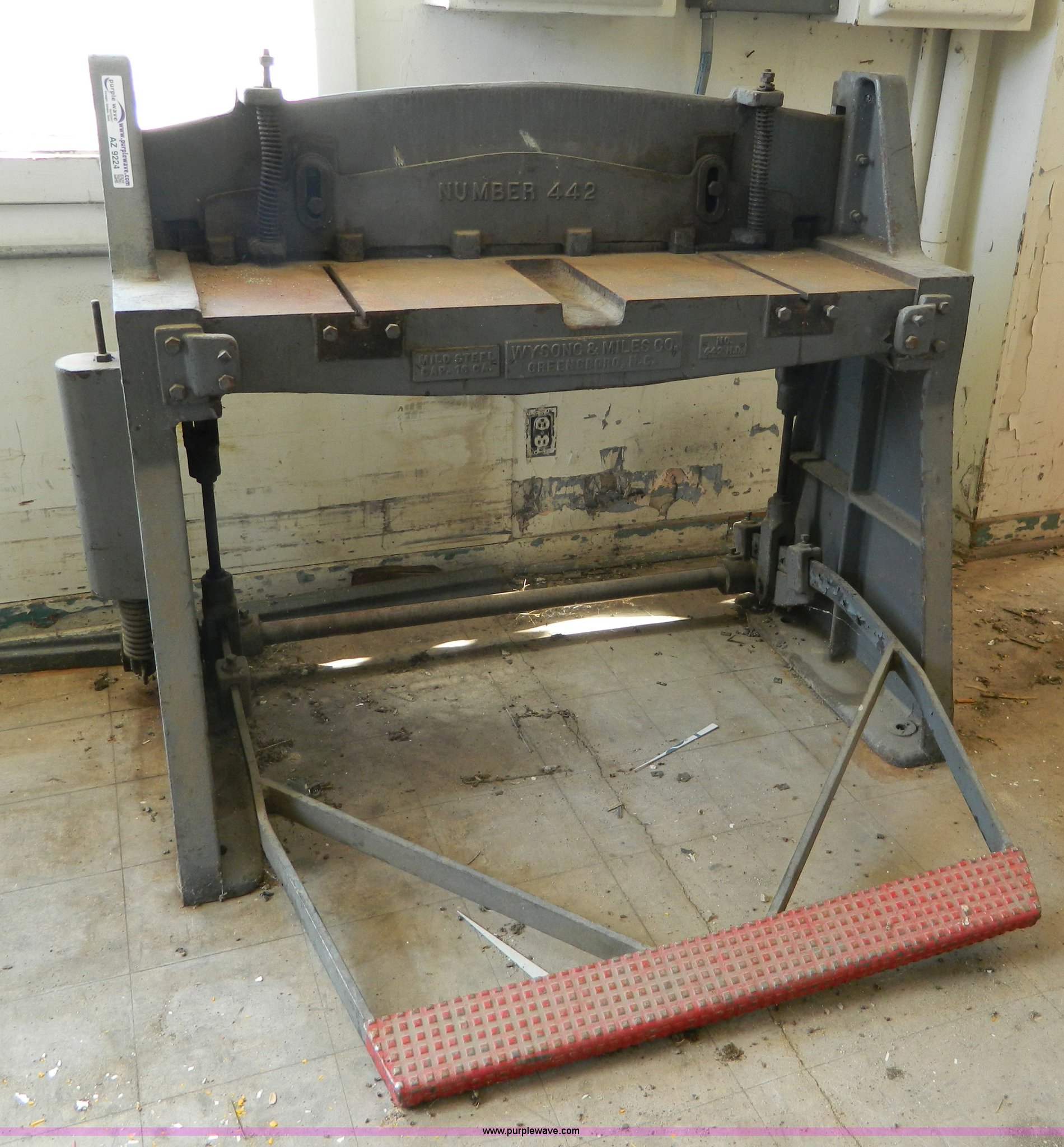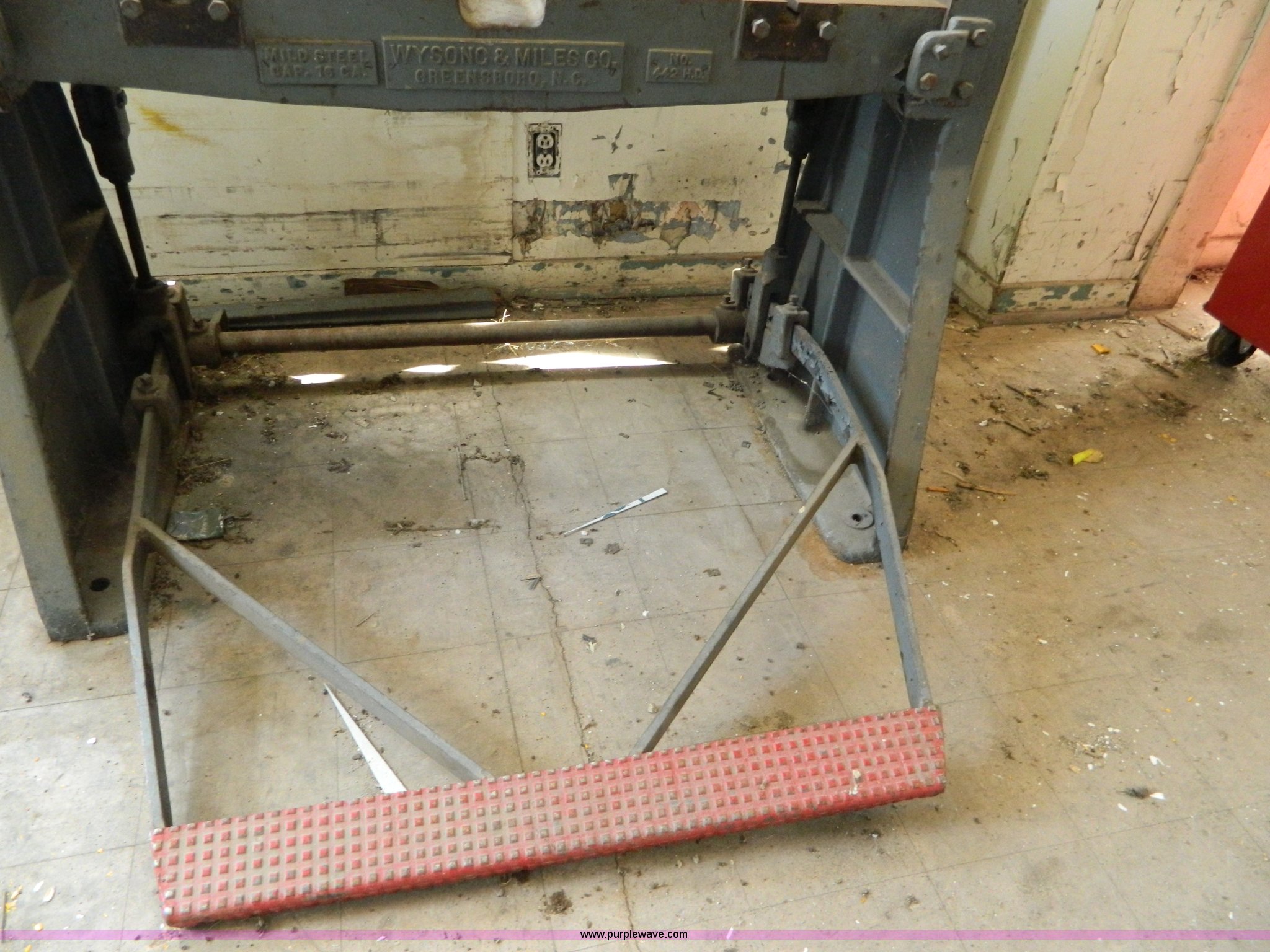 Purple Wave is selling a used Tools in Kansas. This item is a Wyson C & Miles Co 442 metal shear with the following: Foot control bent, Unknown operating condition