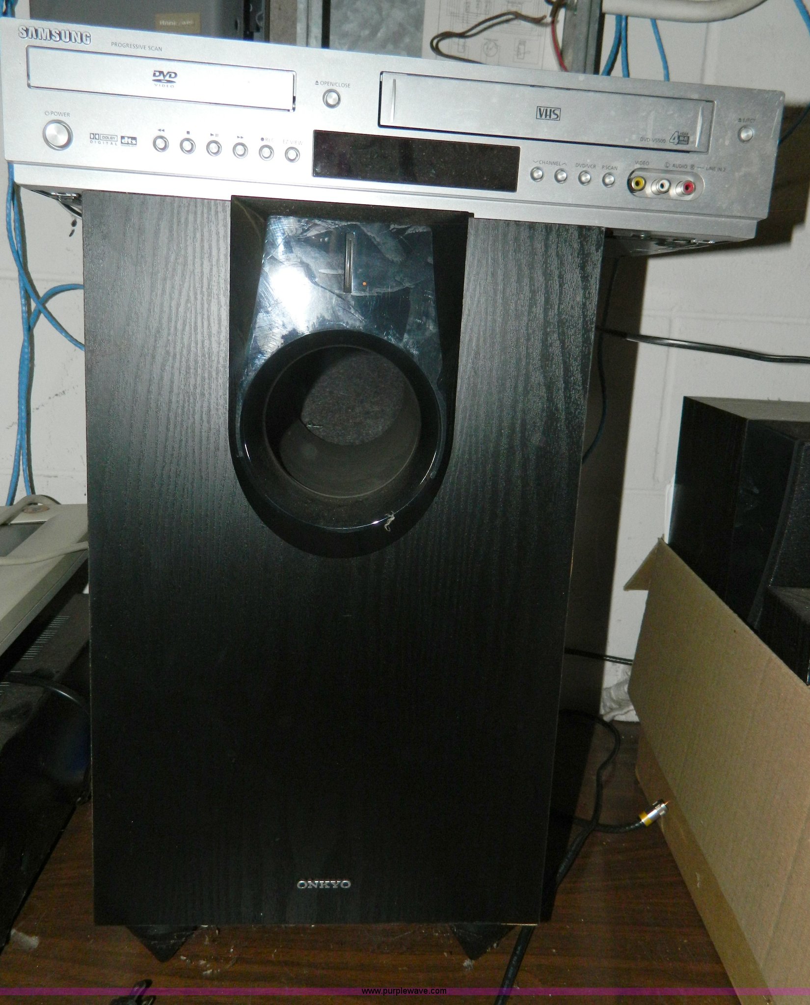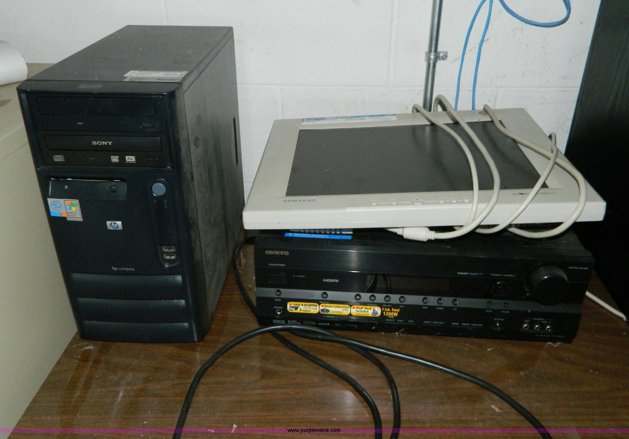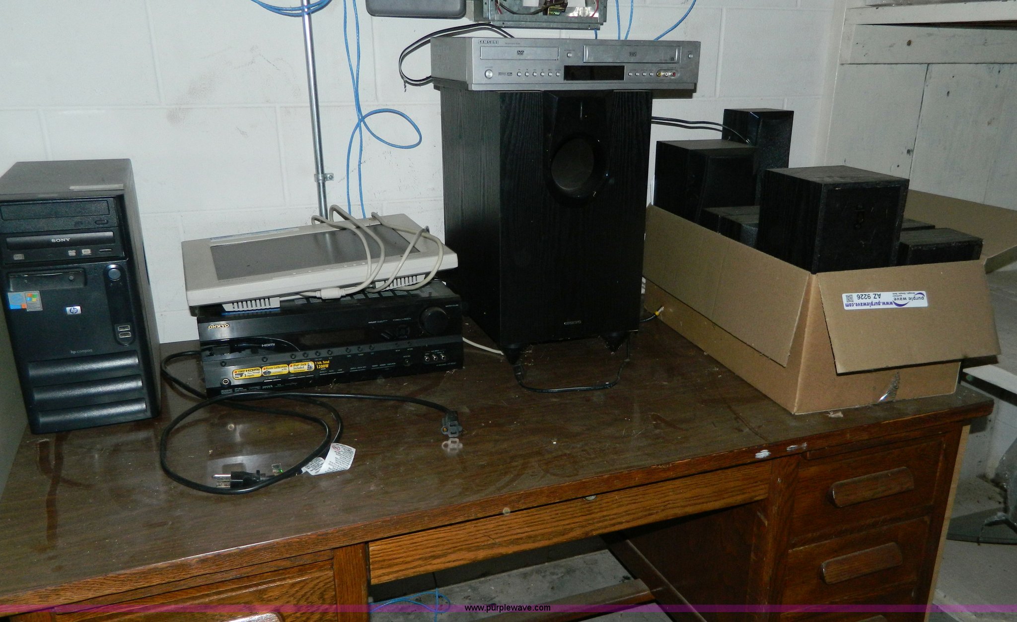 Purple Wave is selling a used Electronics in Kansas. This item is a Assorted items with the following: Onkyo DVD/VHS tuner, Sony HP CPU, Samsung DVD/VHS player, Samsung monitor, Assorted speakers, Desk not included