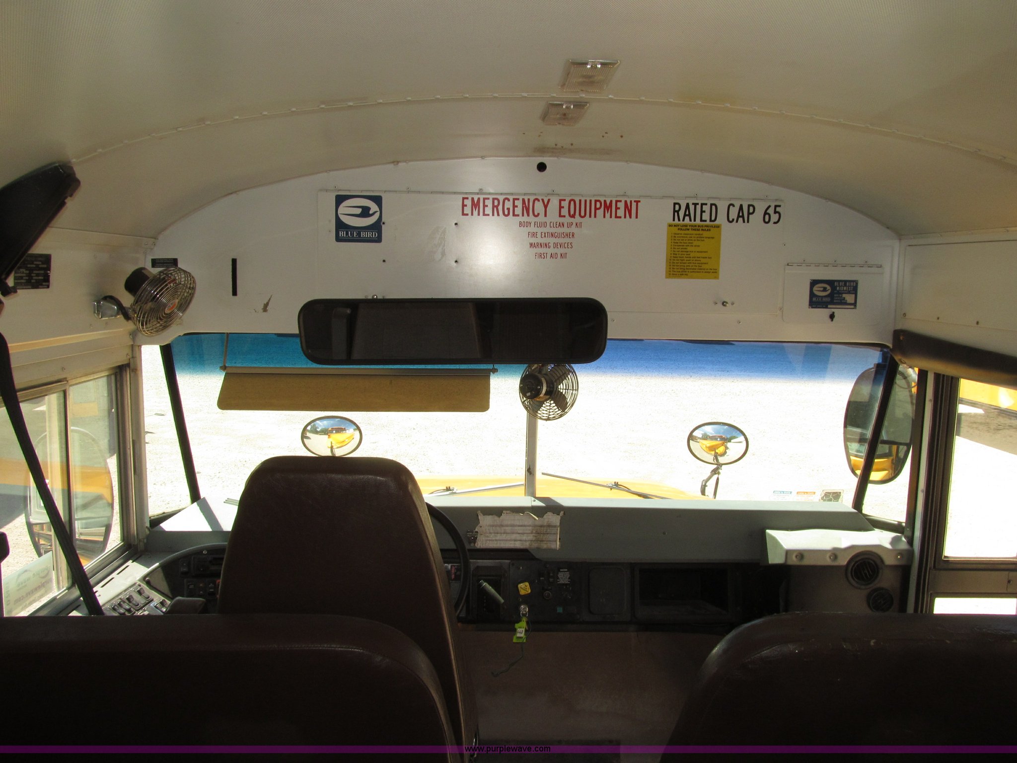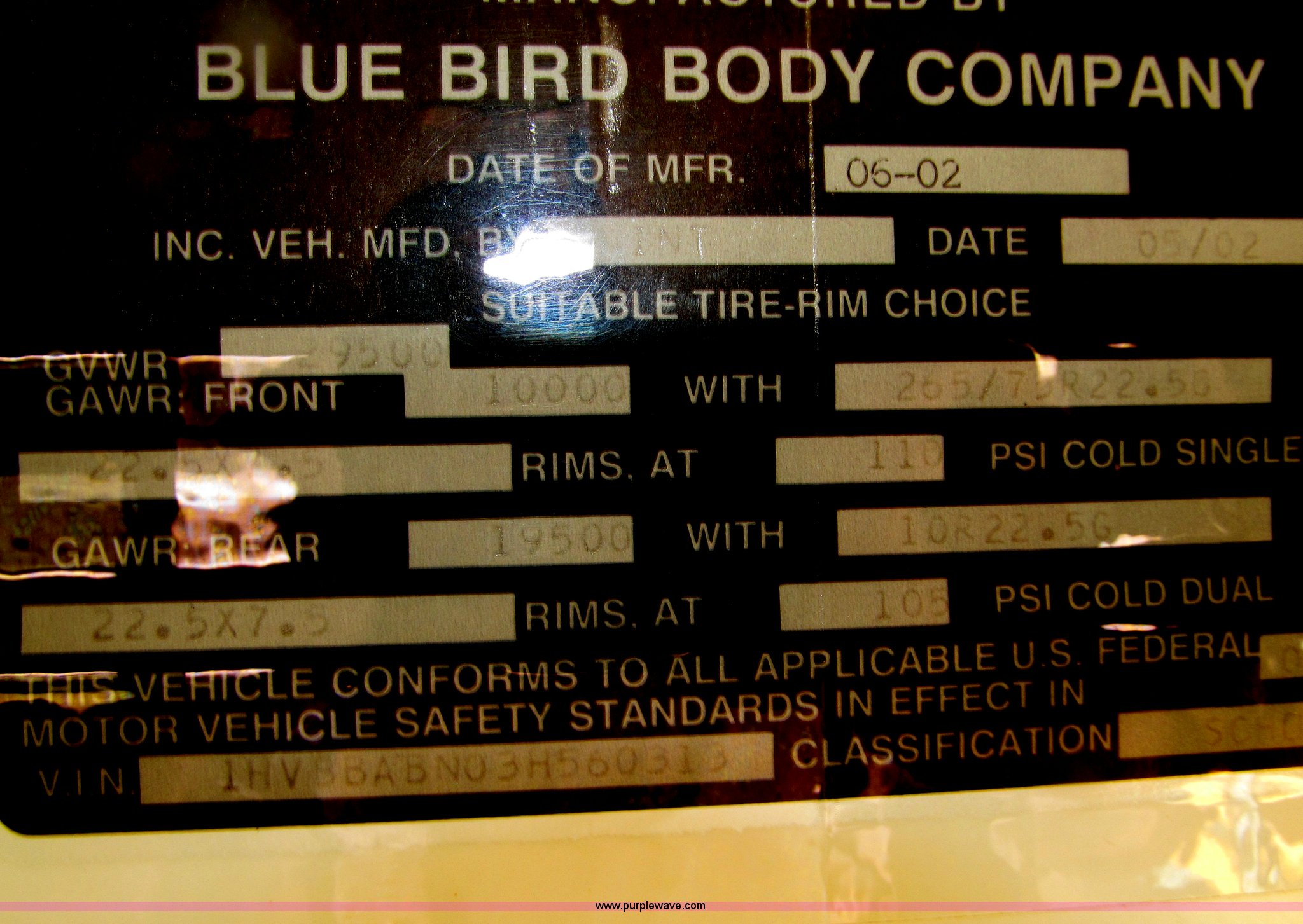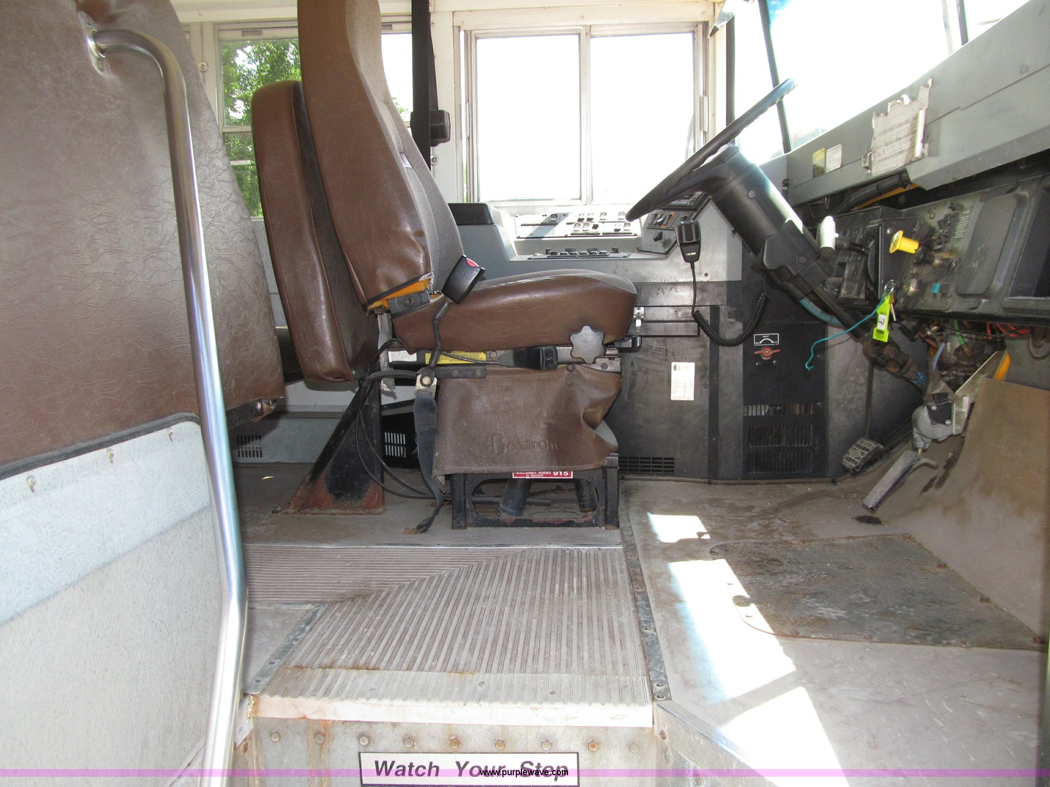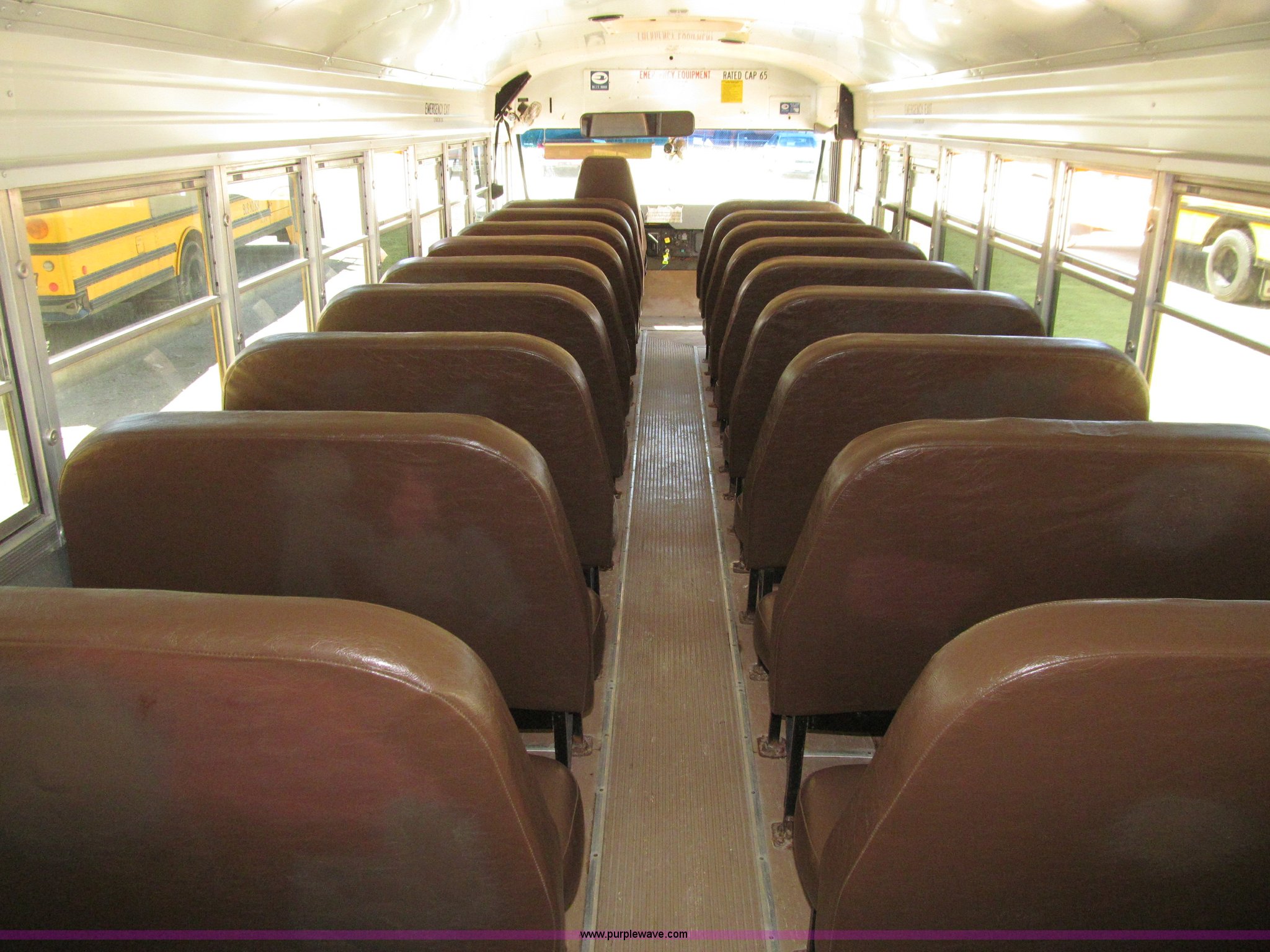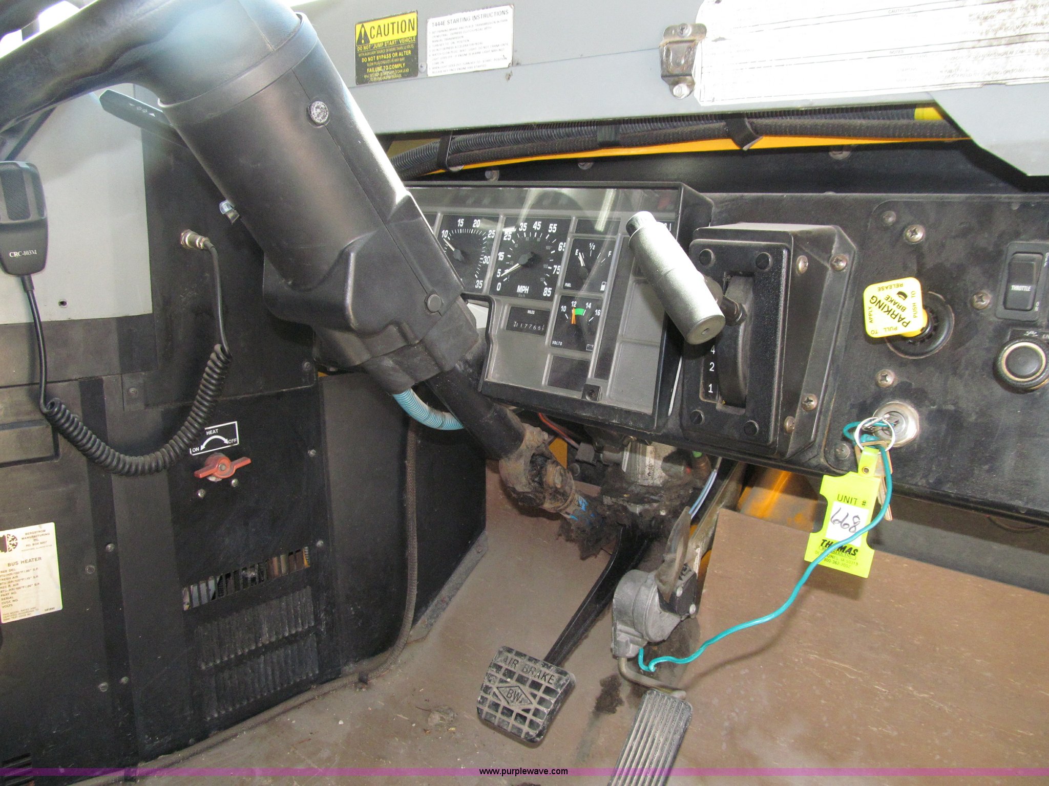 Purple Wave is selling a used Bus in Iowa. This item is a 2003 International 3800 school bus with the following: 117,766 actual miles, 8,923 hours on meter, International T444E 7.3L V8 turbo diesel engine, Automatic transmission, Heat, Tilt, Cruise, AM/FM/cassette, Manual windows, Vinyl interior, Bostrom air suspension driver's seat, 65 passenger capacity, Bluebird body, Body No. M113347, (7) emergency egress, Air suspension, Air brakes, 254" wheelbase, 10R22.5 tires, GVWR 29,500 lbs, FAWR 10,000 lbs, RAWR 19,500 lbs, Unit# 668