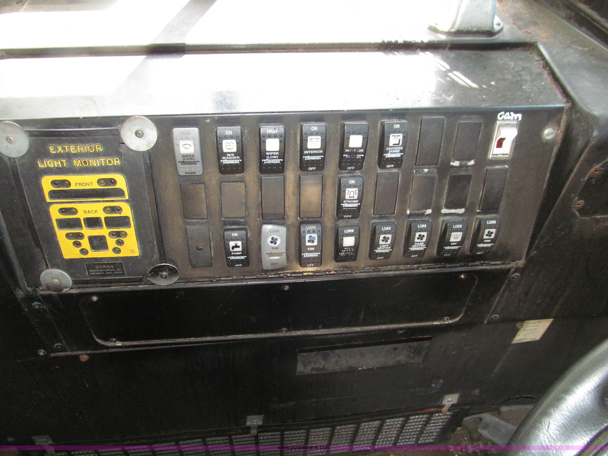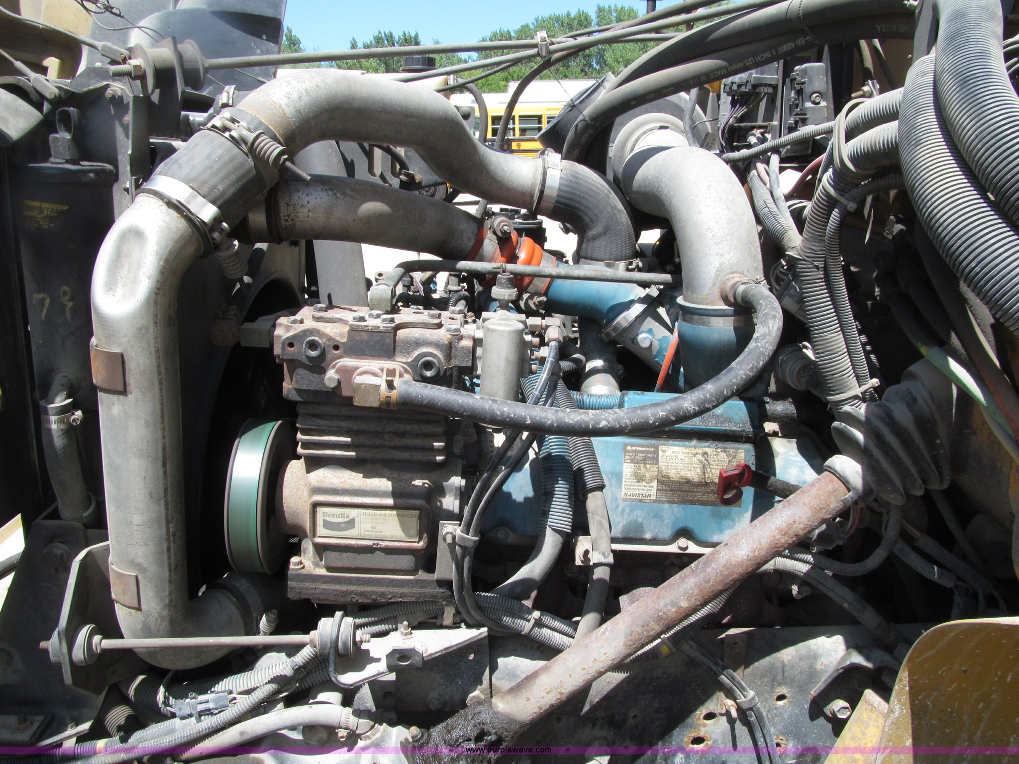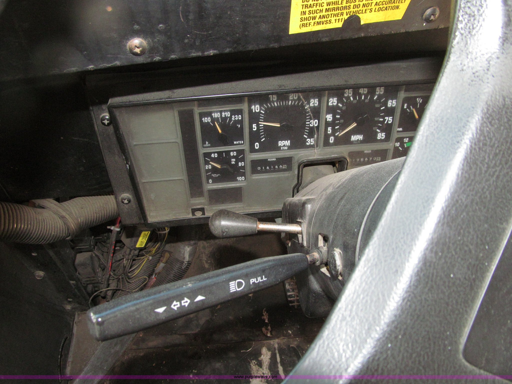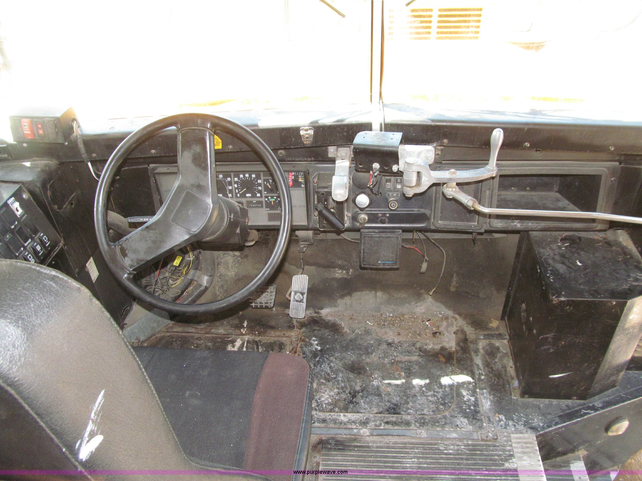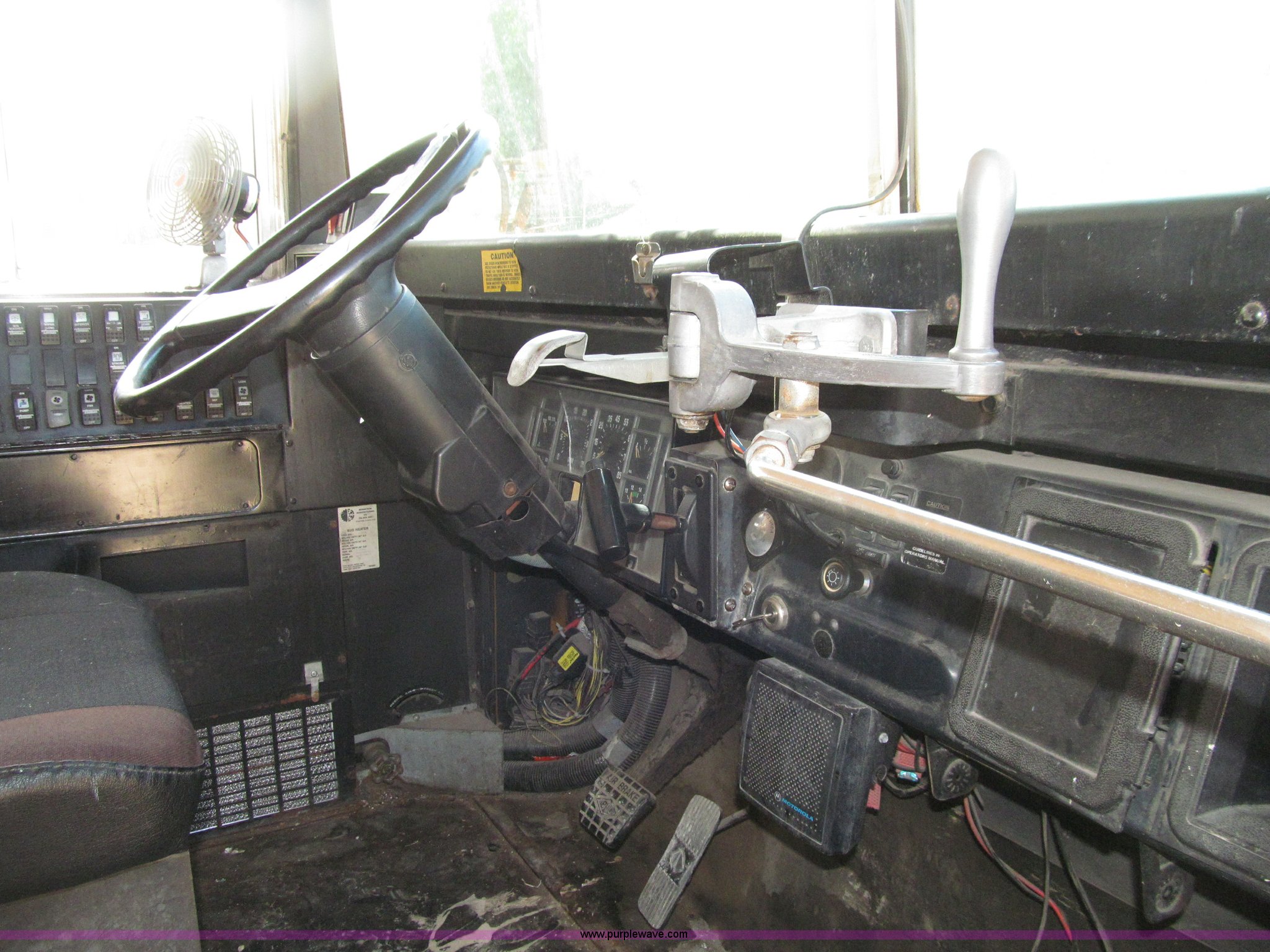 Purple Wave is selling a used Bus in Iowa. This item is a 1998 International 3800 Thomas school bus with the following: 195,670 acutal miles, 14,145 hours on meter, International T444 7.3L V8 diesel engine, 210 HP, Automatic transmission, Heat, Tilt, Cruise, Manual windows, Cush-N-Aire driver's seat, Vinyl interior, (7) emergency egress, 66 passenger capacity, Spring suspension, Air brakes, 10R22.5 tires, GVWR 27,500 lbs, FAWR 10,000 lbs, RAWR 17,500 lbs, Numerous paint stains on seats, Unit# 624