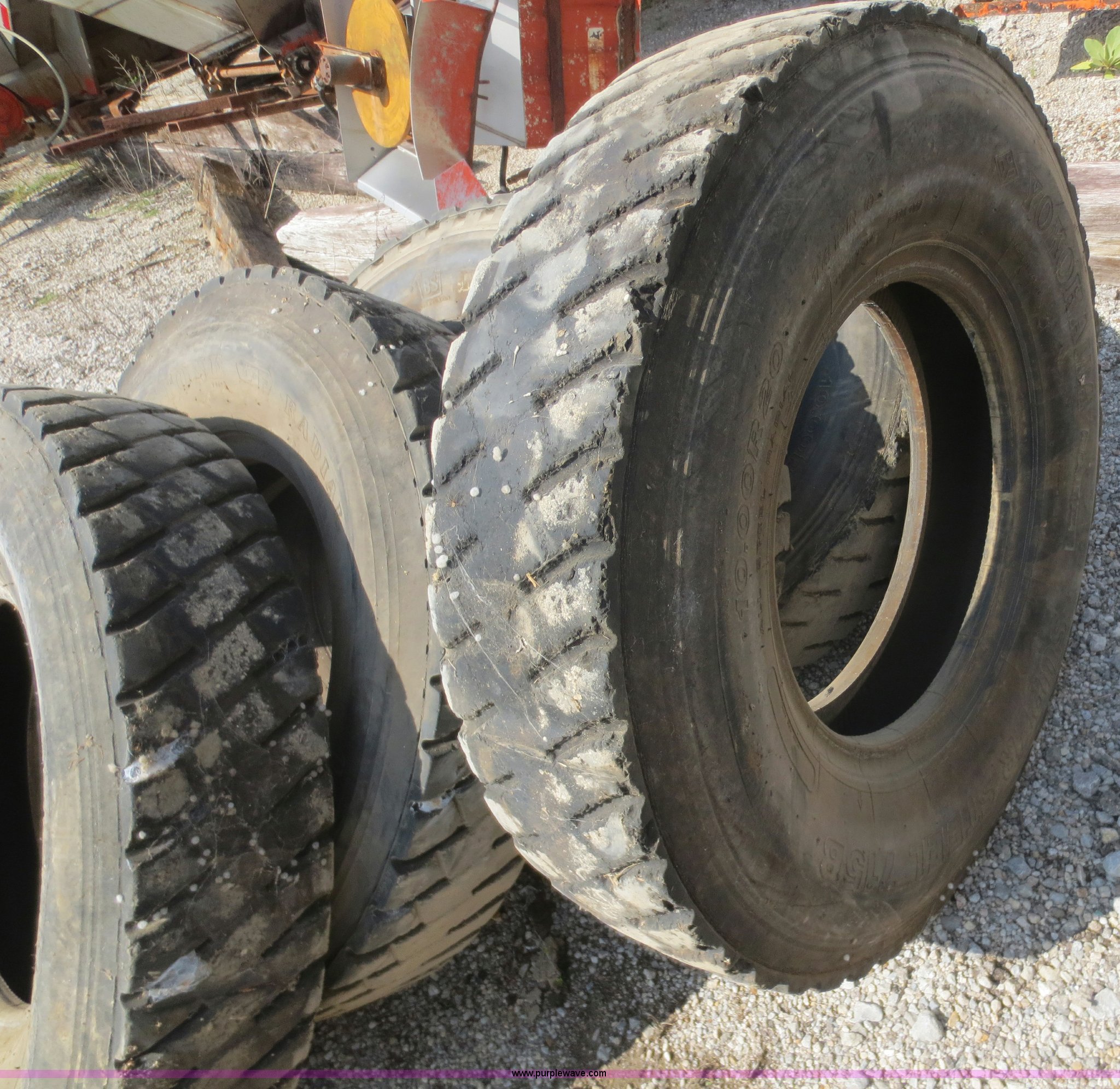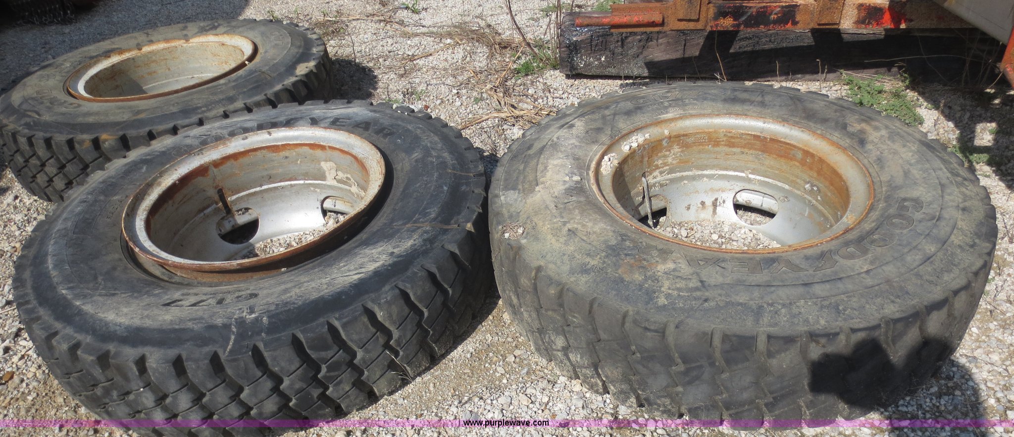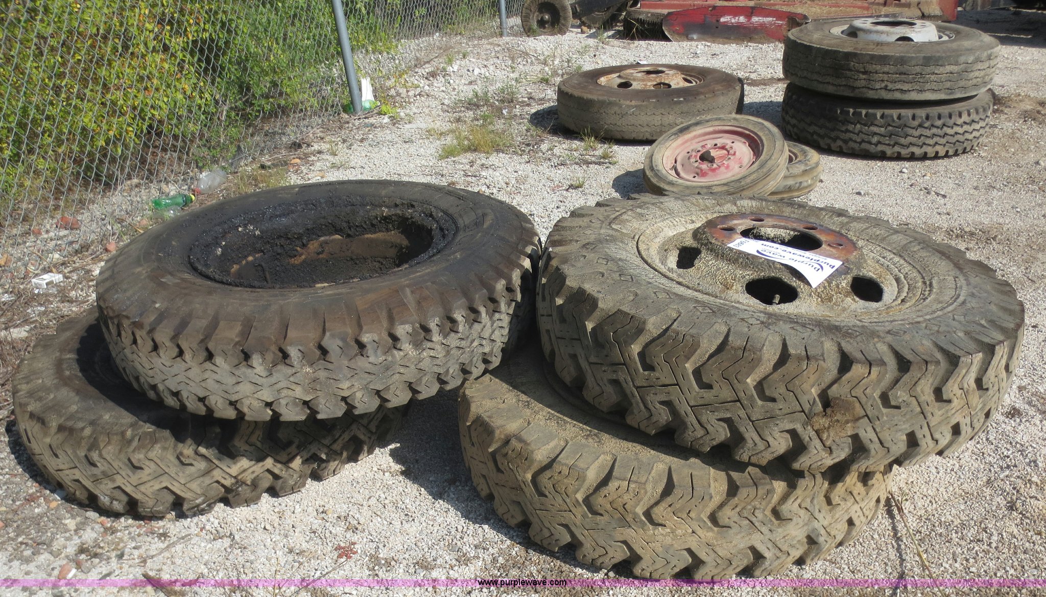 Purple Wave is selling a used Industrial Tires or Tracks in Kansas. This item is a Assorted tires and wheels with the following: (4) 8.25-20 tires and wheels, (3) 9.00-20 tires and wheels, (2) 4.00-15 tires, Removed from International tractor, (3) 10-20 tires and wheels, (6) 10-20 tires