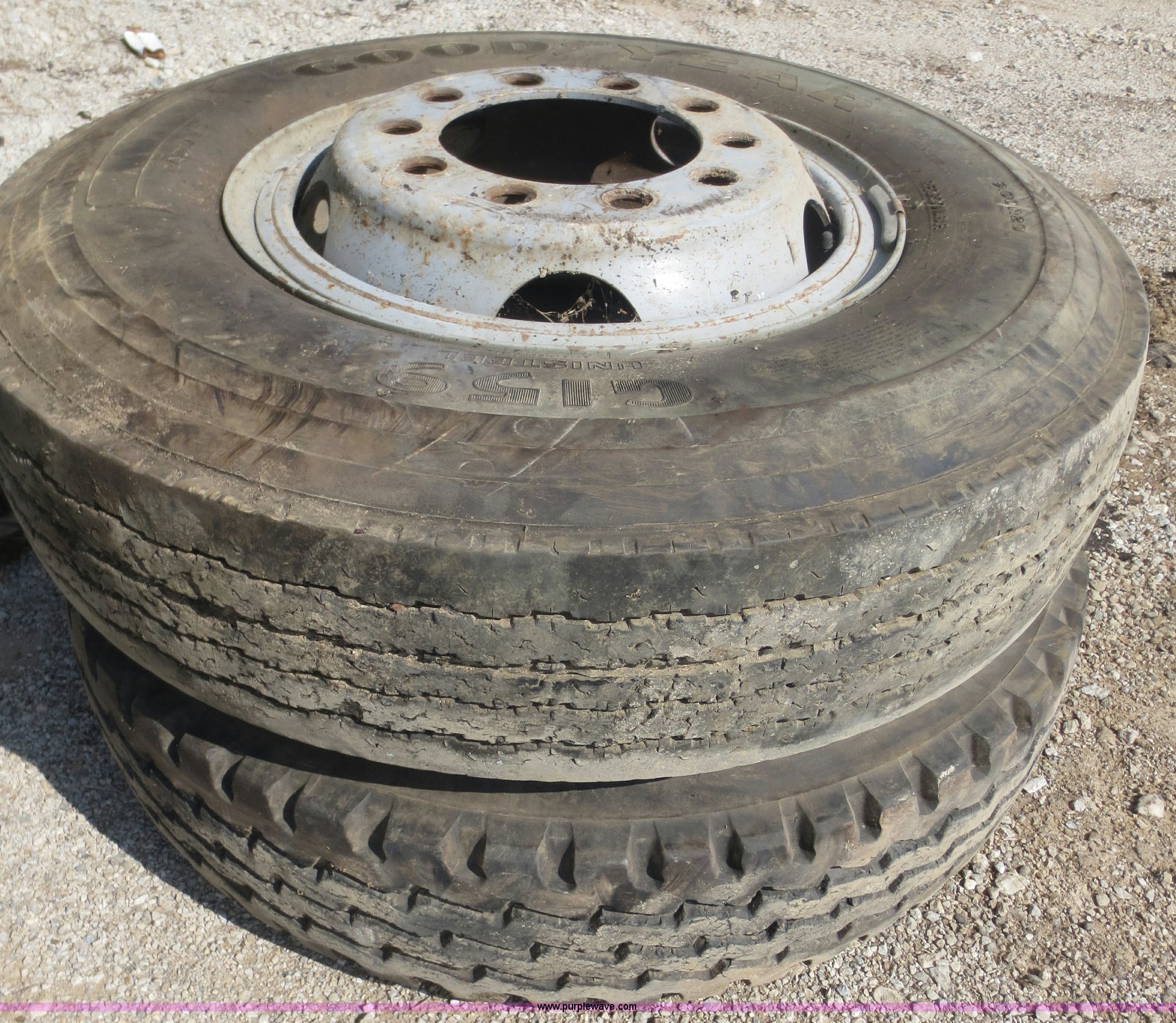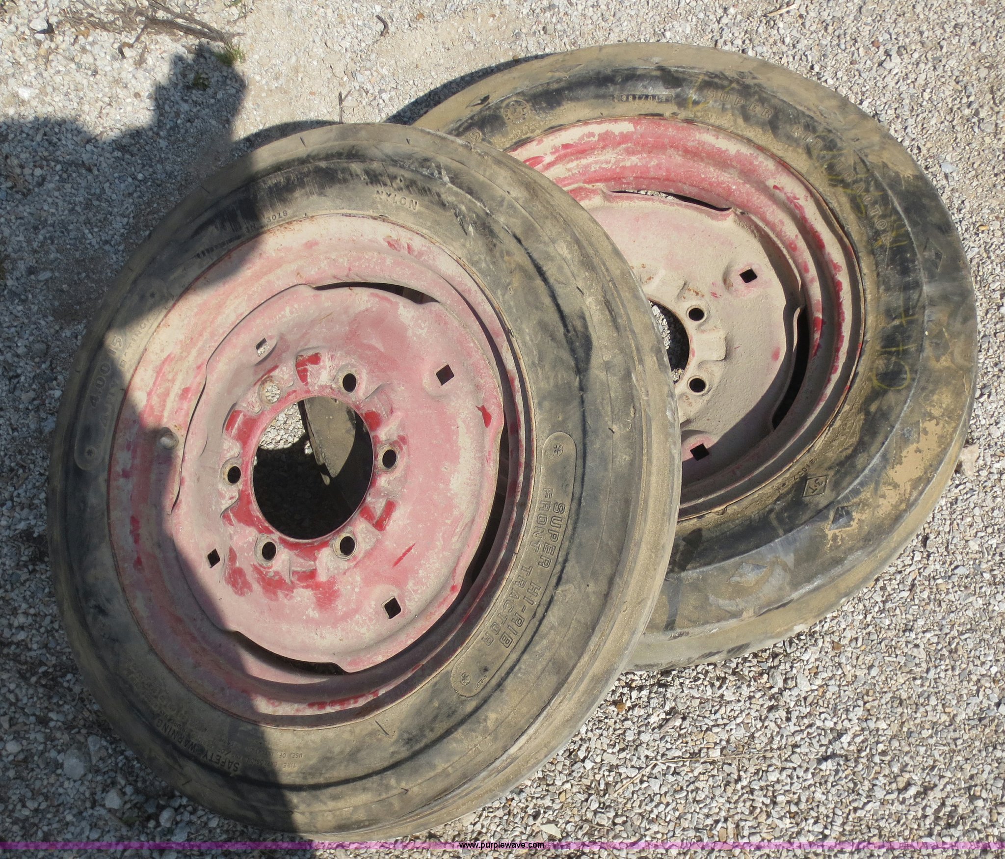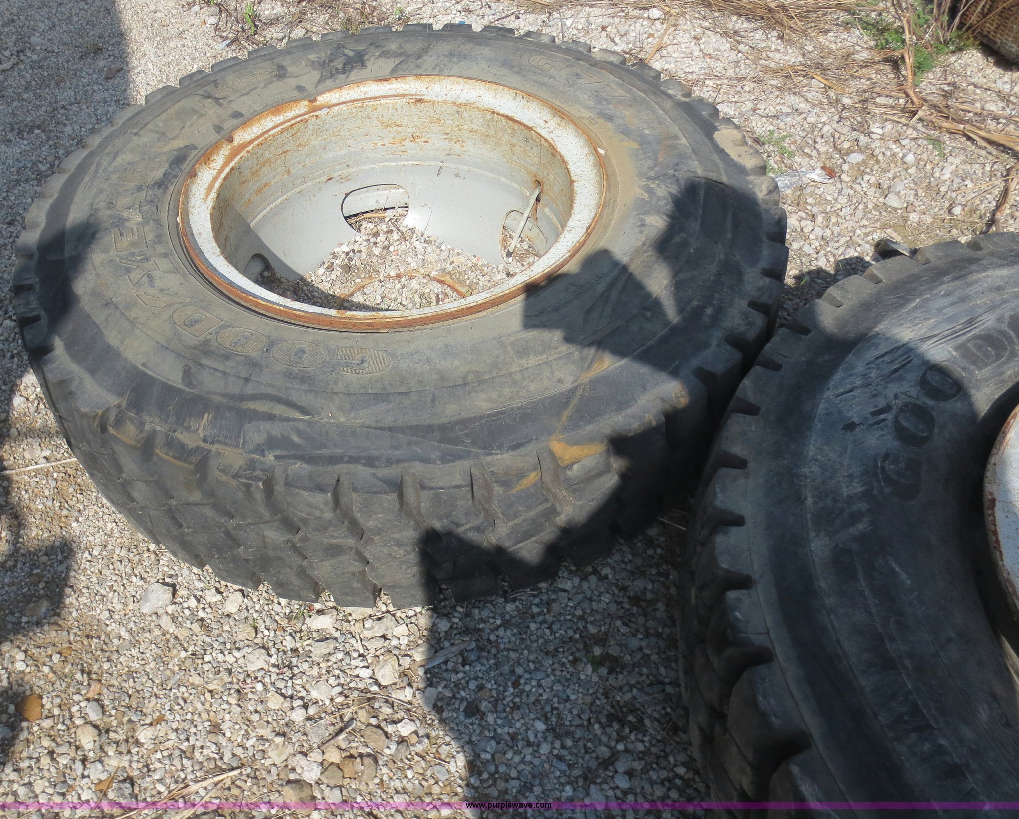 Purple Wave is selling a used Industrial Tires or Tracks in Kansas. This item is a Assorted tires and wheels with the following: (4) 8.25-20 tires and wheels, (3) 9.00-20 tires and wheels, (2) 4.00-15 tires, Removed from International tractor, (3) 10-20 tires and wheels, (6) 10-20 tires