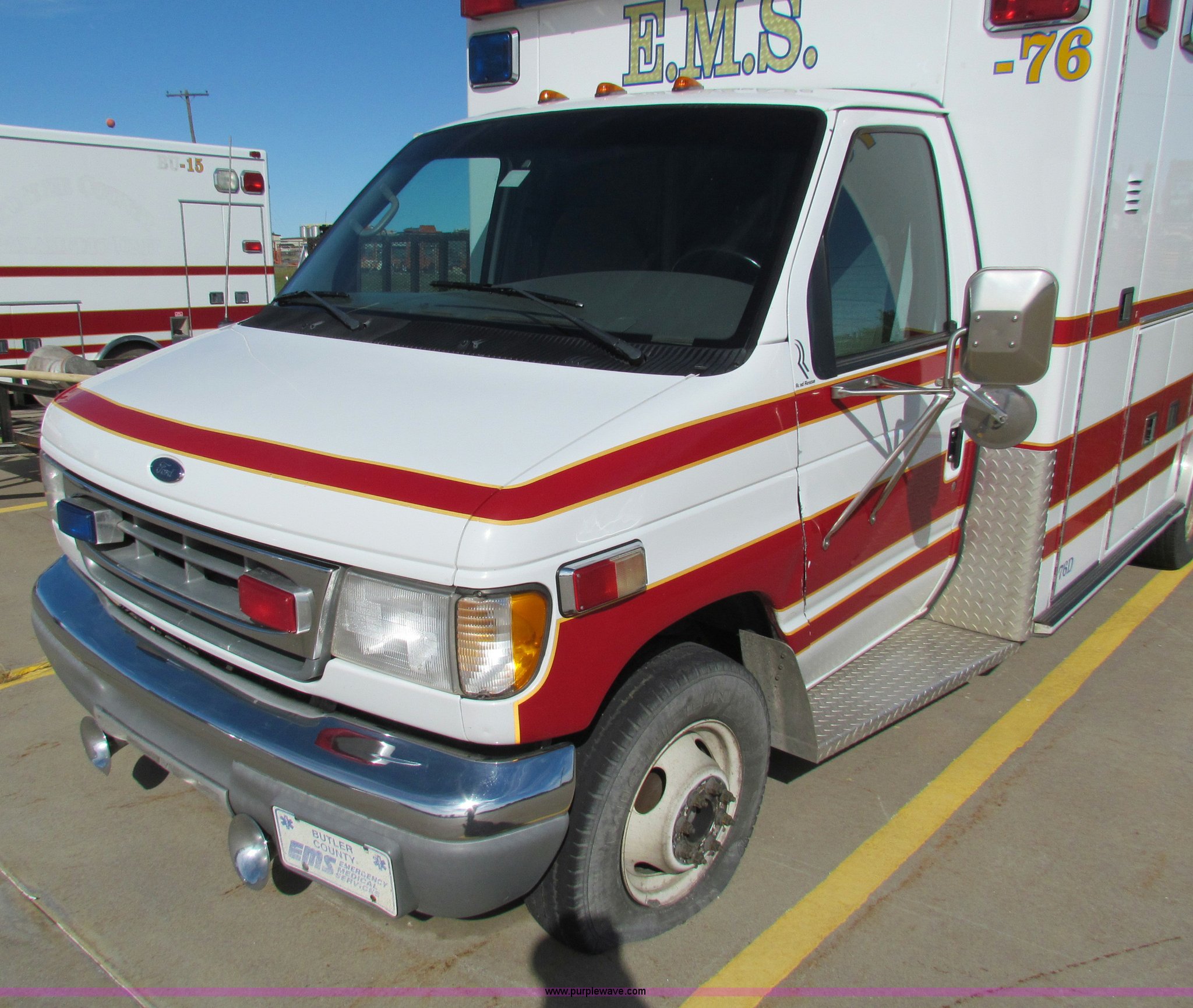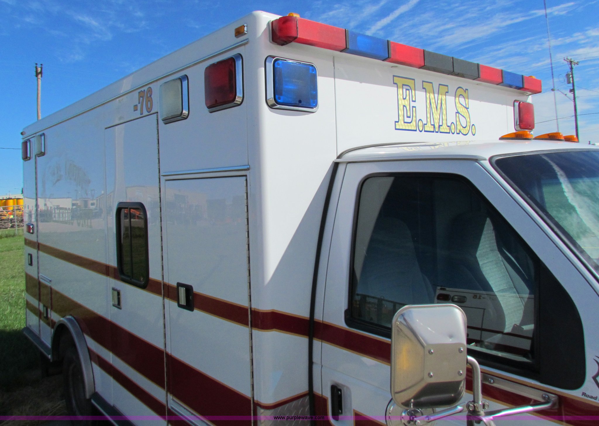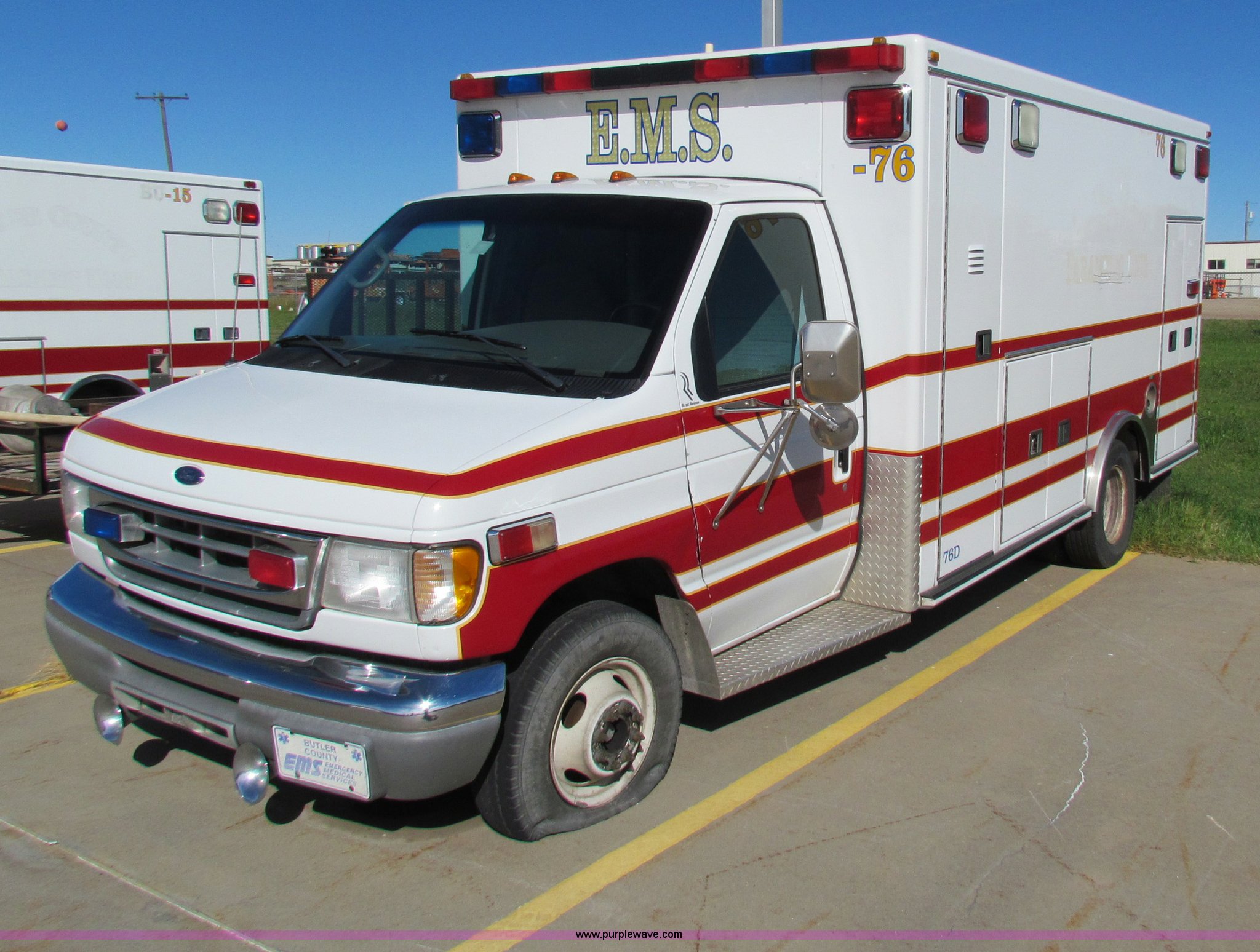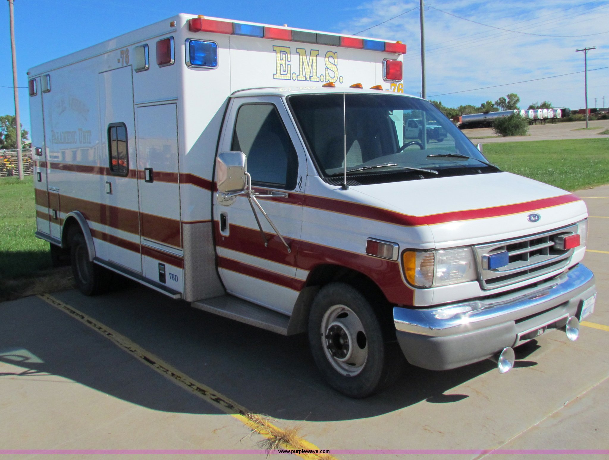 Purple Wave is selling a used Fire Truck or Emergency Vehicle in Kansas. This item is a 2001 Ford ambulance with the following: 232,963 miles on odometer, 7.3L V8 OHV 16V turbo diesel engine, Automatic transmission, AC and heat, Rear climate control, AM/FM, Tilt, Cruise, Power windows and locks, 225/75R16 tires, Transmission slips